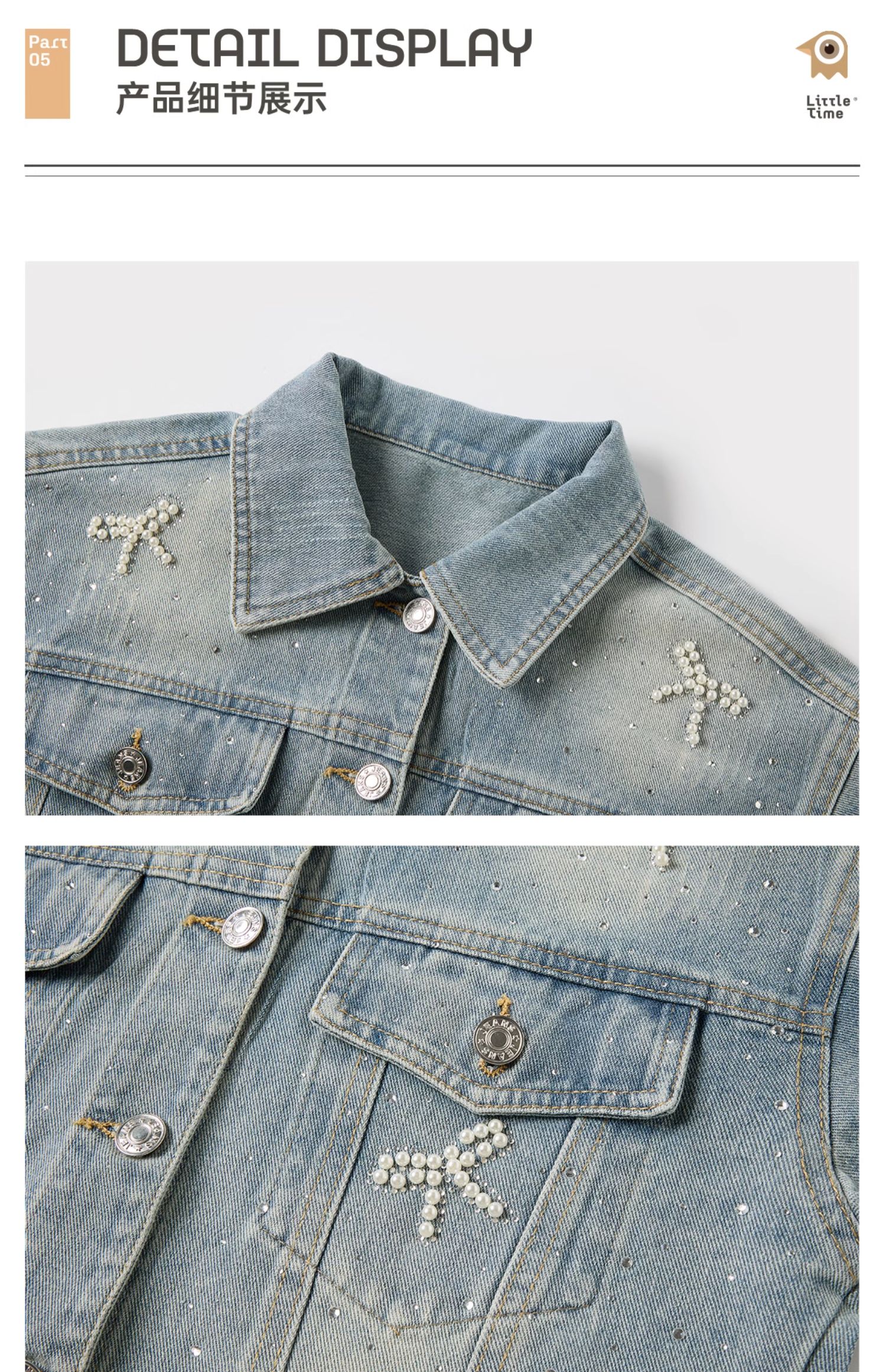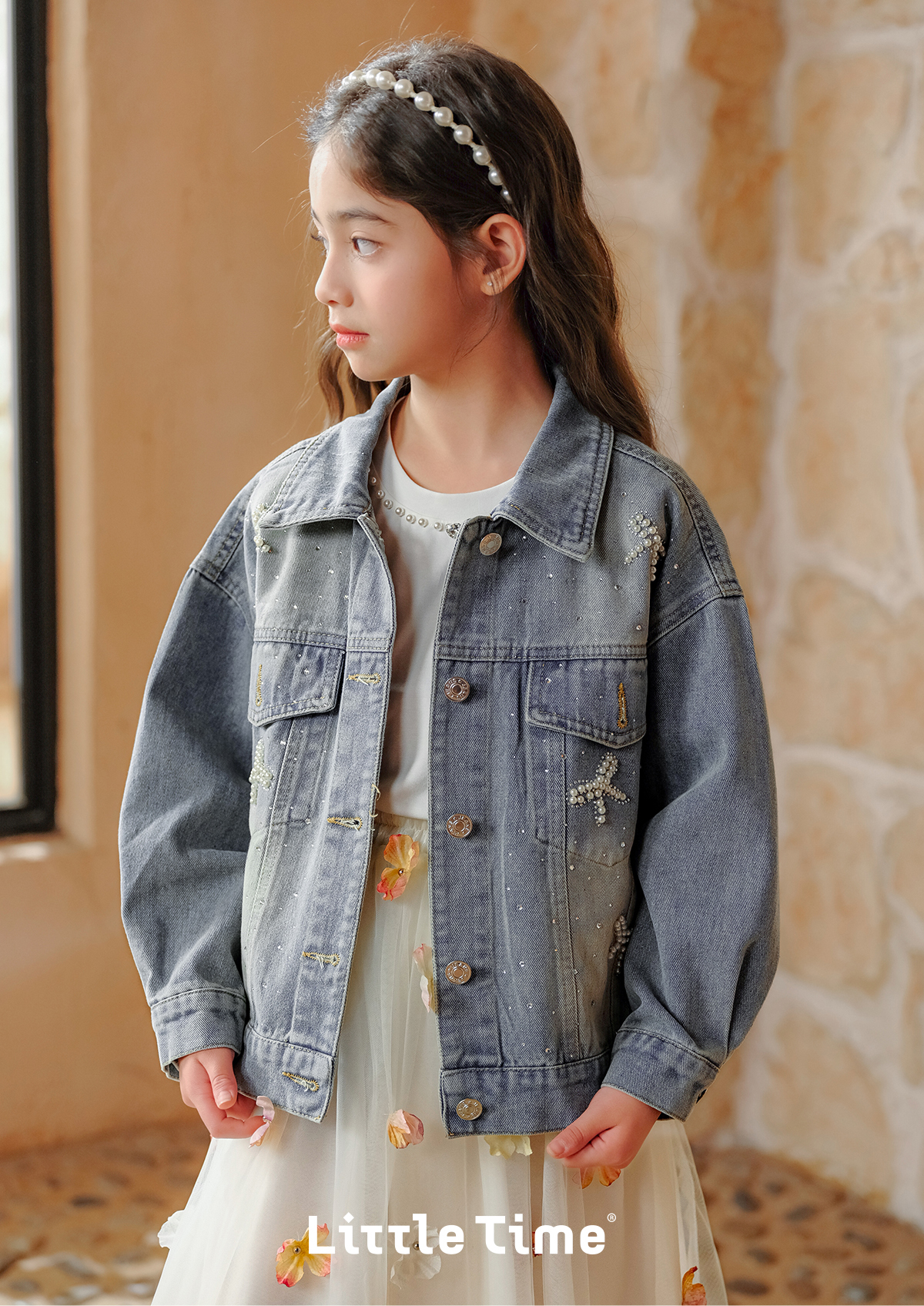 littletime女童牛仔外套2025春季新款纯棉洋气中大童开衫上衣女孩