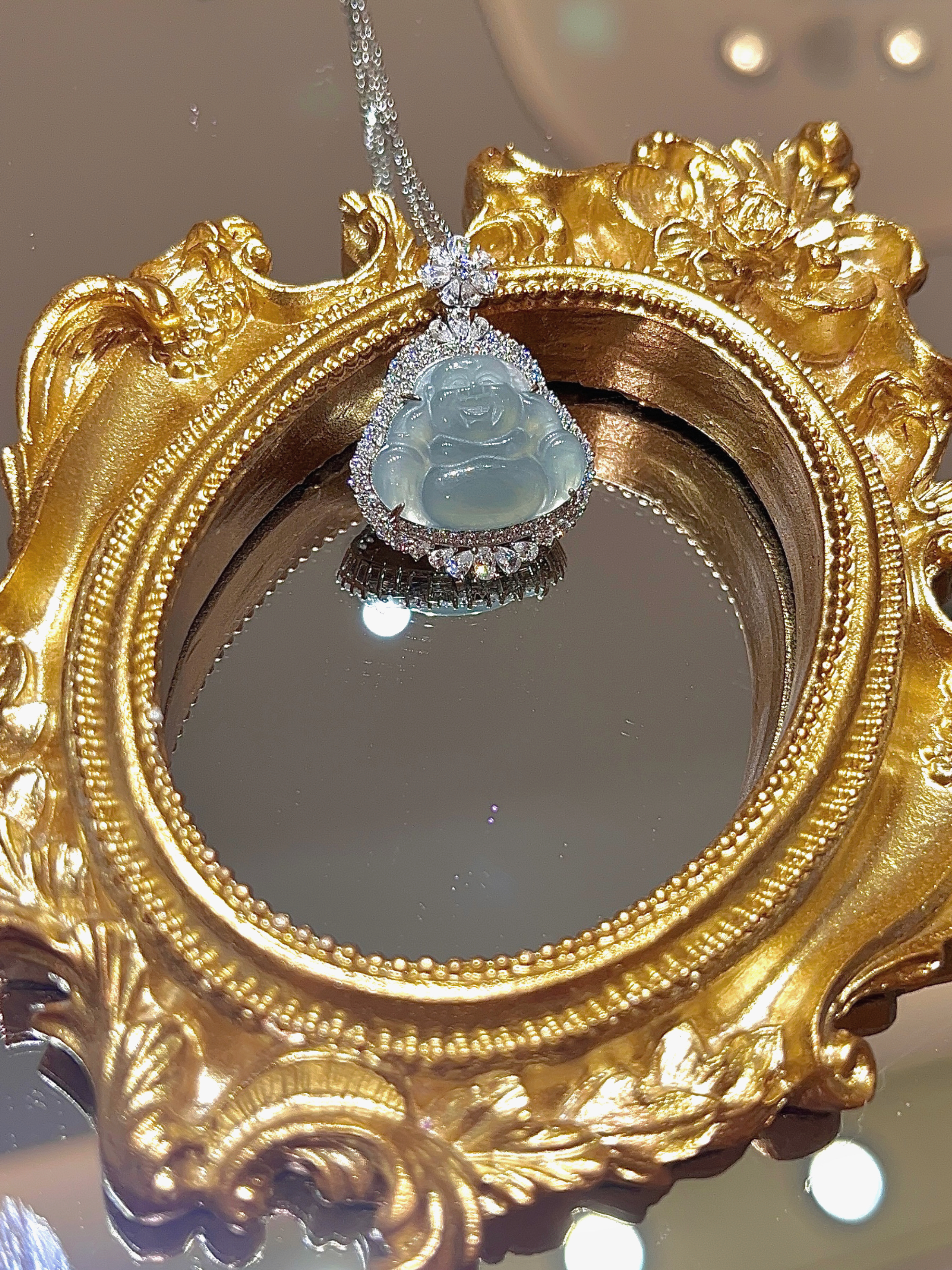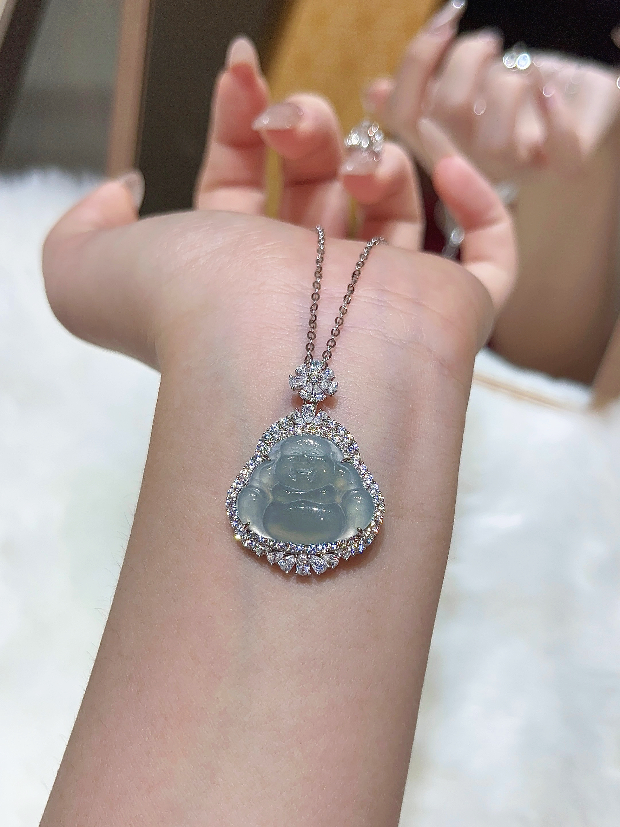 【新品上线】冰透蓝水翡翠佛公吊坠项链大肚佛公送女友生日礼物,支持门店自取/包邮到家。