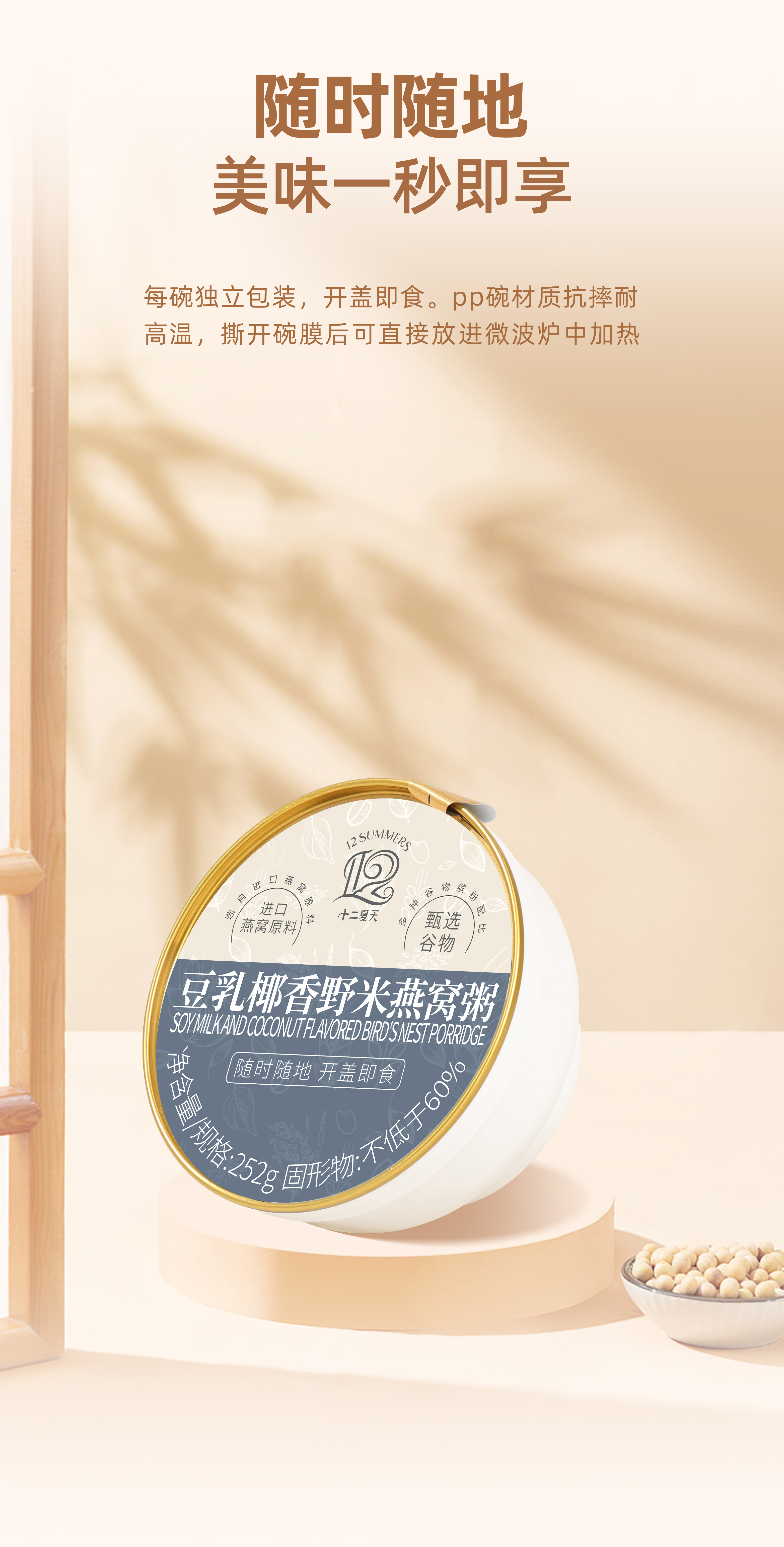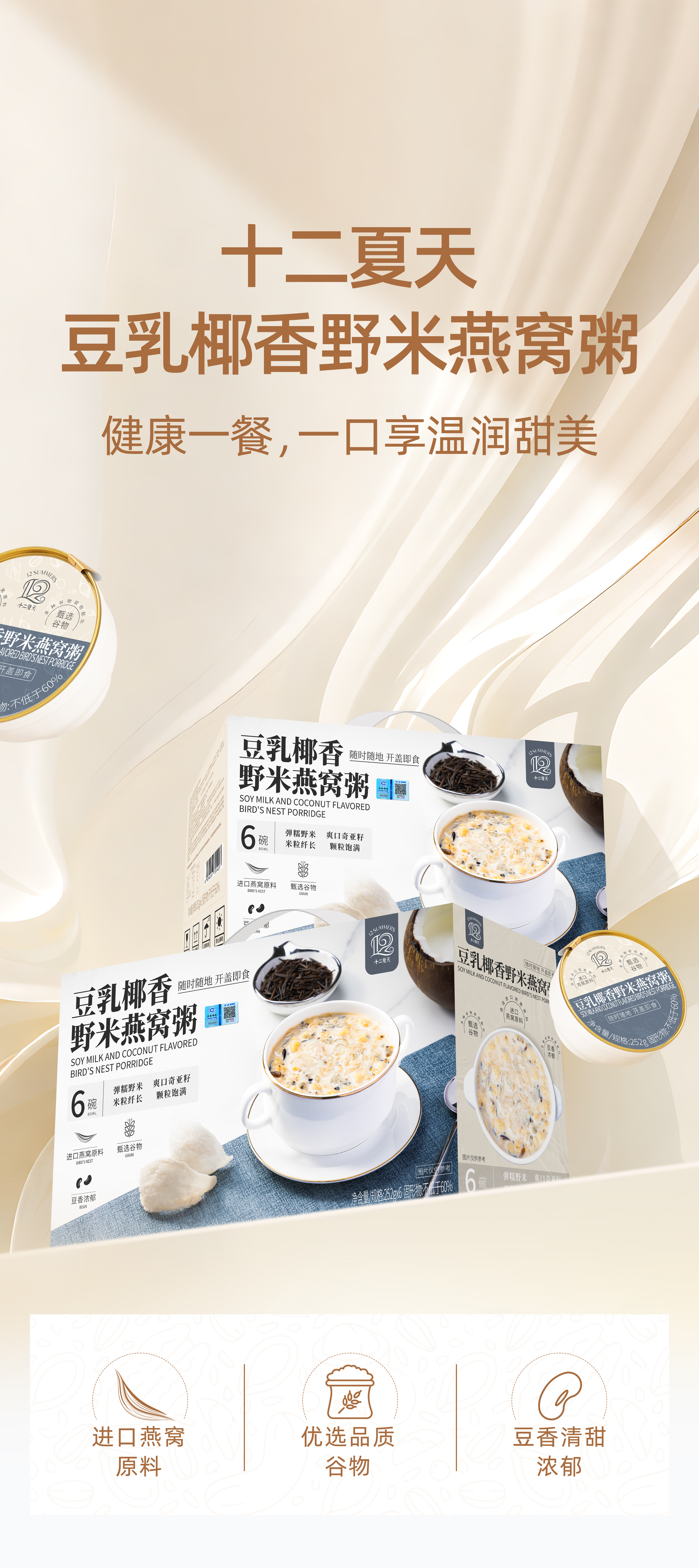 【发出后不支持拦截】十二夏天 豆乳椰香燕窝粥 1512g