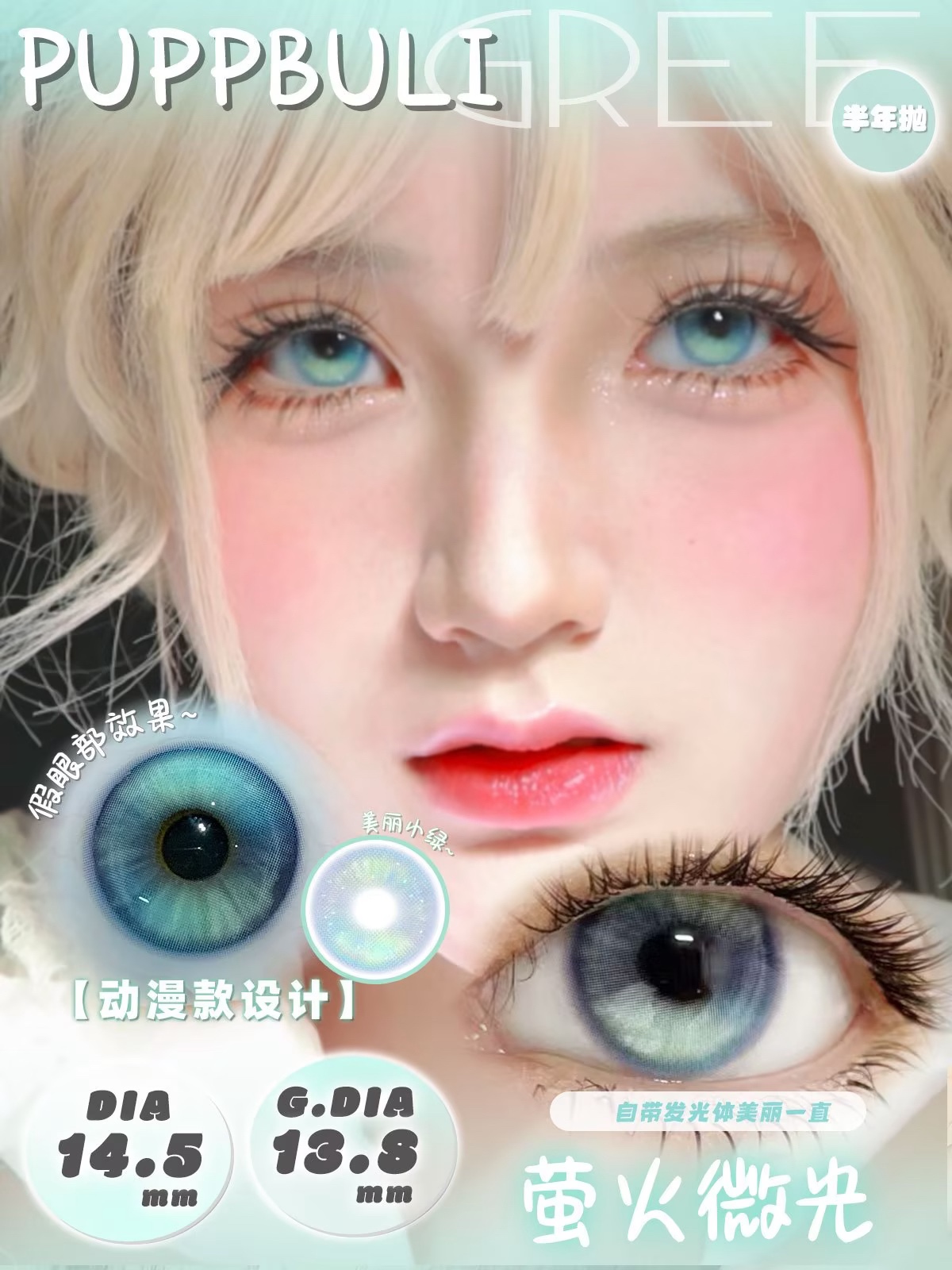 puppbuli 半年抛 萤火微光/爱神少女/银河旅行家/崩坏海音 蓝粉灰 水凝胶