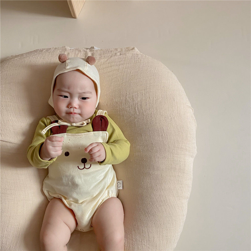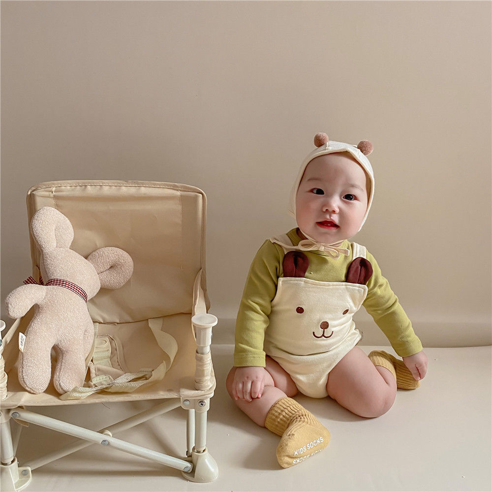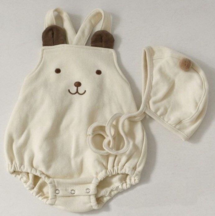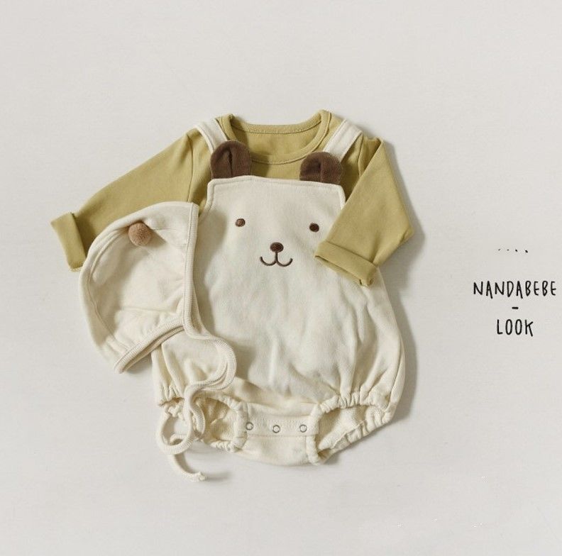 幸福满满INS款秋冬婴幼童男女宝宝可爱熊熊无袖背带哈衣+帽子