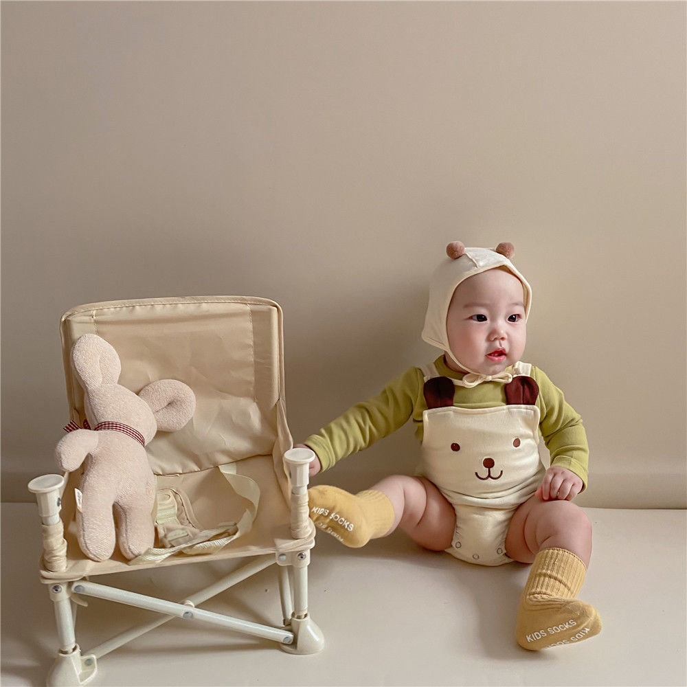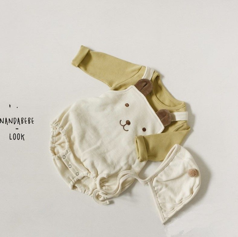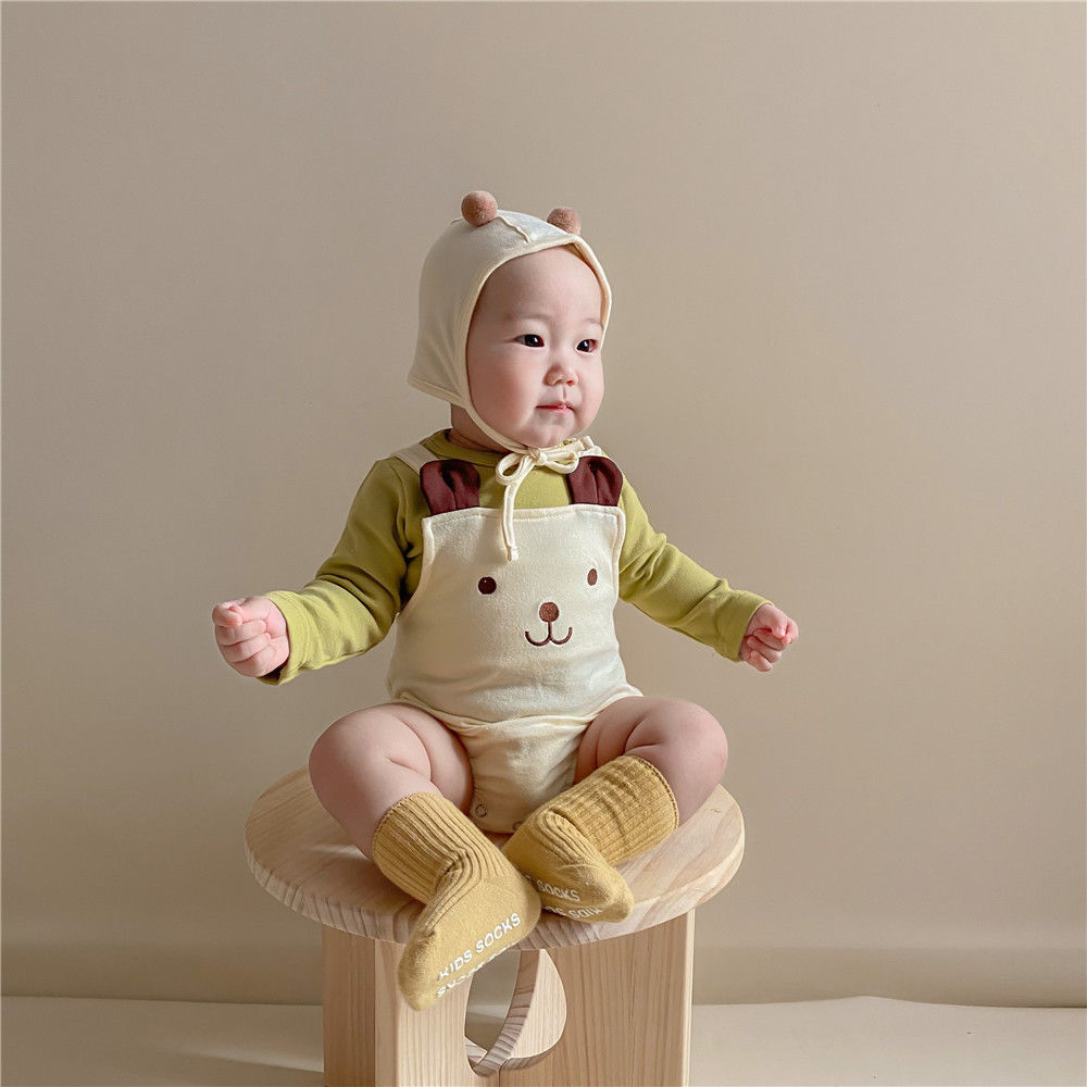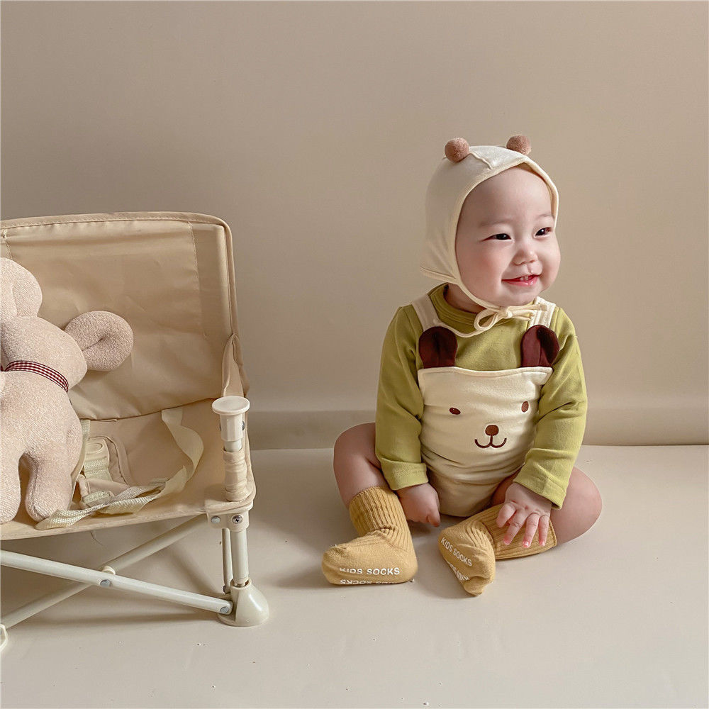 幸福满满INS款秋冬婴幼童男女宝宝可爱熊熊无袖背带哈衣+帽子