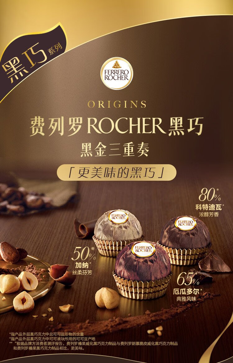 费列罗榛果威化黑巧克力制品24粒装300g/040561 黑金三重奏更美味的黑巧