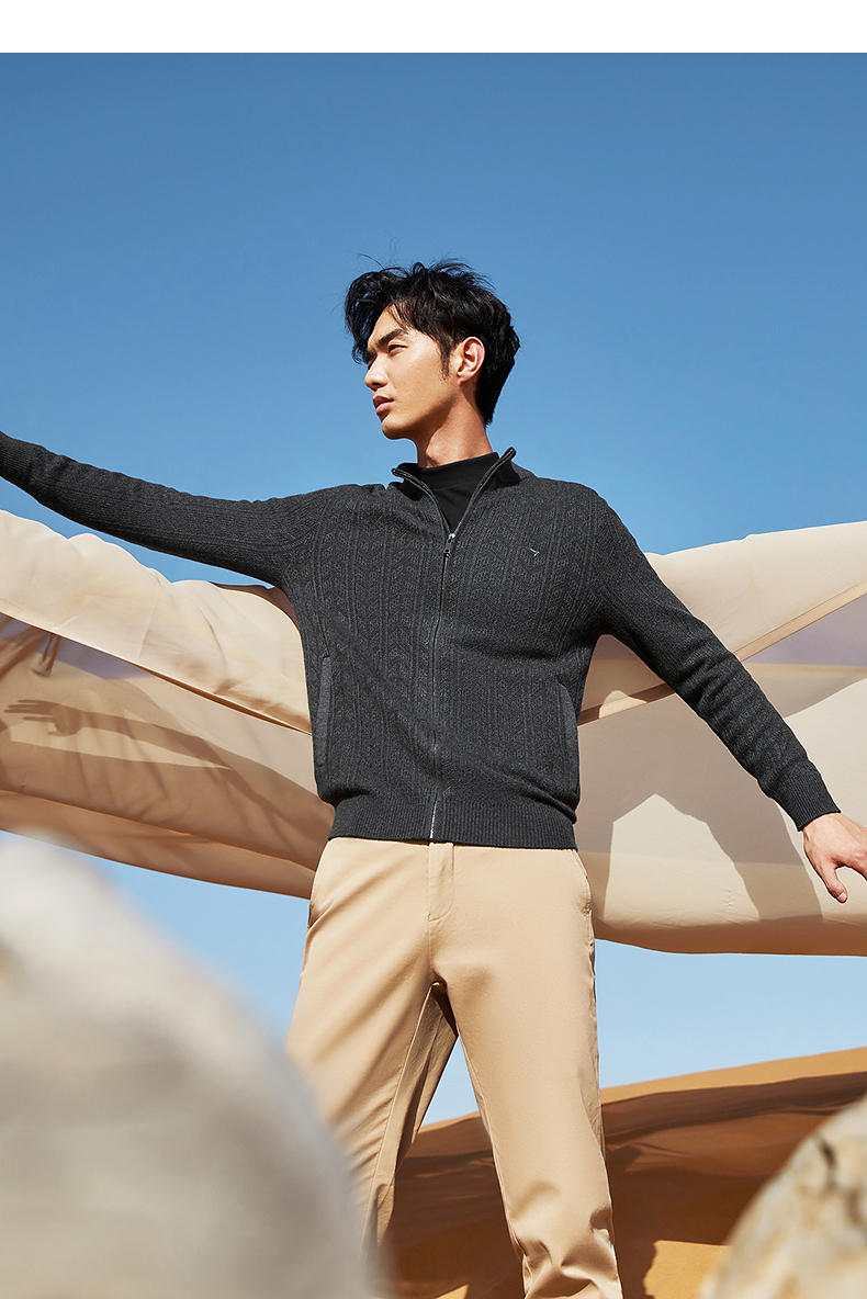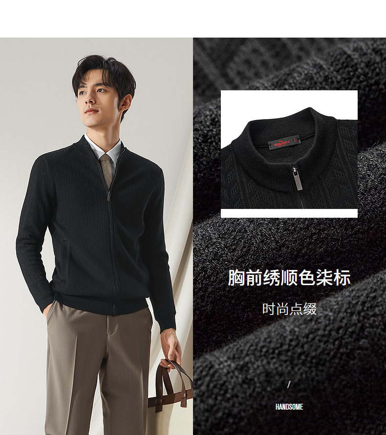 【高端系列】柒牌开衫毛衣男2024秋冬新款时尚休闲中青年保暖外套 127Y71120