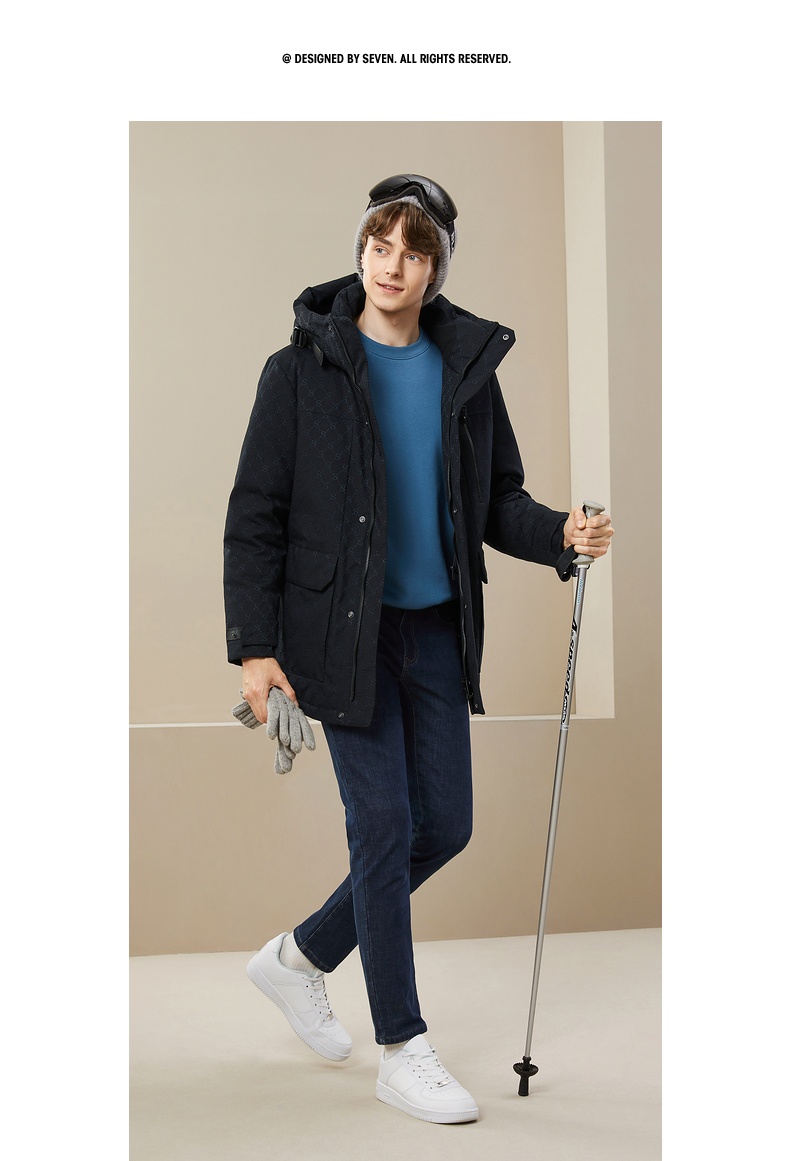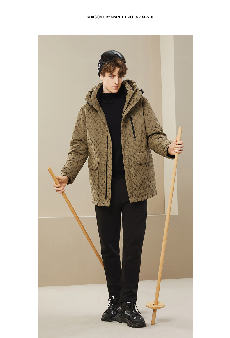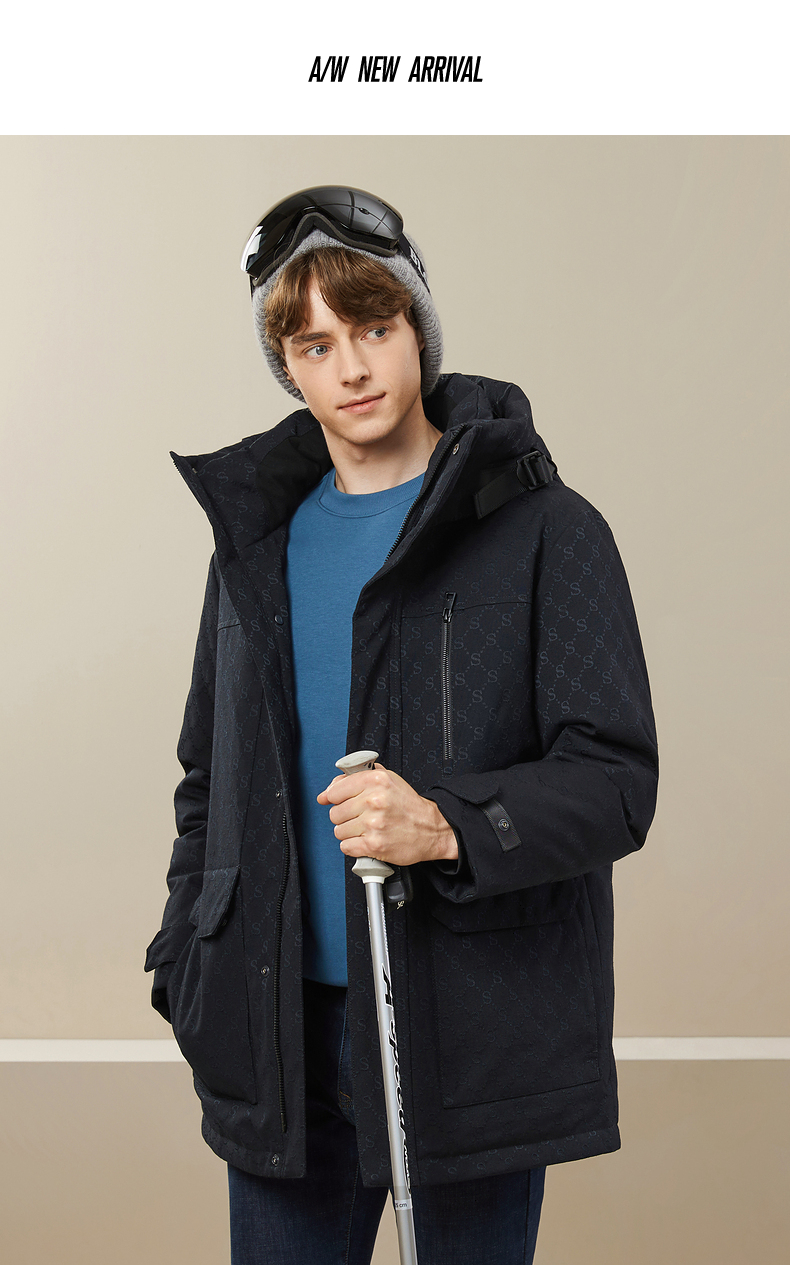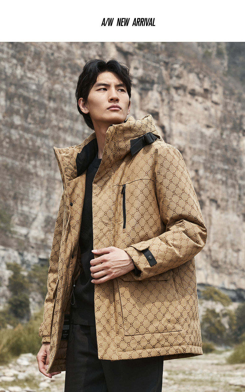 【白鹅绒】柒牌连帽羽绒服男冬季新款时尚潮流字母提花保暖厚外套 125E70730