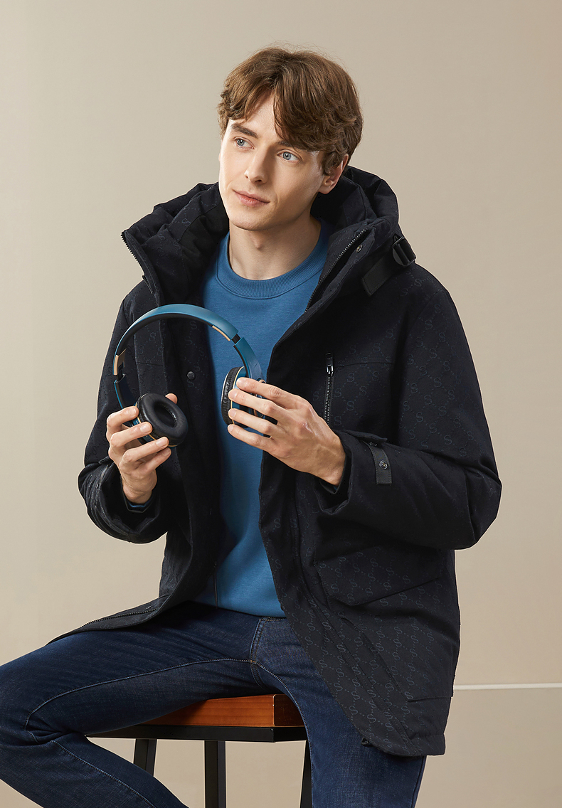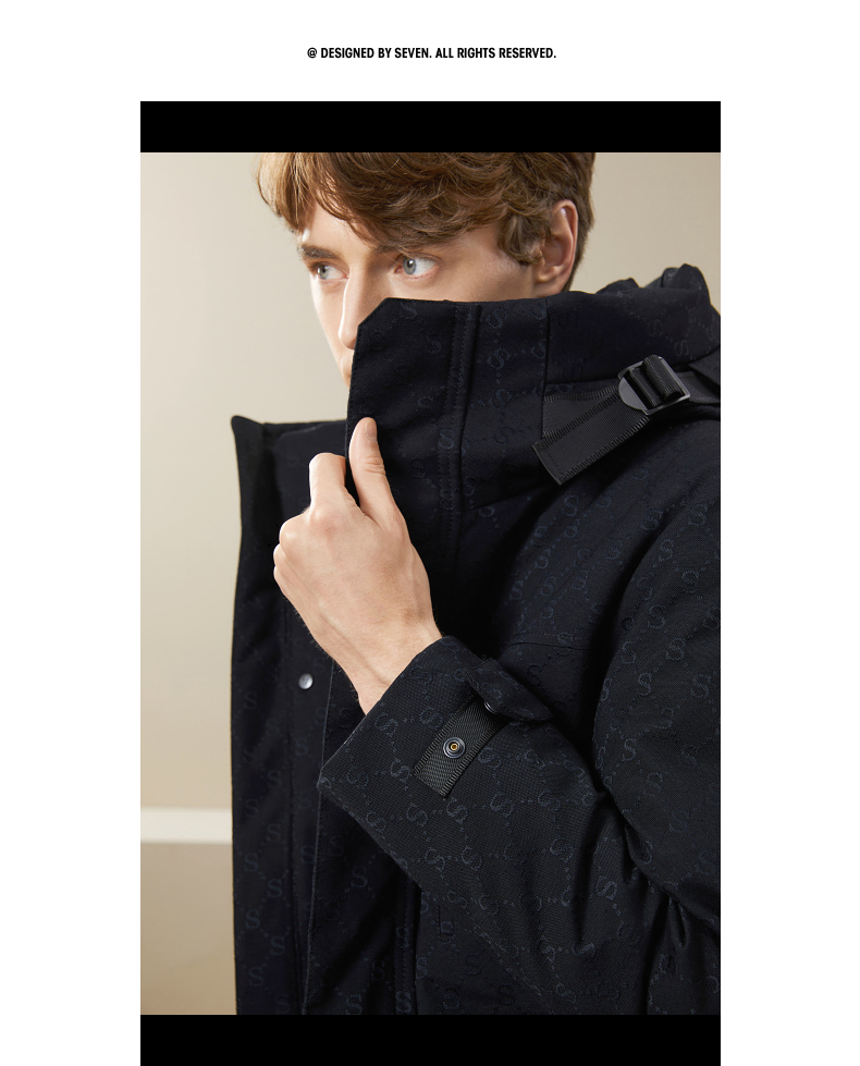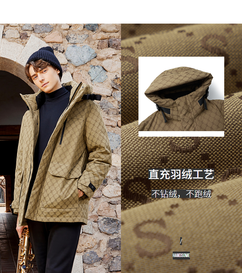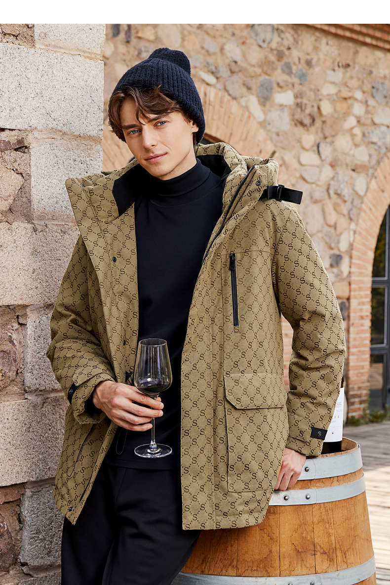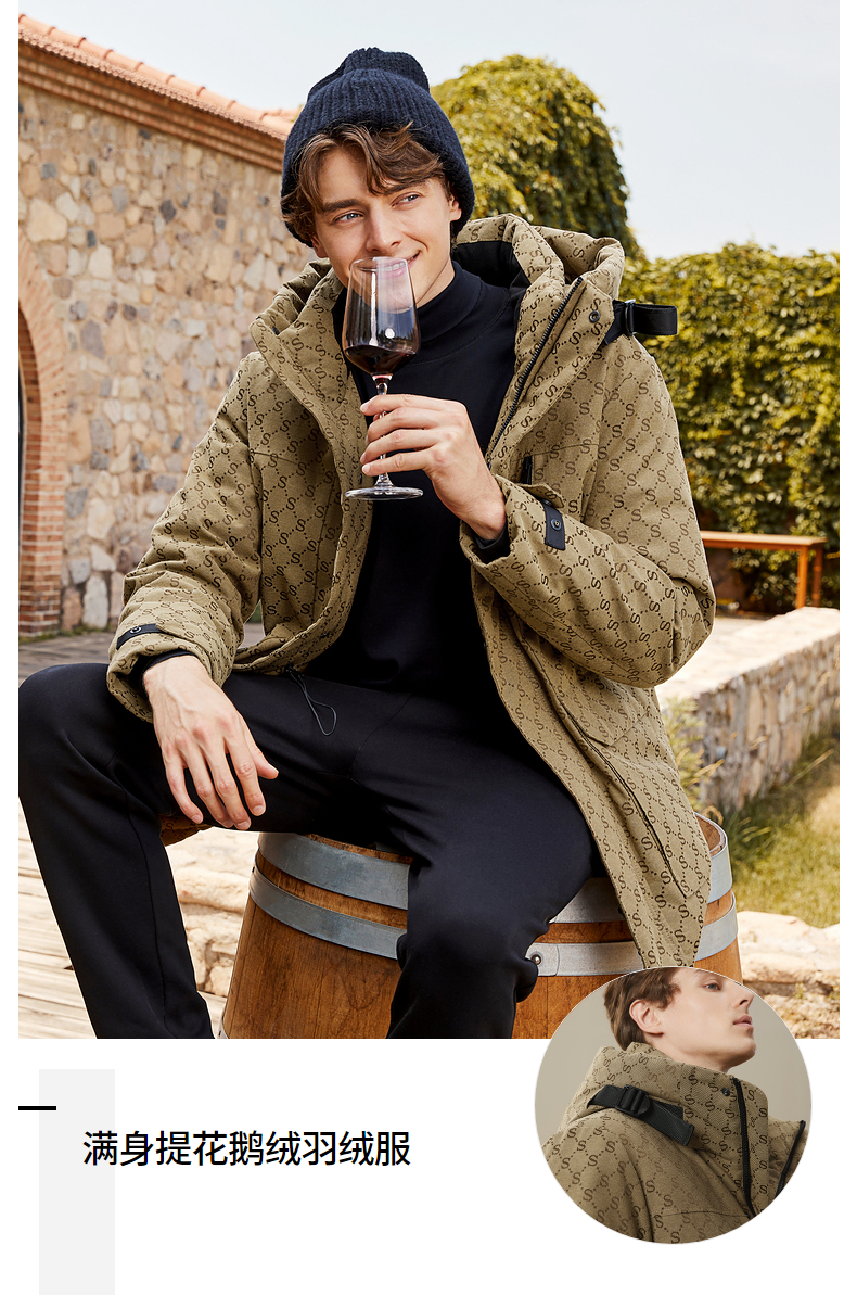 【白鹅绒】柒牌连帽羽绒服男冬季新款时尚潮流字母提花保暖厚外套 125E70730
