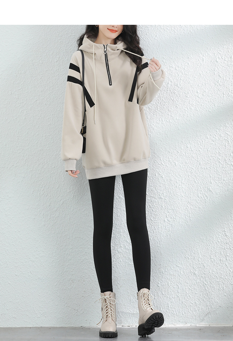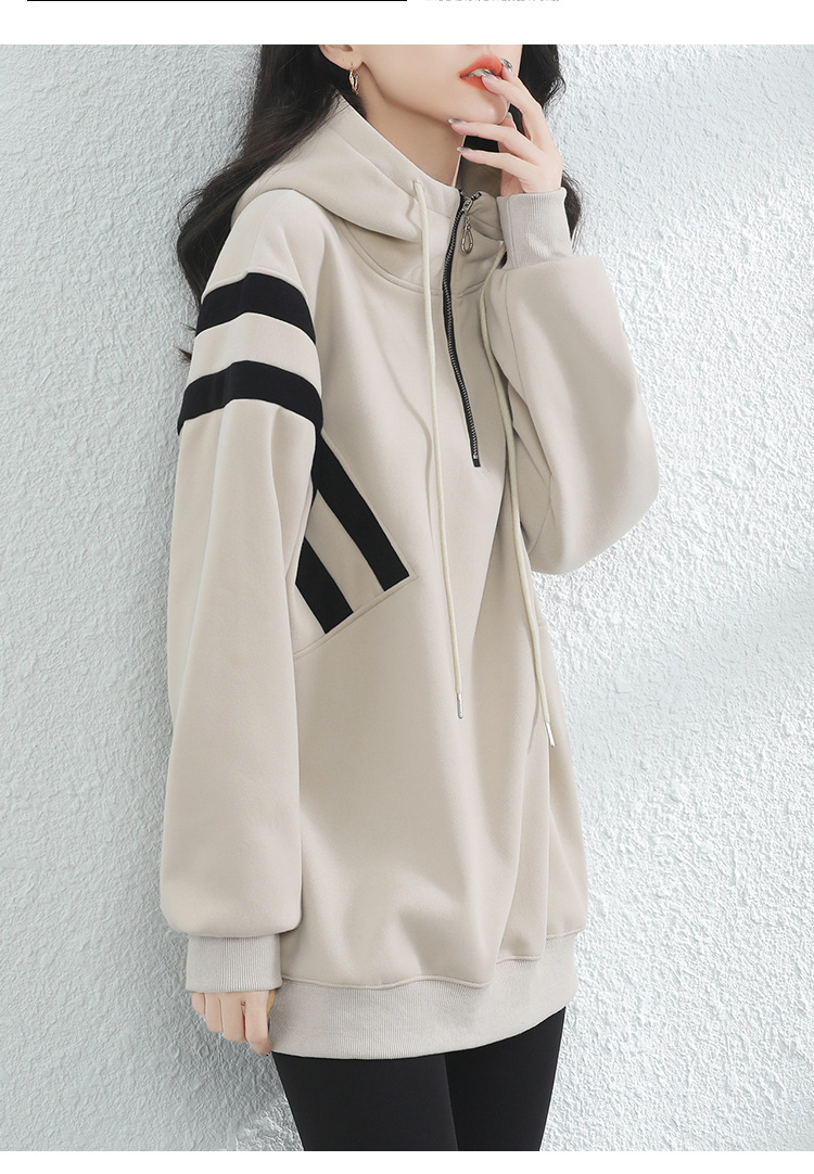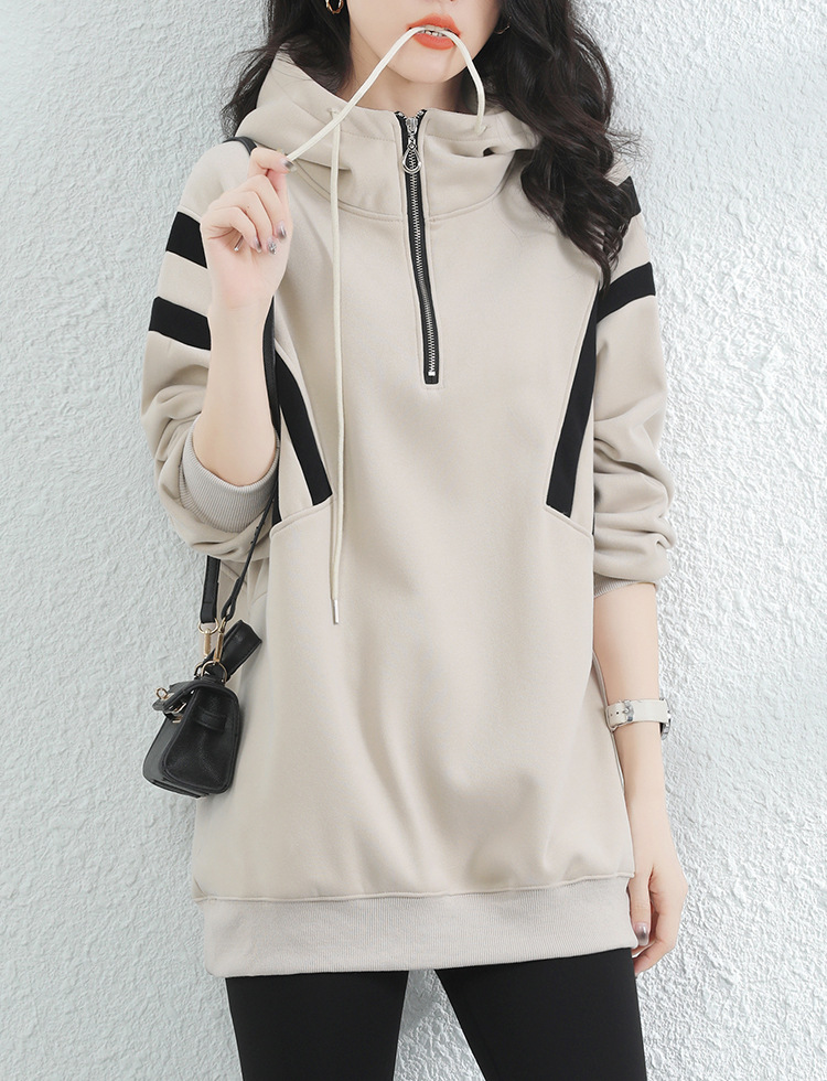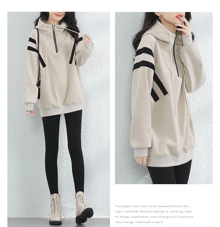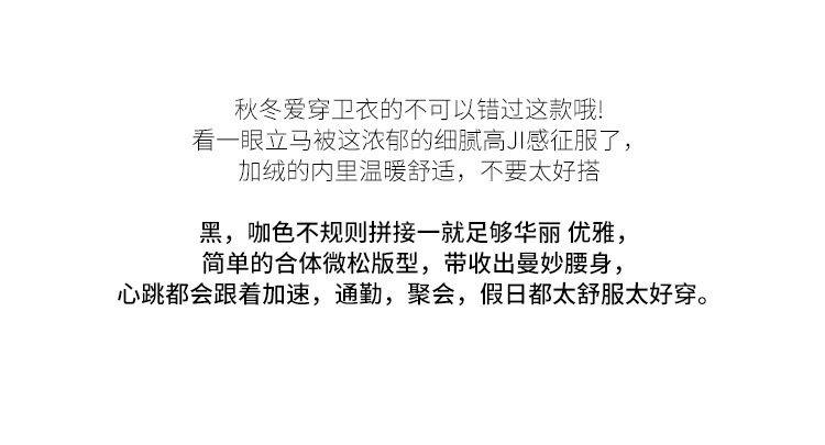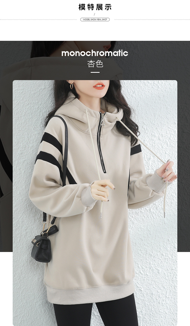 复古撞色连帽中长款加绒卫衣女,冬装新款美式百搭上衣厚 GYM-D0434