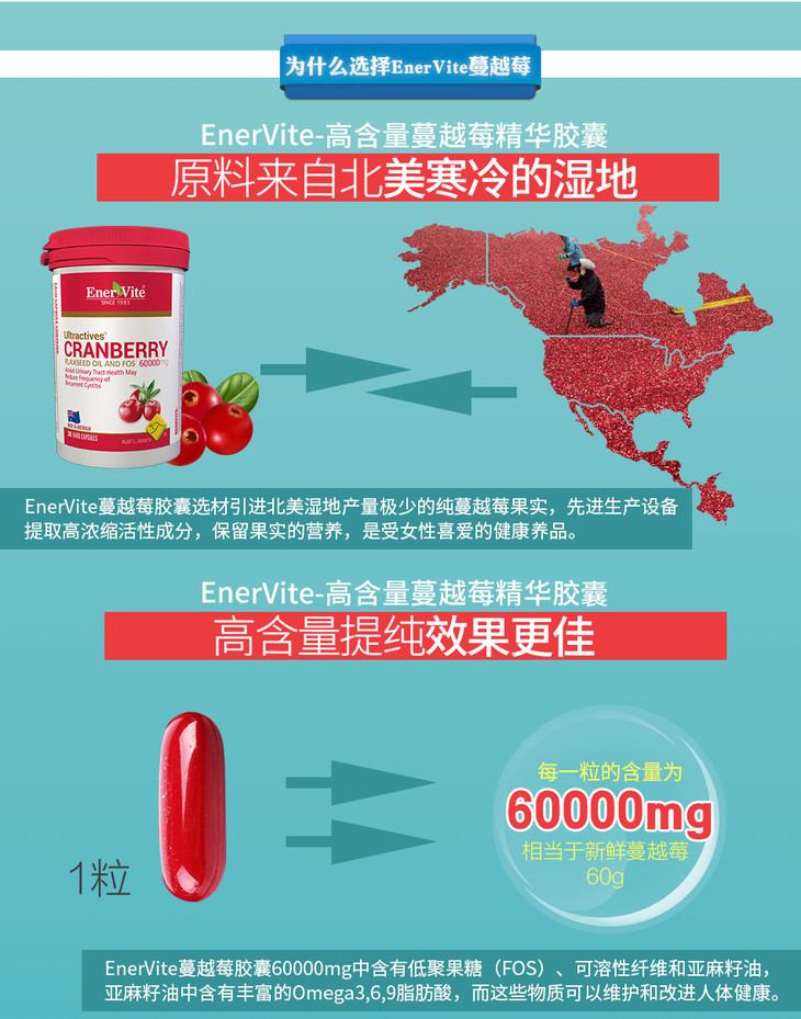 【保税仓】澳洲Enervite澳乐维他 天然高活力60000mg蔓越莓(30粒/瓶) 商品图0