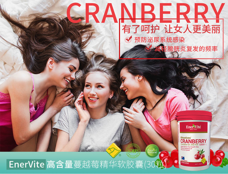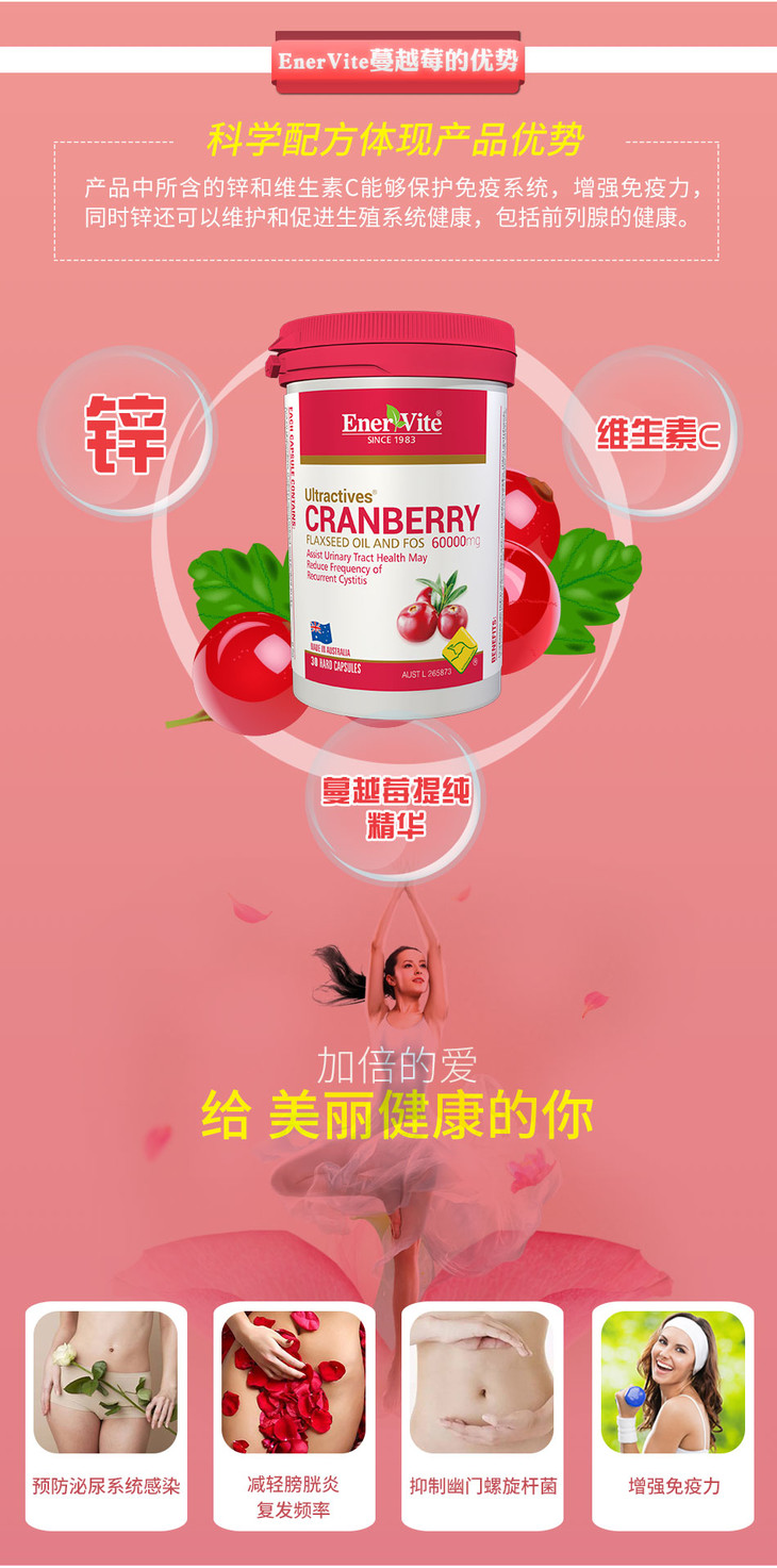 【保税仓】澳洲Enervite澳乐维他 天然高活力60000mg蔓越莓(30粒/瓶)