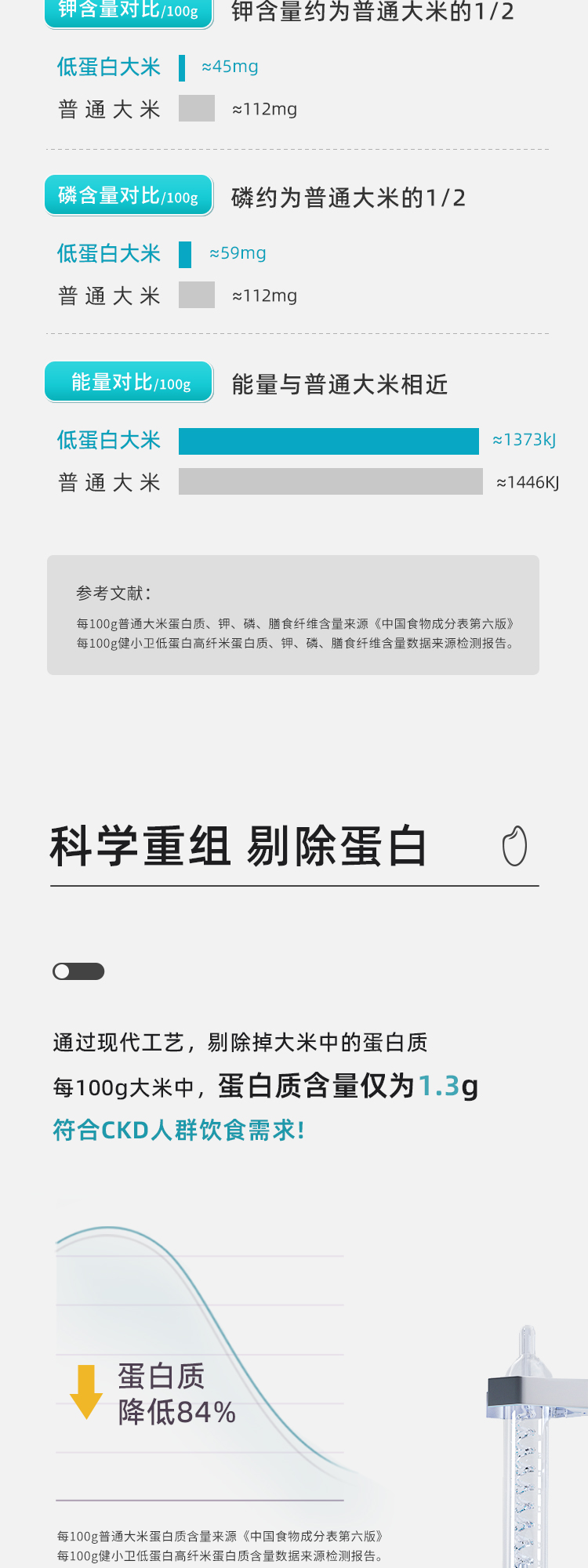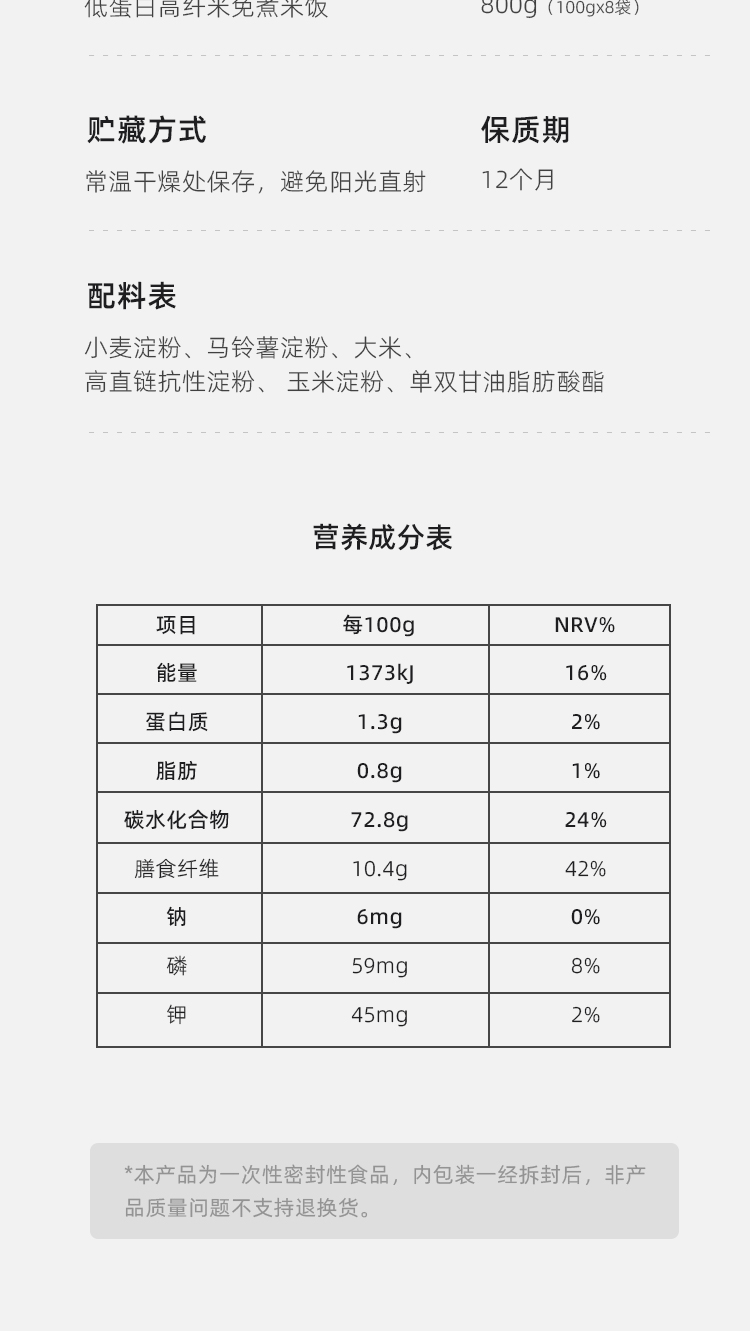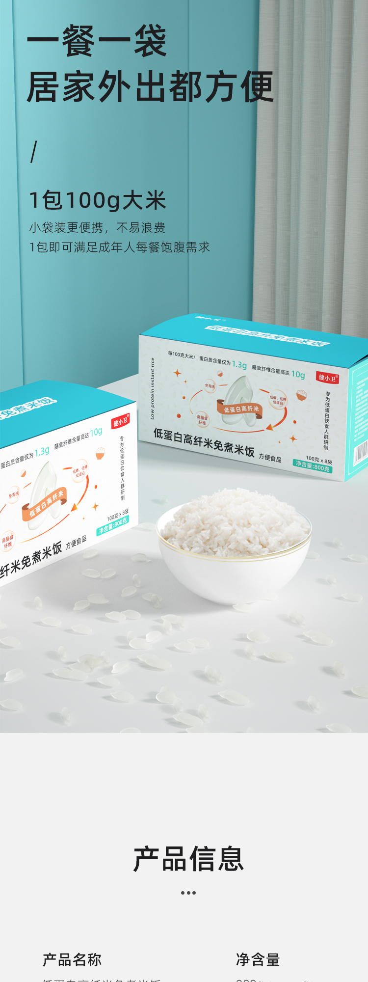 【低蛋白高纤米免煮米饭】健小卫低蛋白米,冲泡即食,无需蒸煮,小包便携装,低蛋白高膳食纤维 800g/盒(100g*8袋)