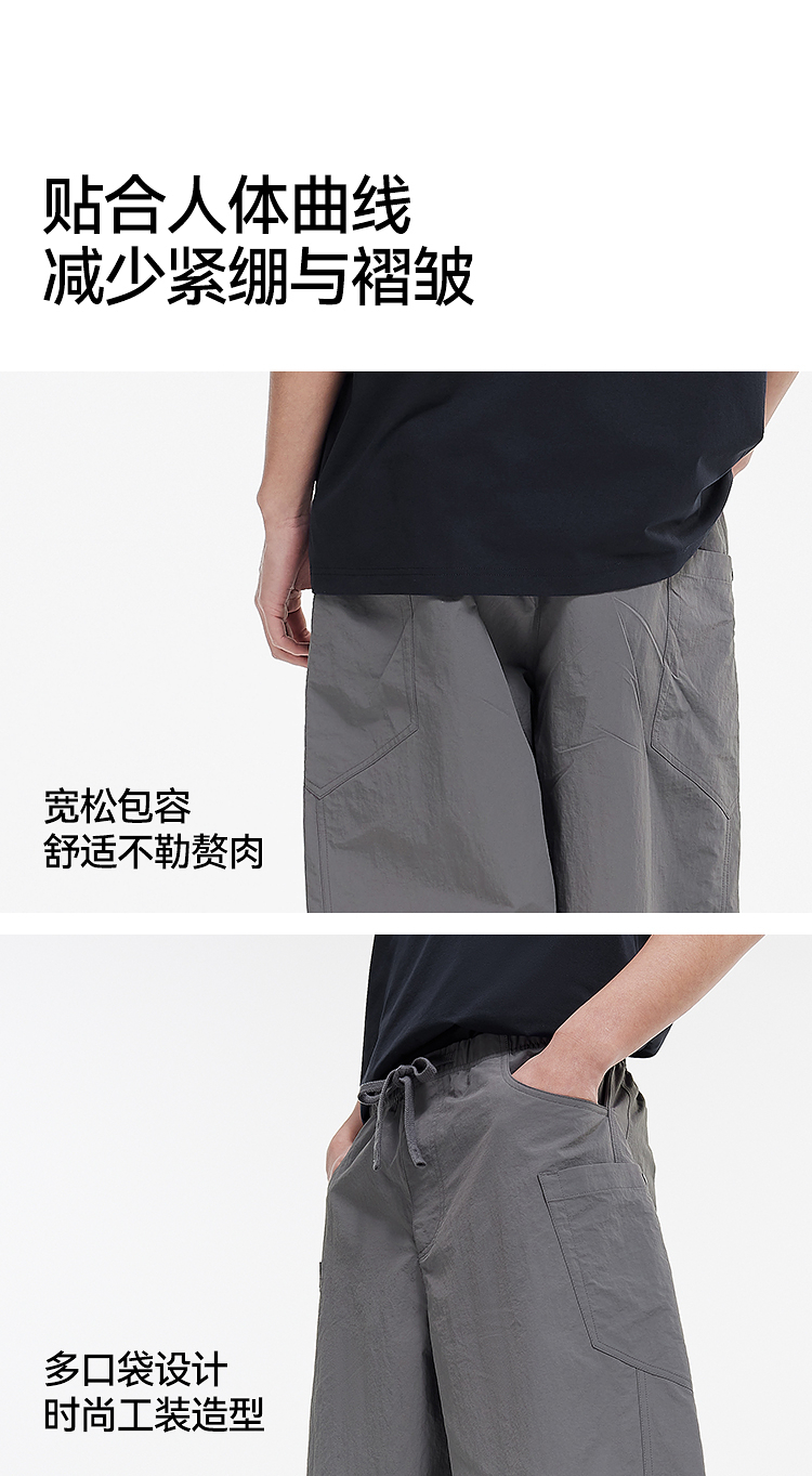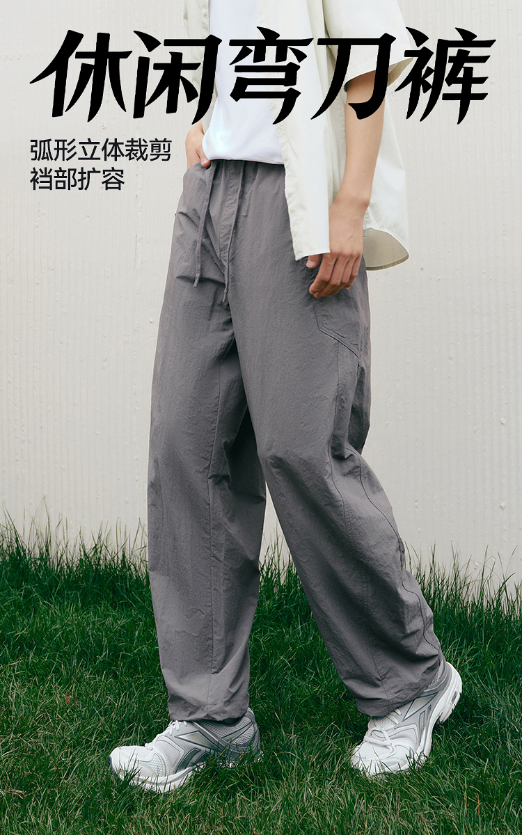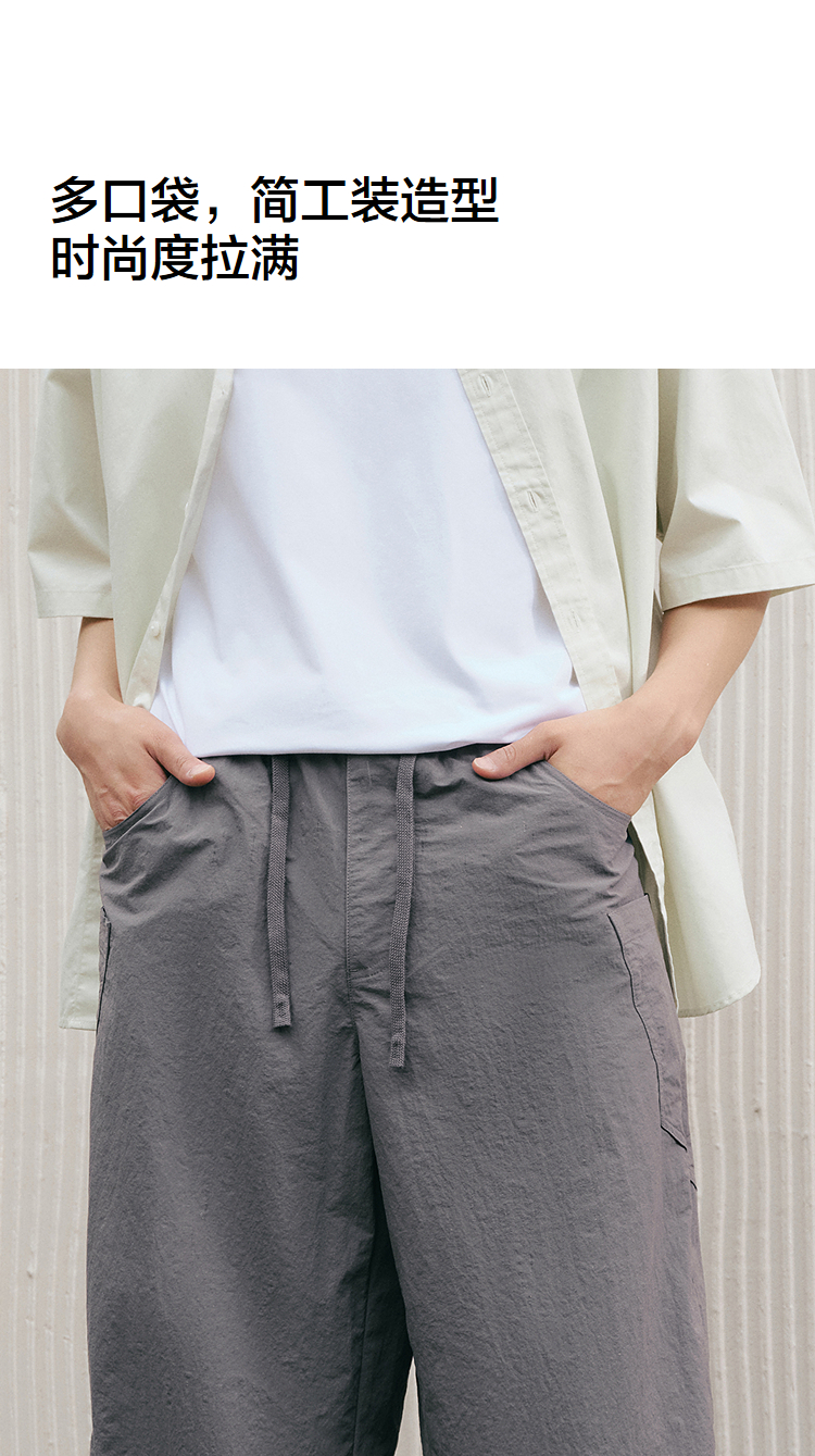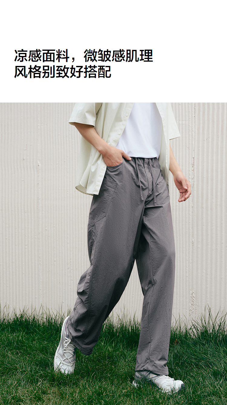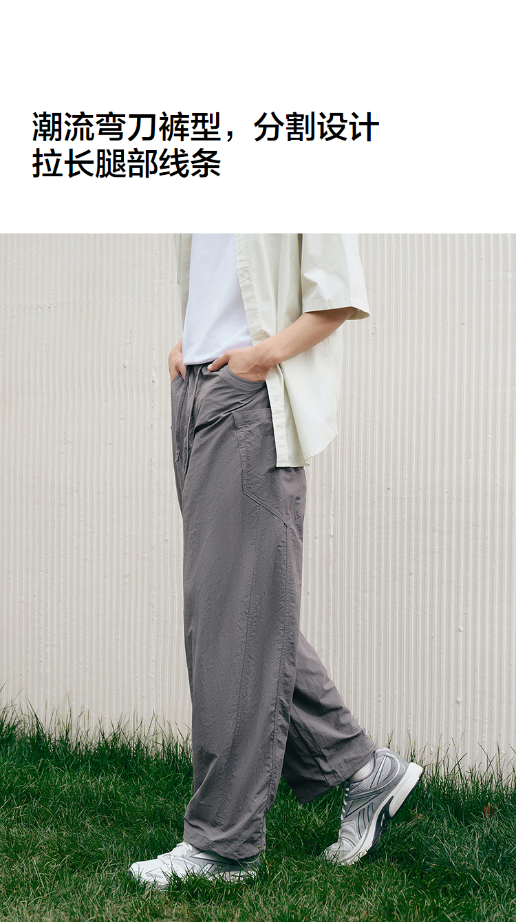 森马休闲裤男宽松阔腿弯刀裤凉感2025夏季新款直筒裤简工装皱感潮