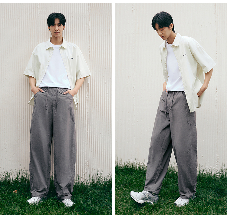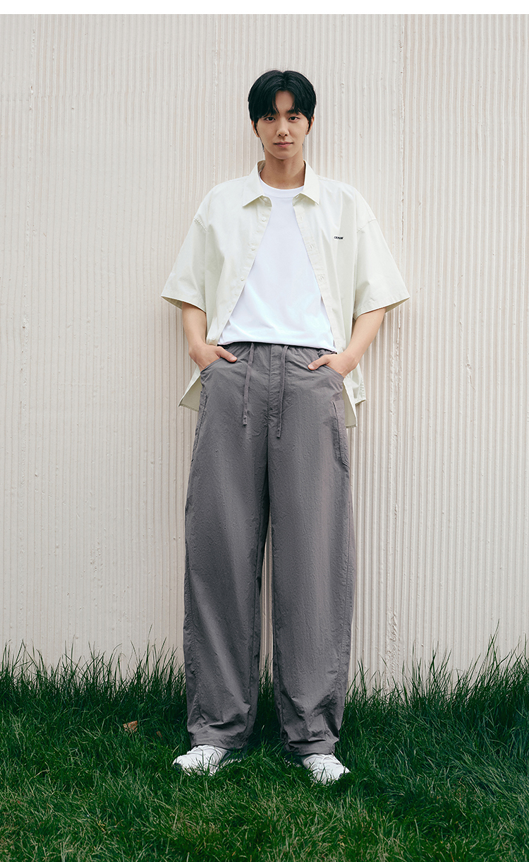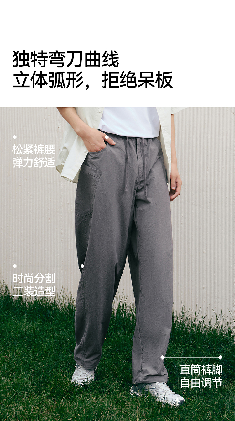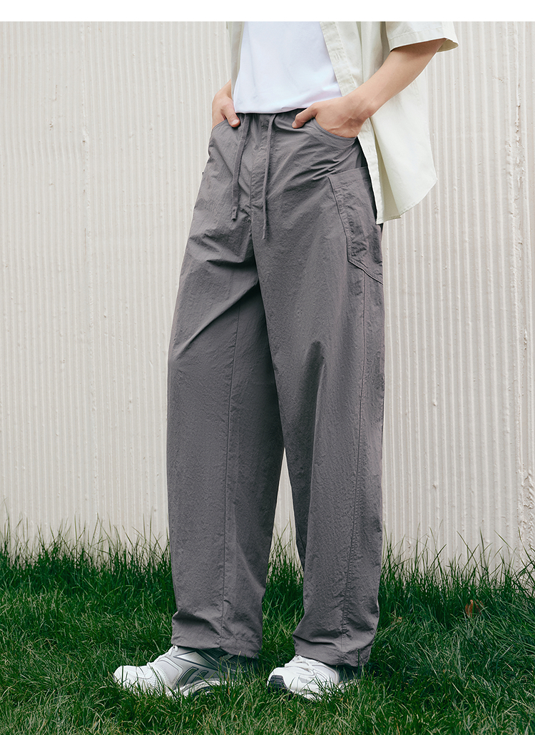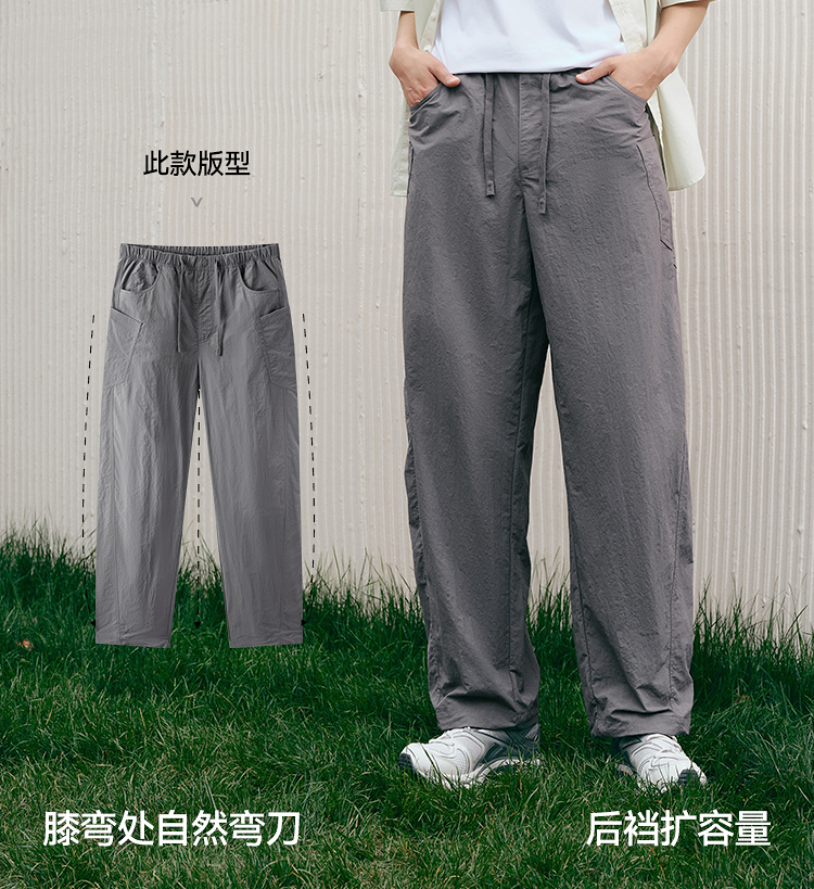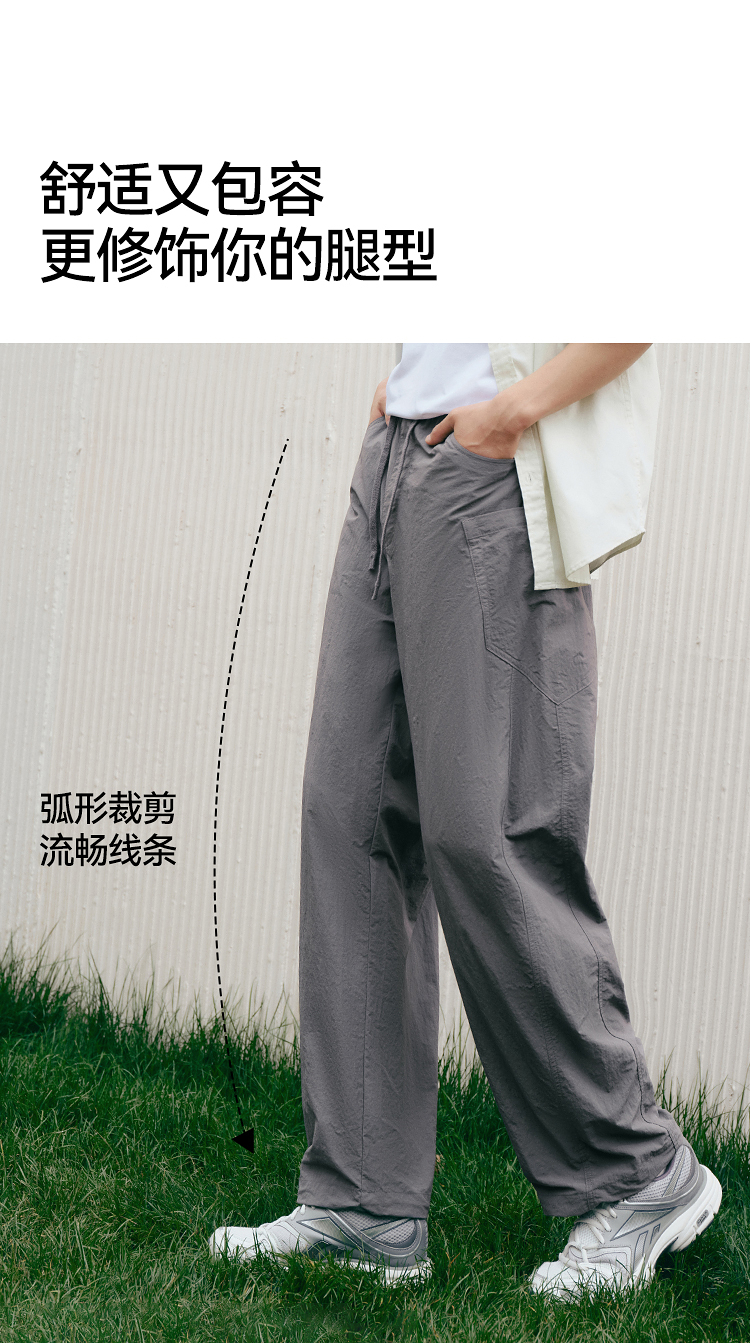 森马休闲裤男宽松阔腿弯刀裤凉感2025夏季新款直筒裤简工装皱感潮