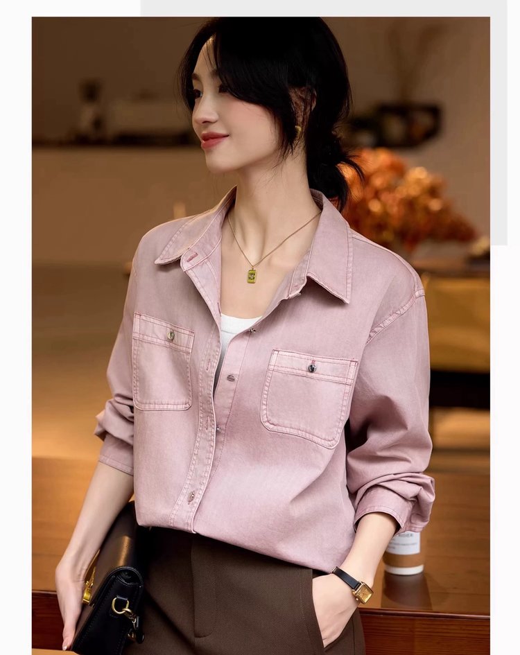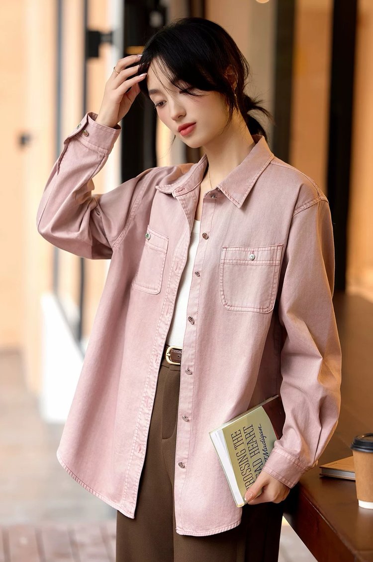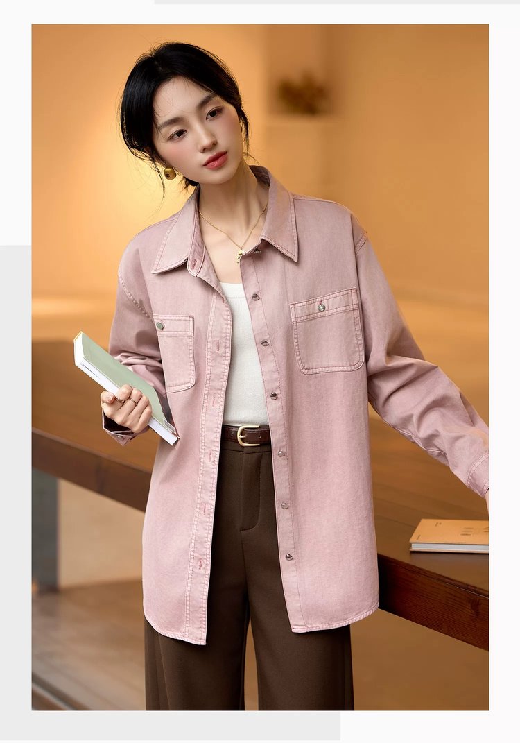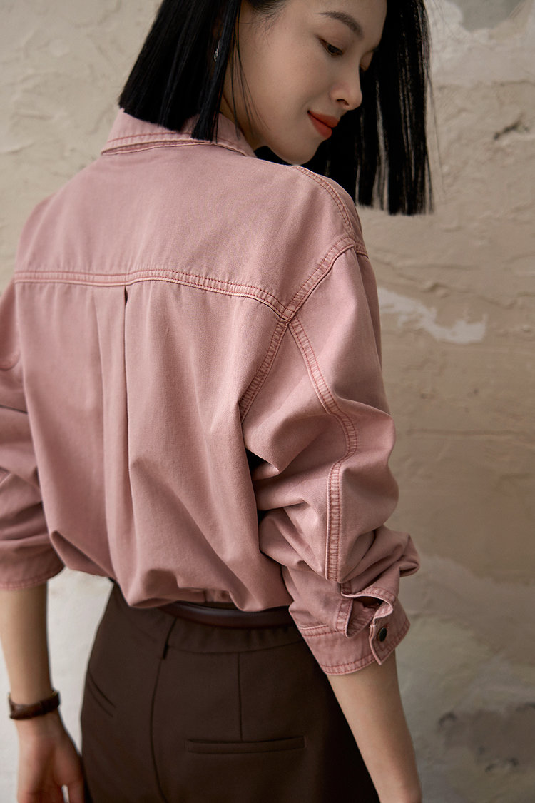 M家同款 一眼沦陷的「美式复古」干枯玫瑰纯棉牛仔外套衬衫