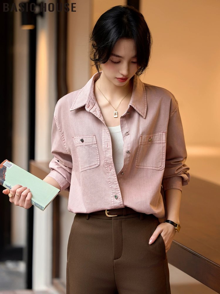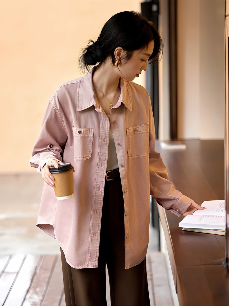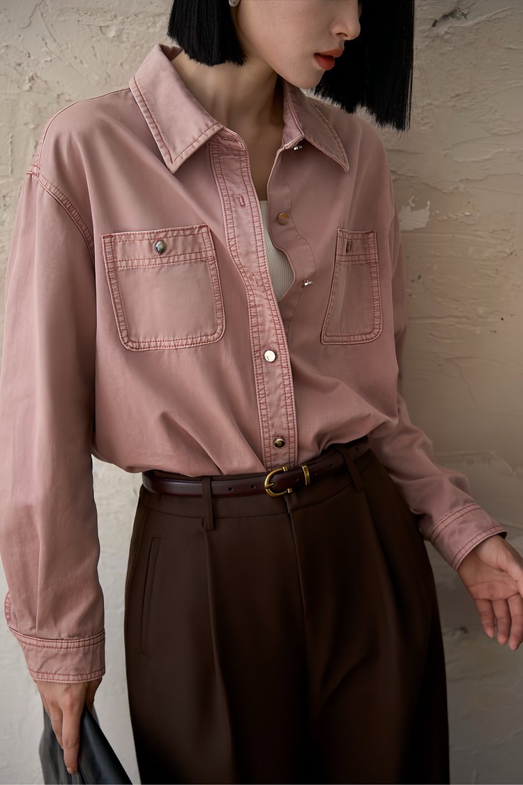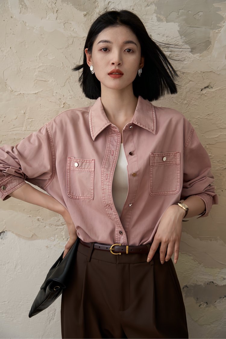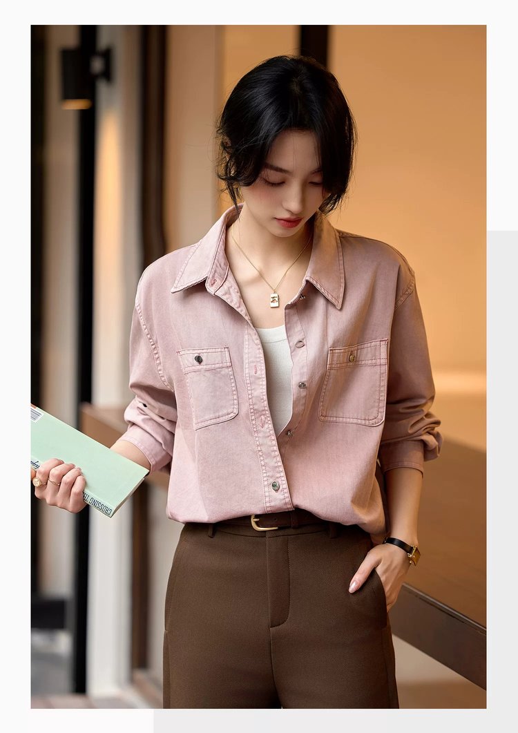 M家同款 一眼沦陷的「美式复古」干枯玫瑰纯棉牛仔外套衬衫