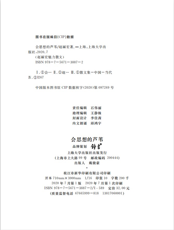 正版【钟书阁】赵丽宏魅力散文 会思想的芦苇 统编语文 上海大学出版社