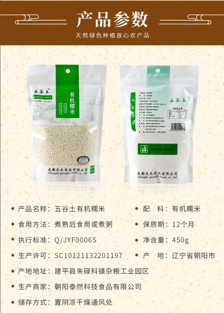 五谷土有机糯米450g/袋