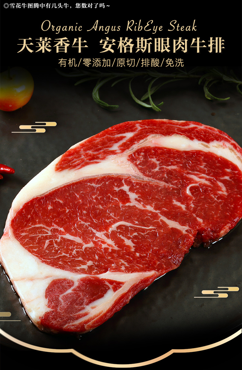【冷冻】天莱香牛有机牛肉安格斯原切眼肉牛排200g/盒*5盒