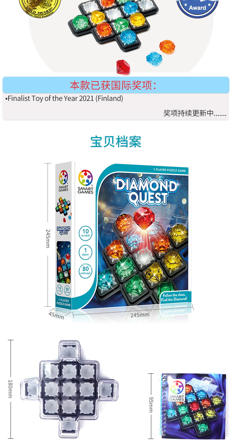 SMART GAMES SG 093比利时桌游Diamond Quest 钻石迷阵(经典系列)
