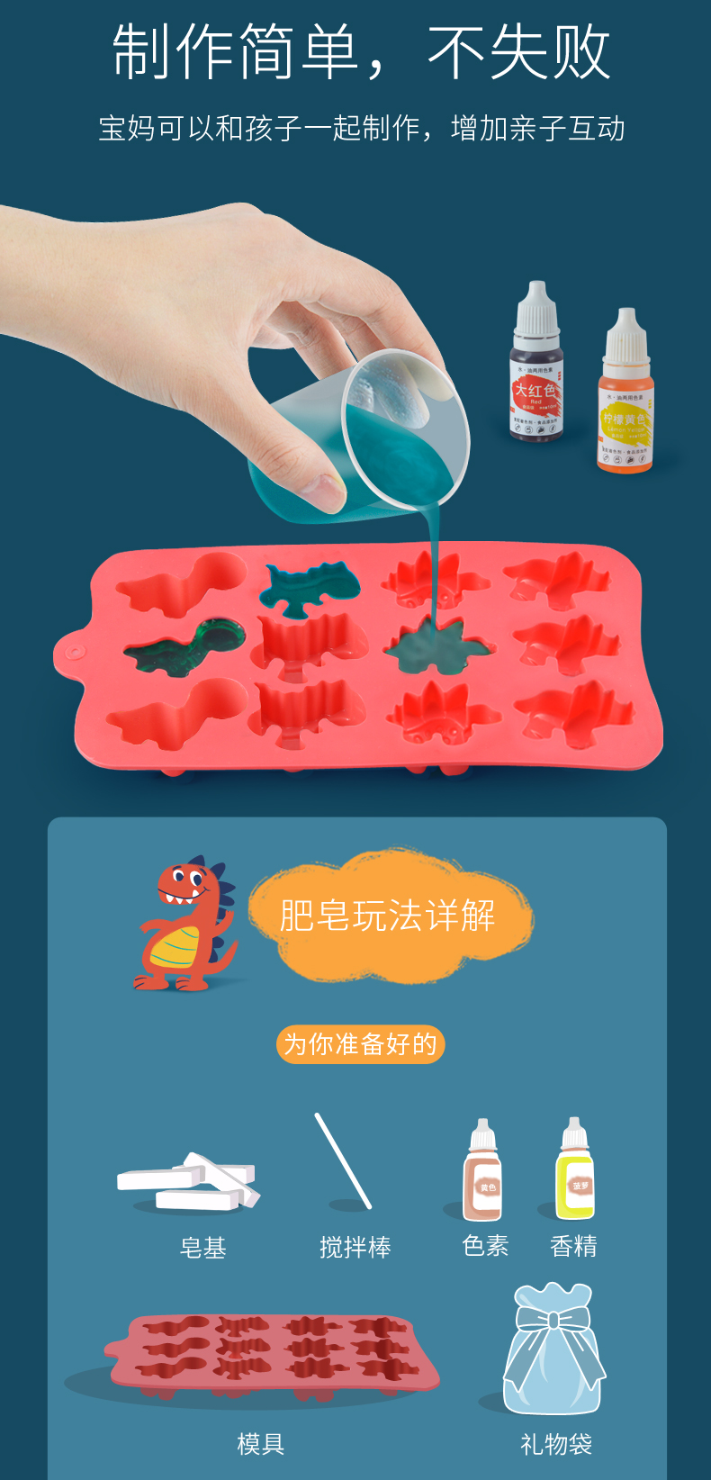 【自制手工皂 让孩子爱上洗手】儿童手工diy制作材料包 恐龙水晶肥皂自制礼物