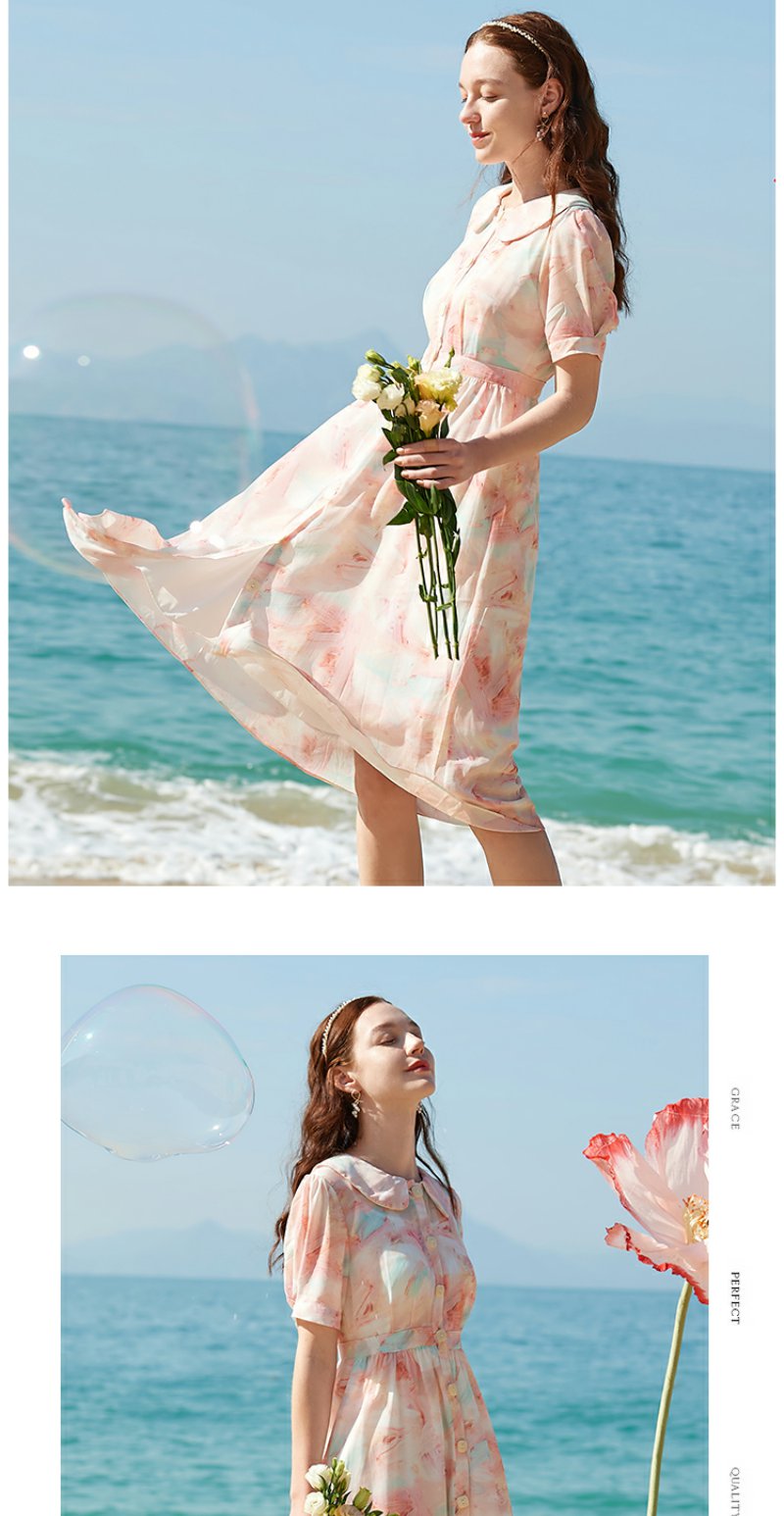 欧芮儿夏装新款短袖印花雪纺连衣裙女中长款气质收腰显瘦A字