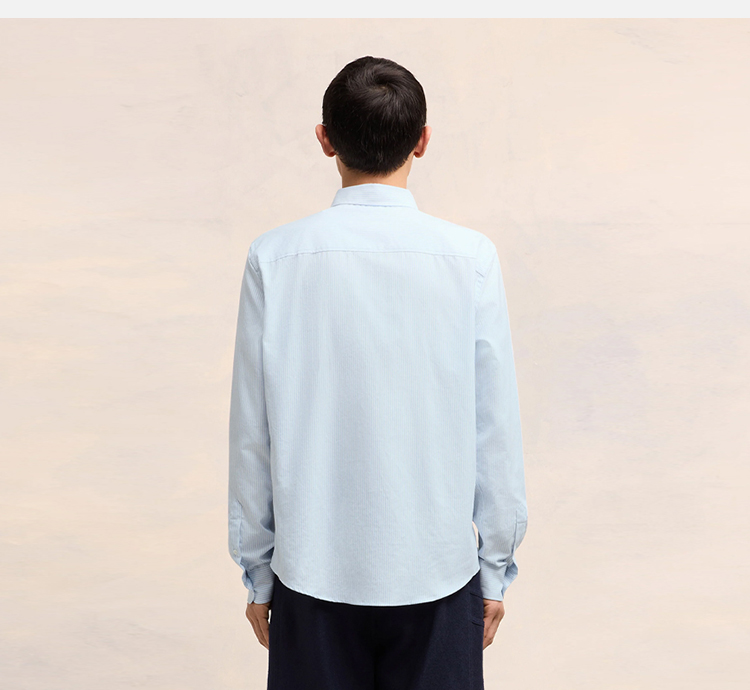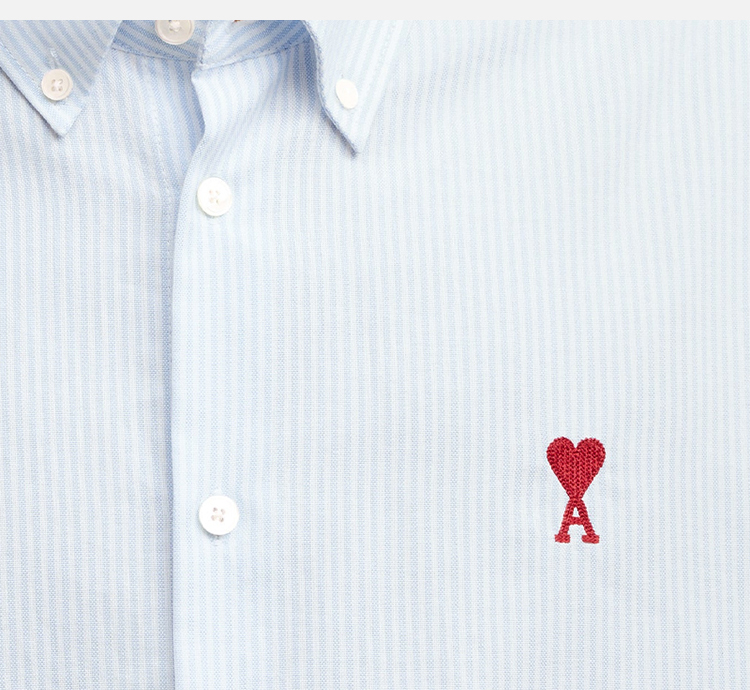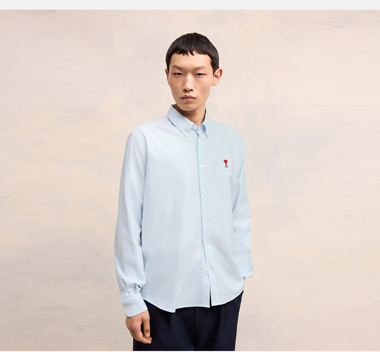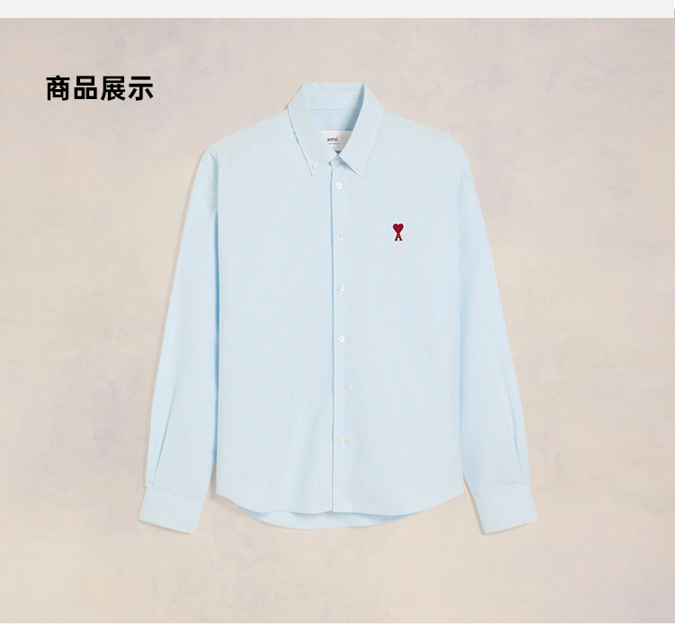 AMI 男士徽标刺绣条纹棉质牛津纽扣长袖衬衫 浅蓝色 BFUSH063 CO0087 475
