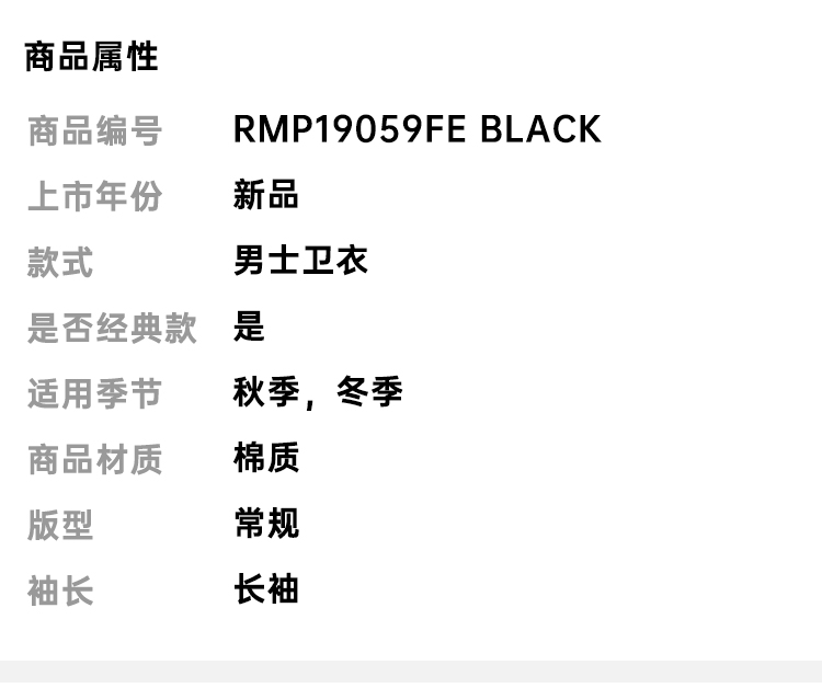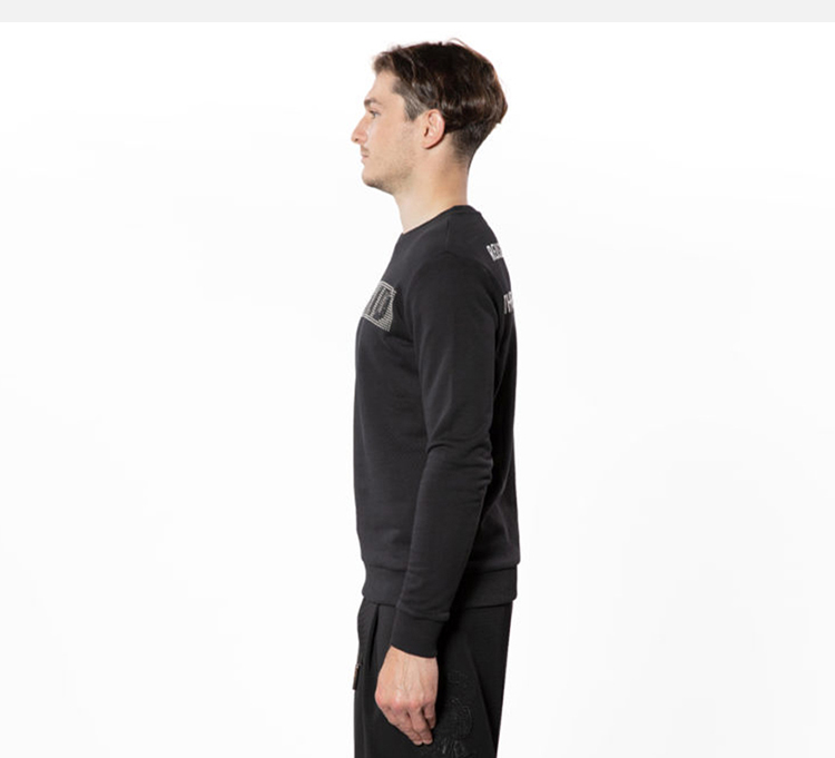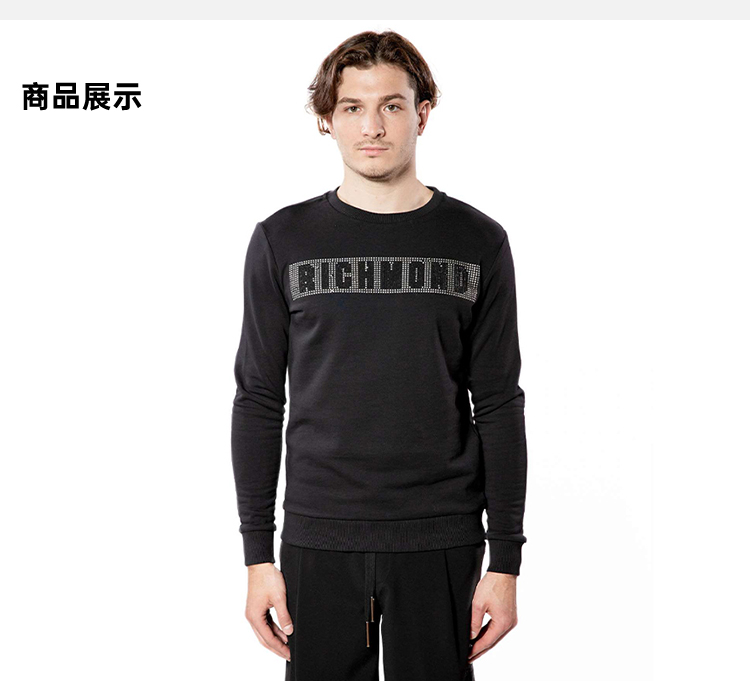 RICHMOND 男士棉质铆钉字母圆领长袖卫衣 黑色 RMP19059FE BLACK