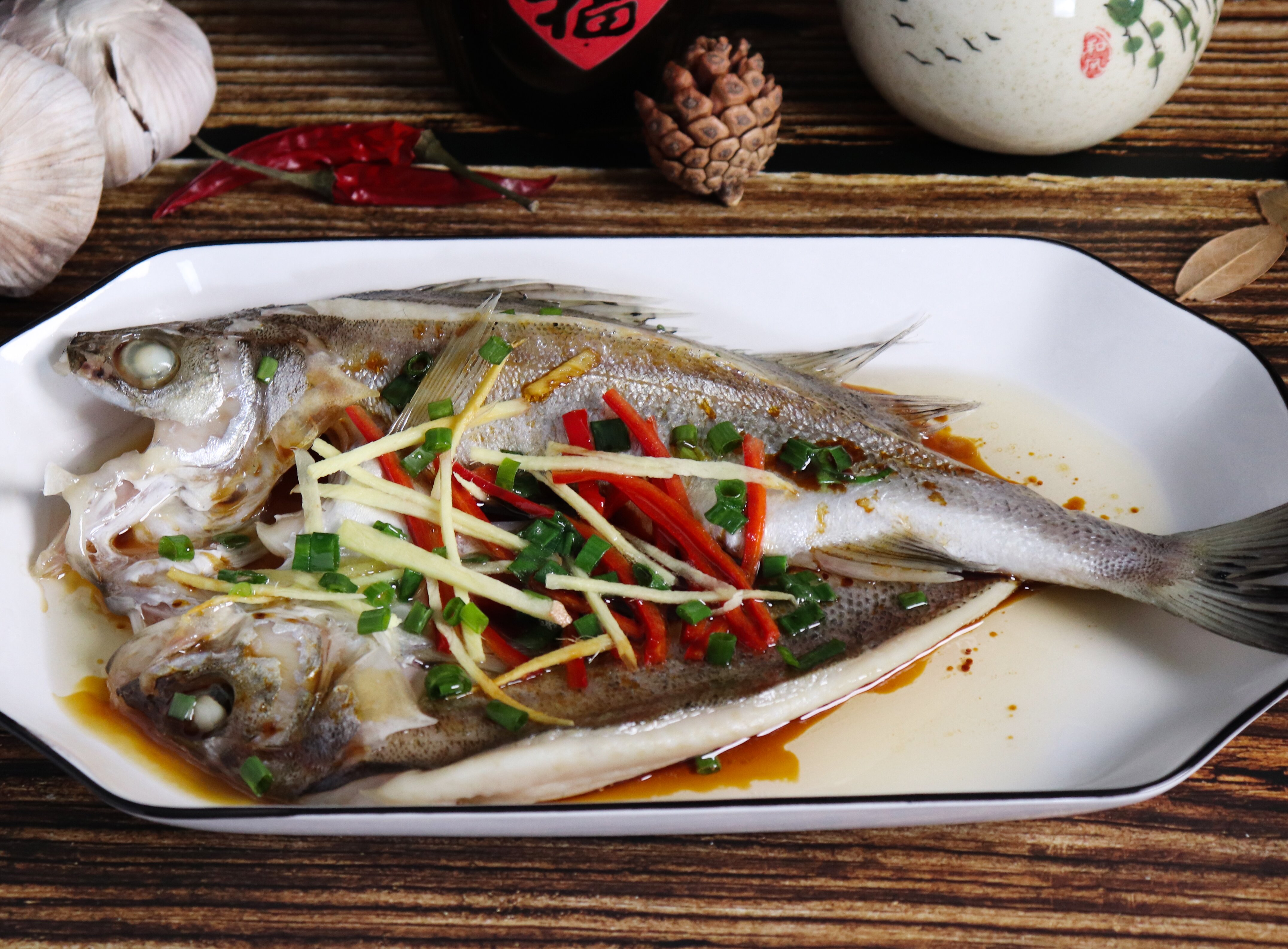拆袋加姜葱清蒸8分钟,倒入蒸鱼鼓油