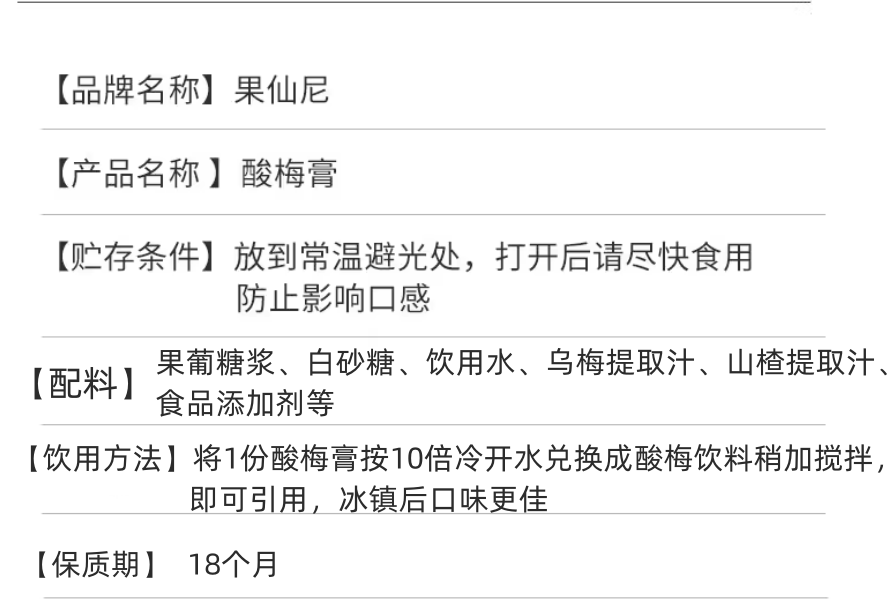 1kg 果仙尼 原味酸梅膏 10倍浓缩饮料 酸梅汤乌梅果汁家用餐饮商用原材料