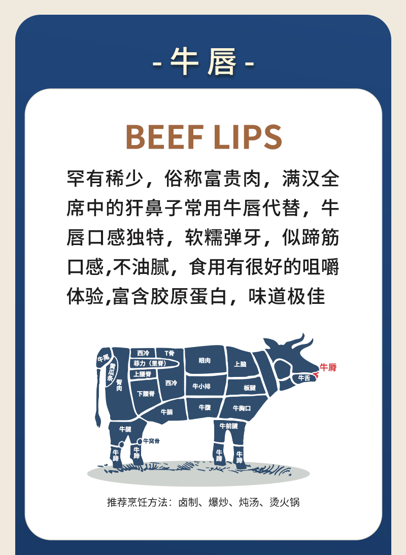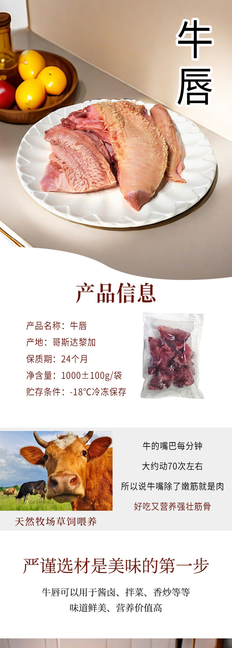 【清真】牛唇1000±100g 原料原产国-哥斯达黎加