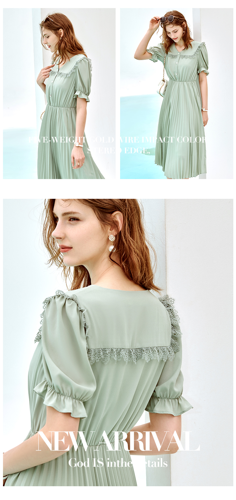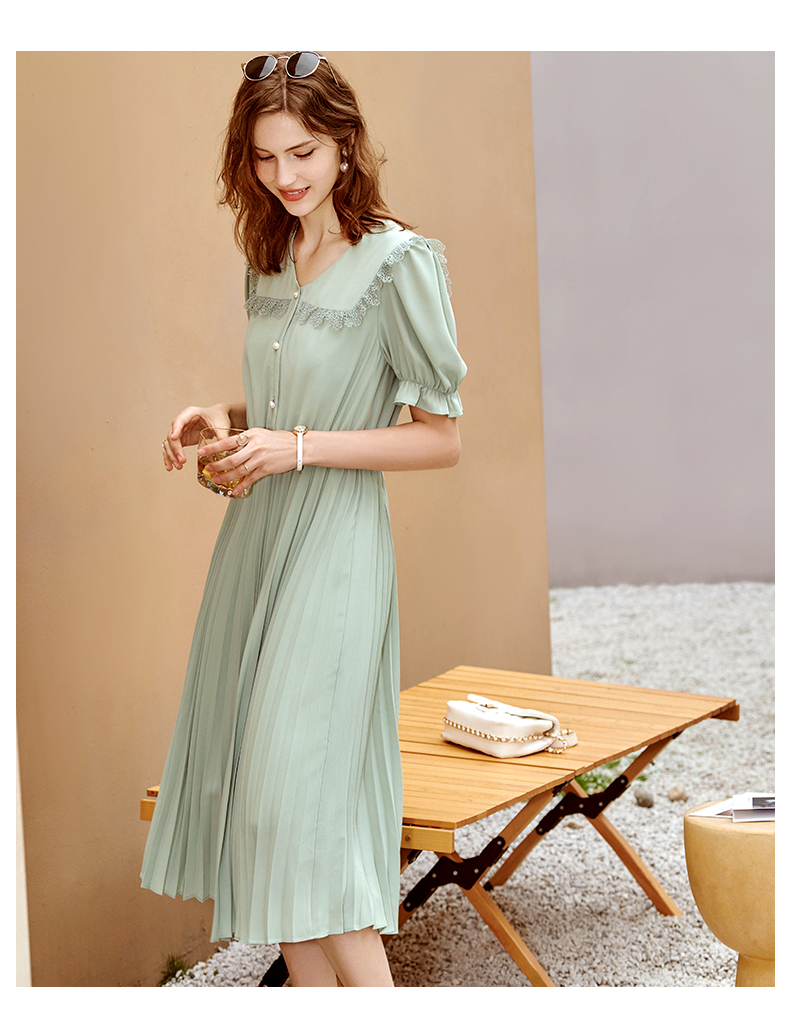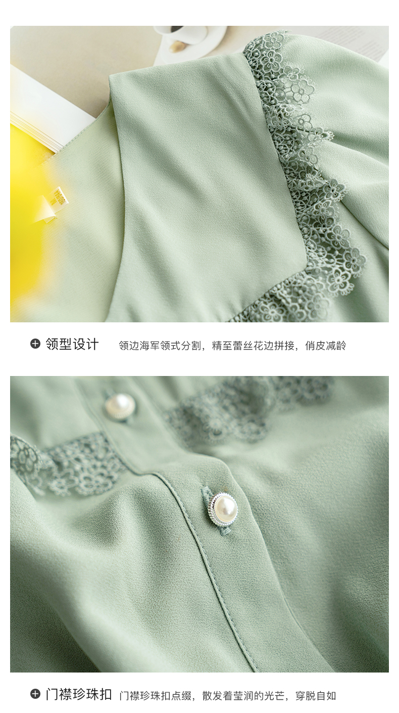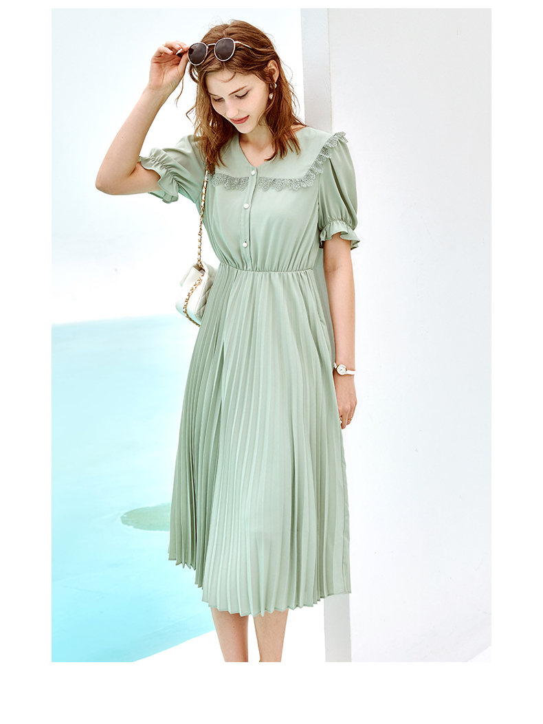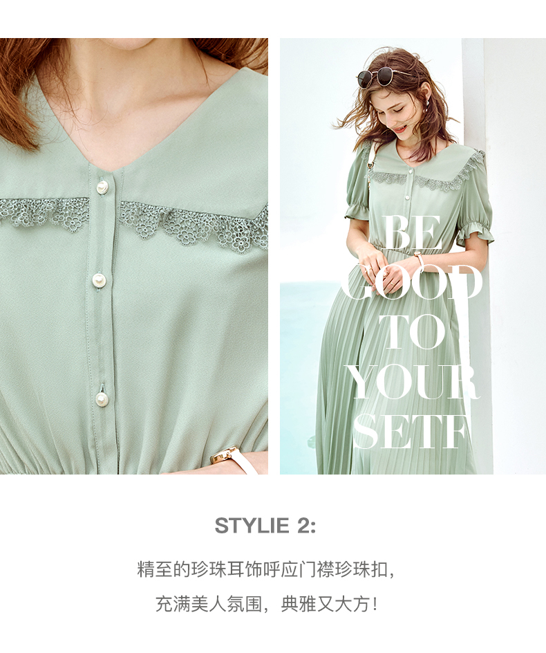 欧芮儿雪纺连衣裙2021夏收腰显瘦气质V领花边法式拼接时髦桔梗裙