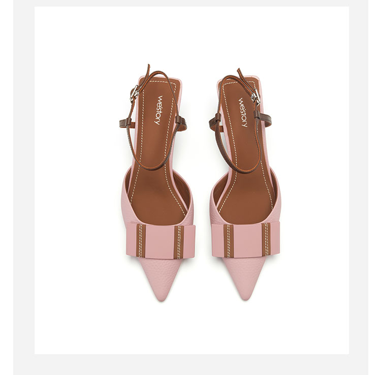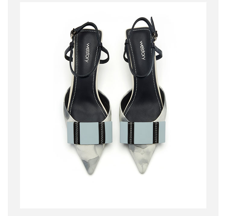 westory夏季彩色羊皮优雅尖头细高跟空鞋女56011