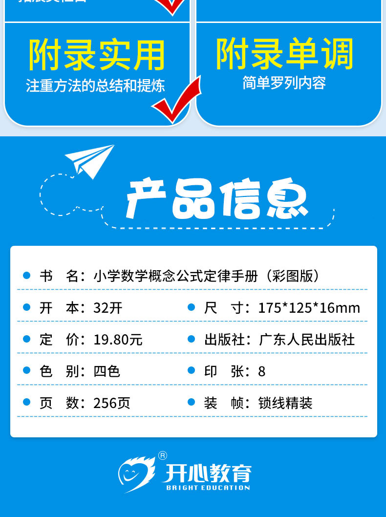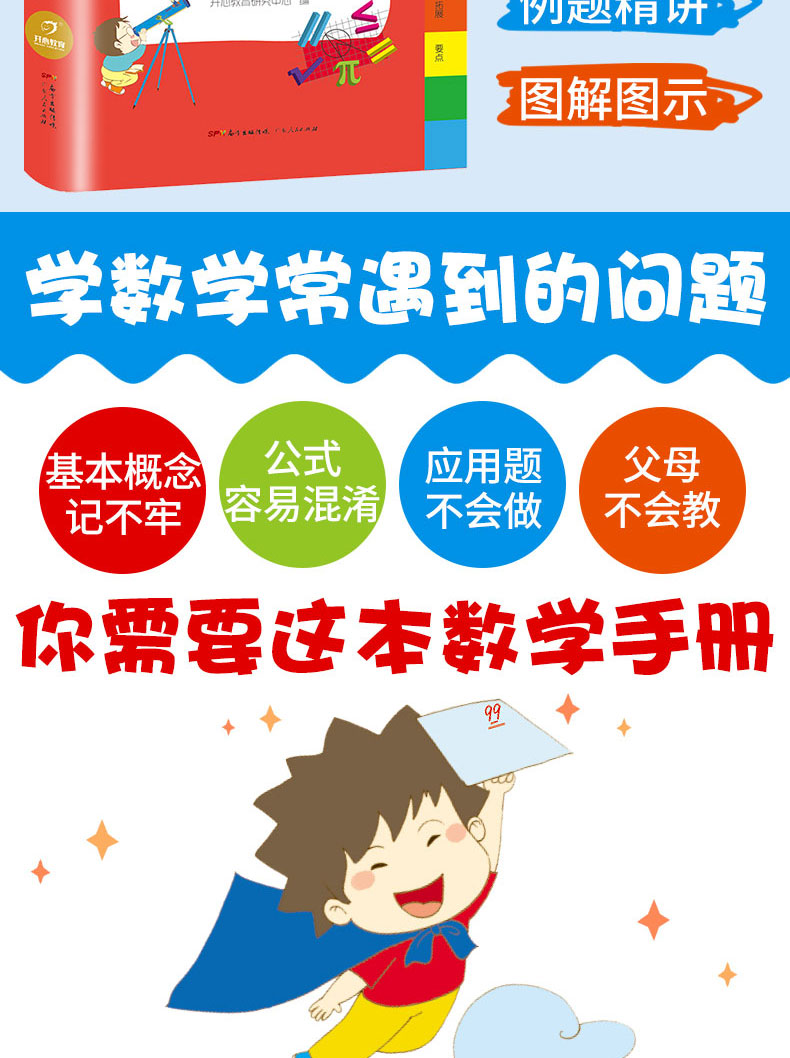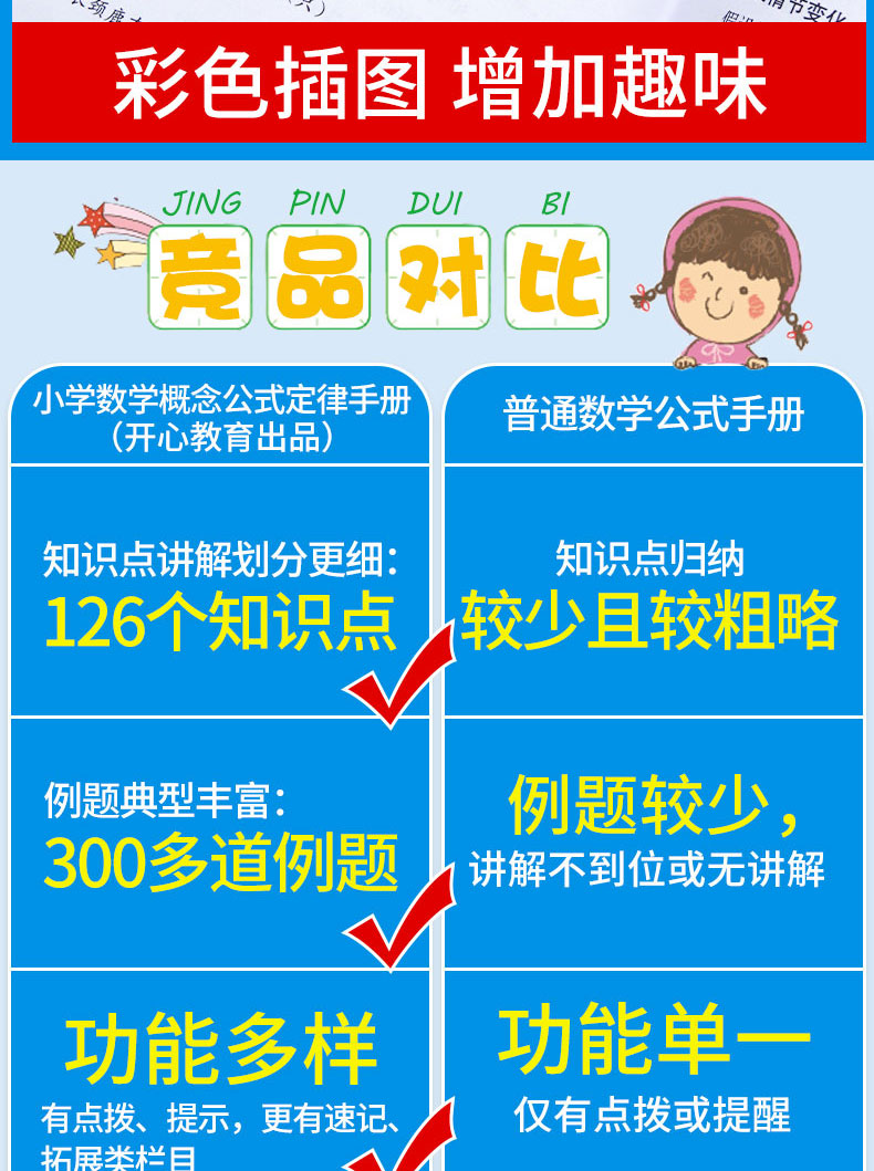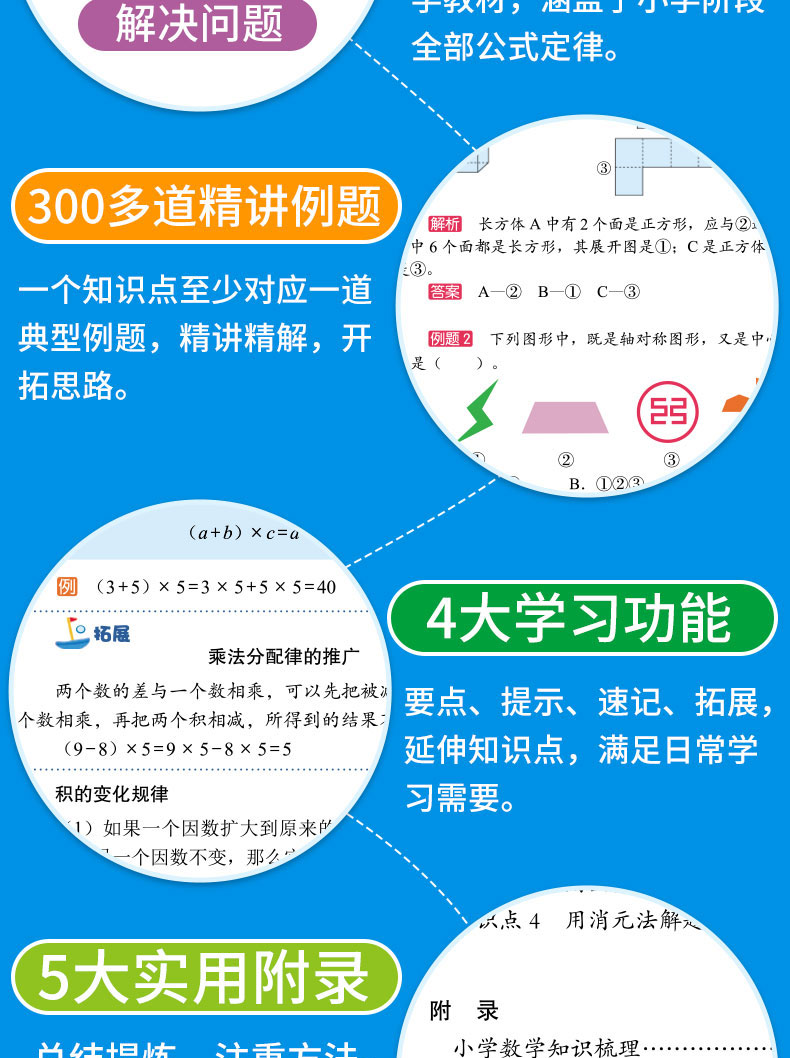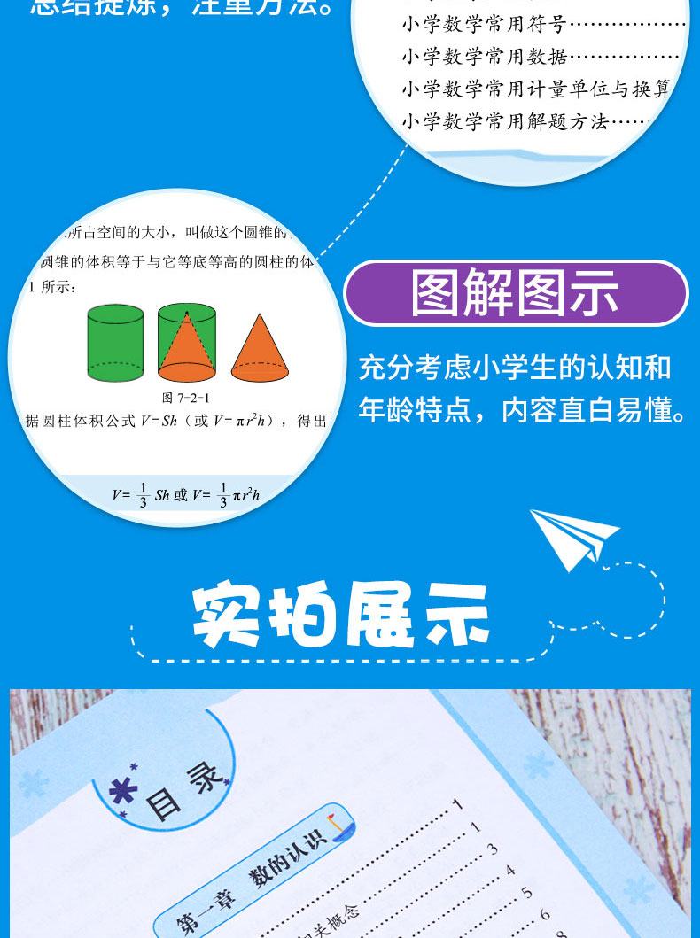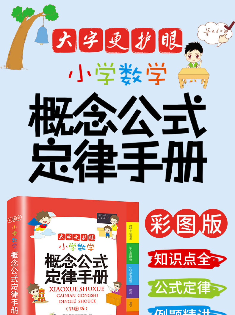 小学生数学公式定律手册彩色版定义大全基础知识定理工具书小学生1--6一至六年级人教北师苏教版适用必备概念集锦辅导书