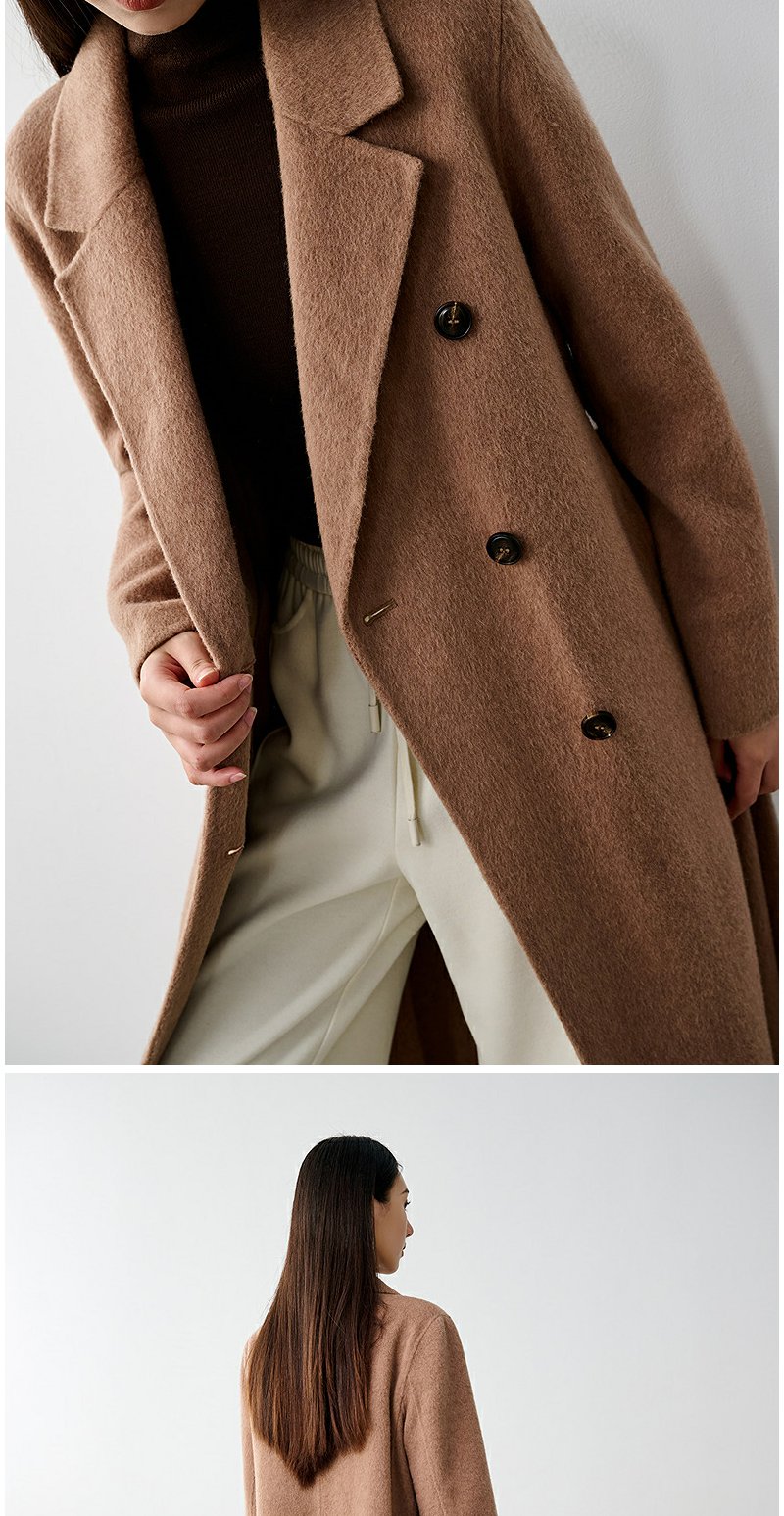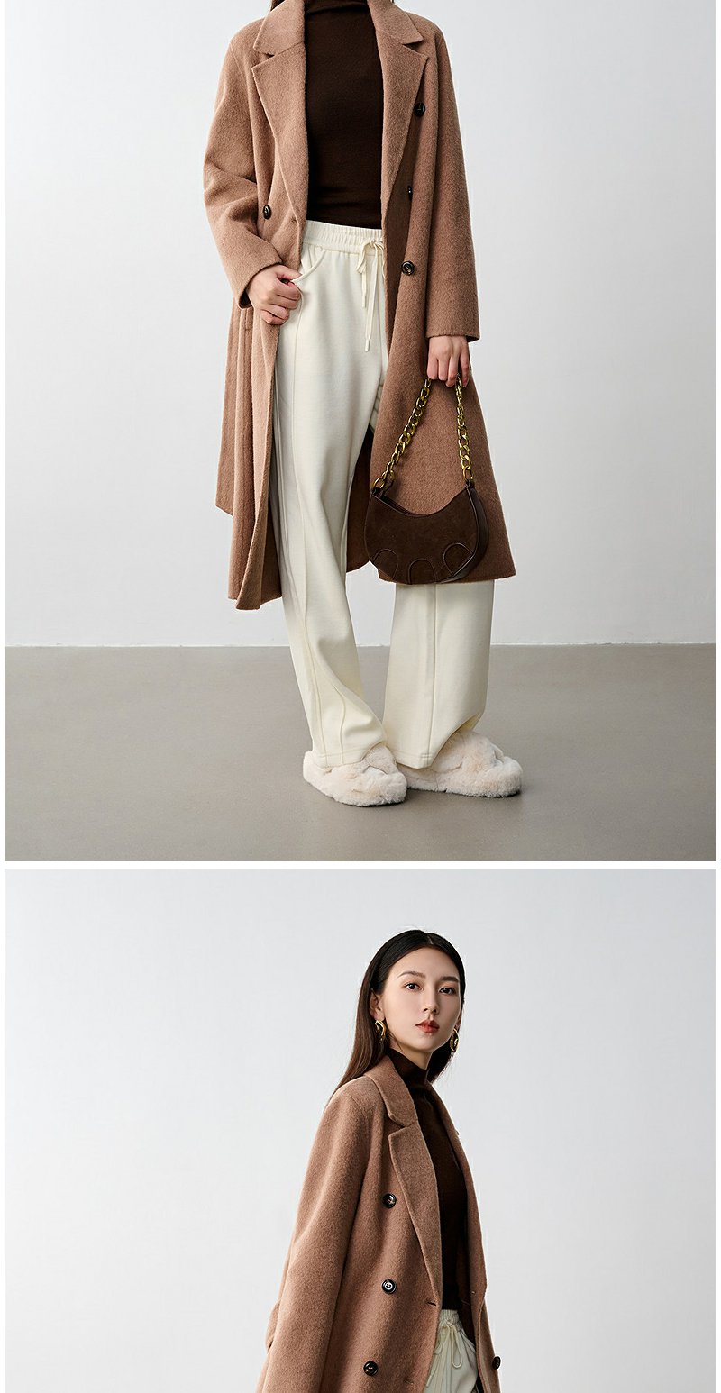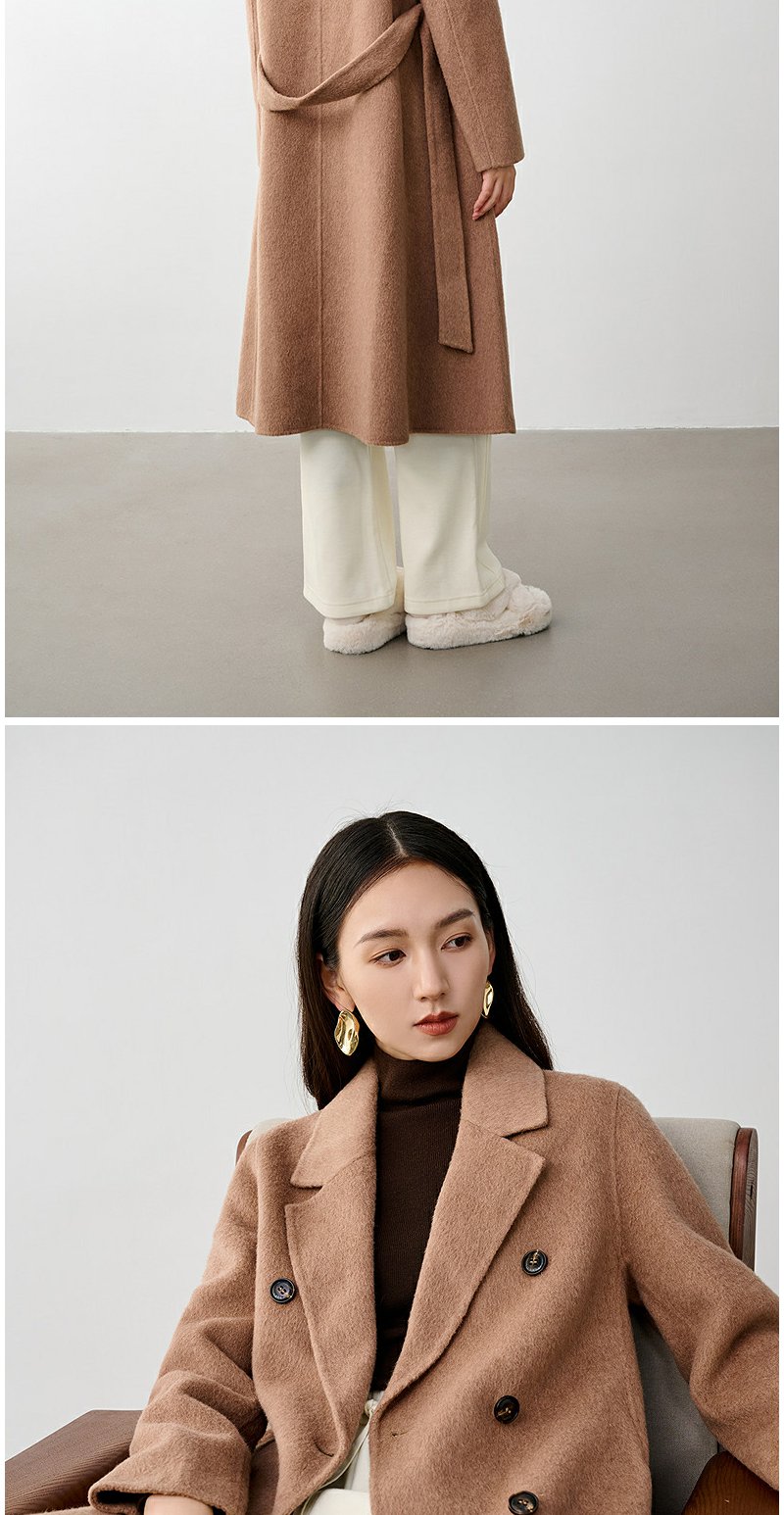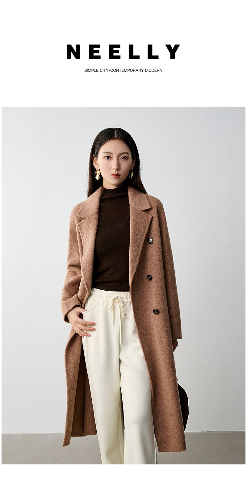 NEELLY纳俪商场同款冬季新款绵羊毛长款双面呢大衣女驼色通勤外套N25104N04591