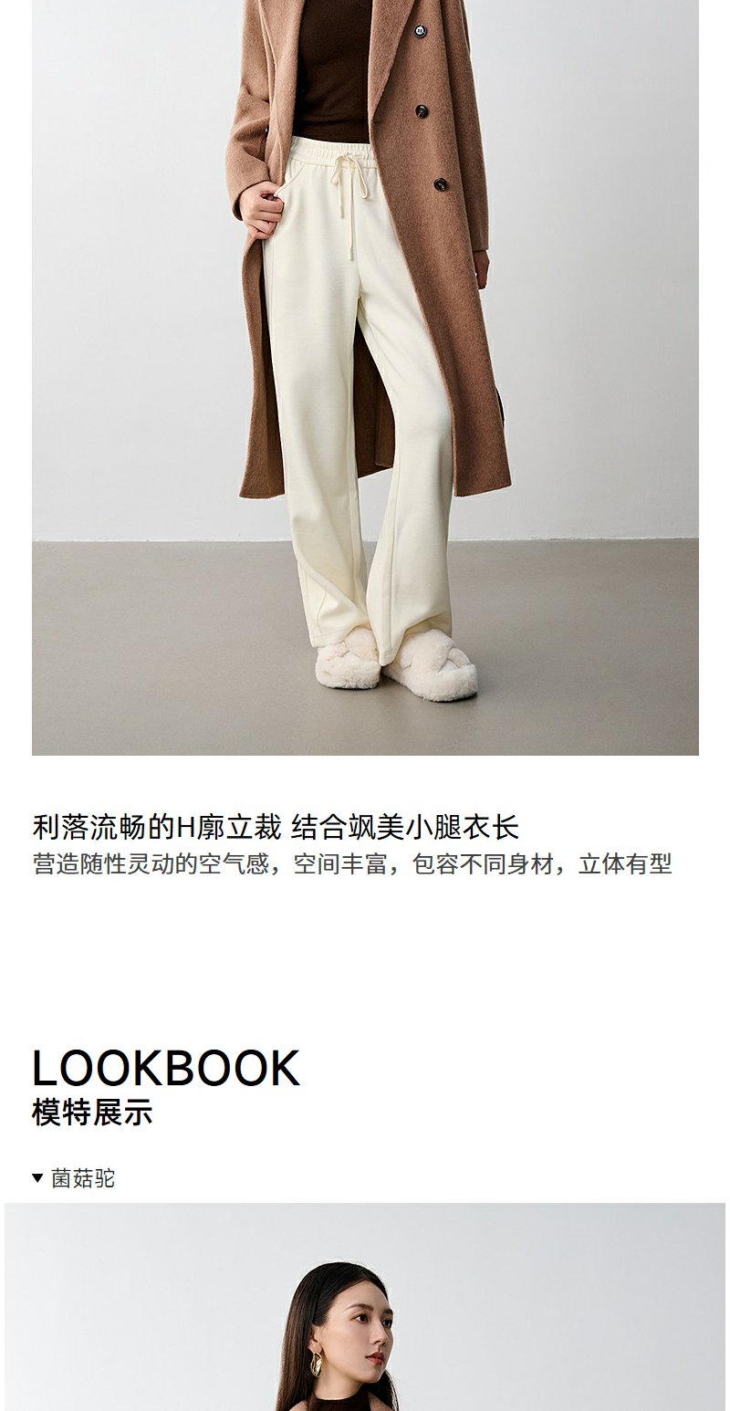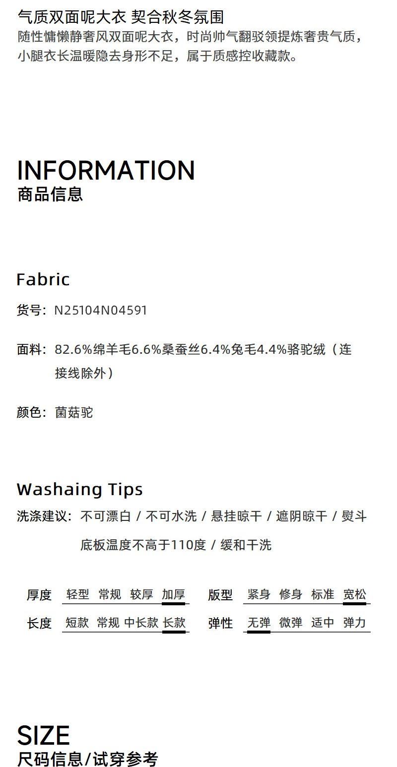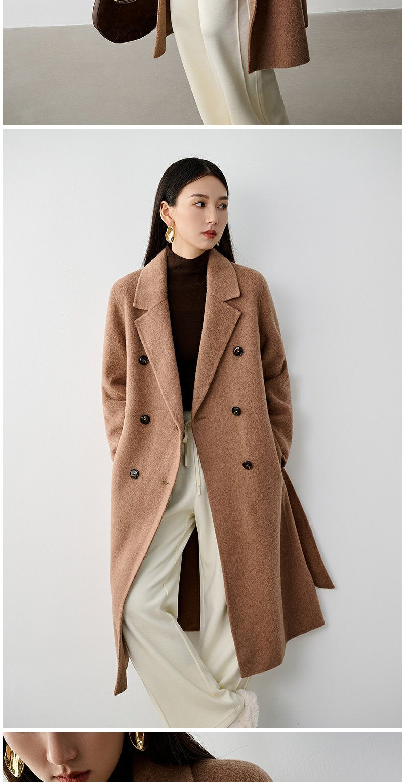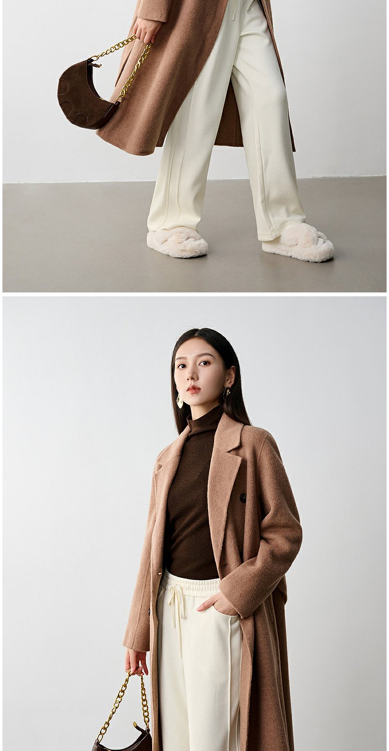 NEELLY纳俪商场同款冬季新款绵羊毛长款双面呢大衣女驼色通勤外套N25104N04591