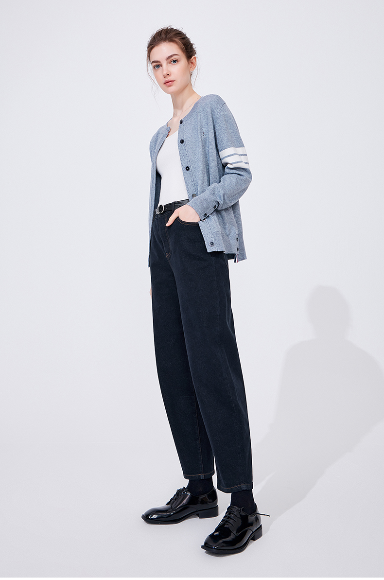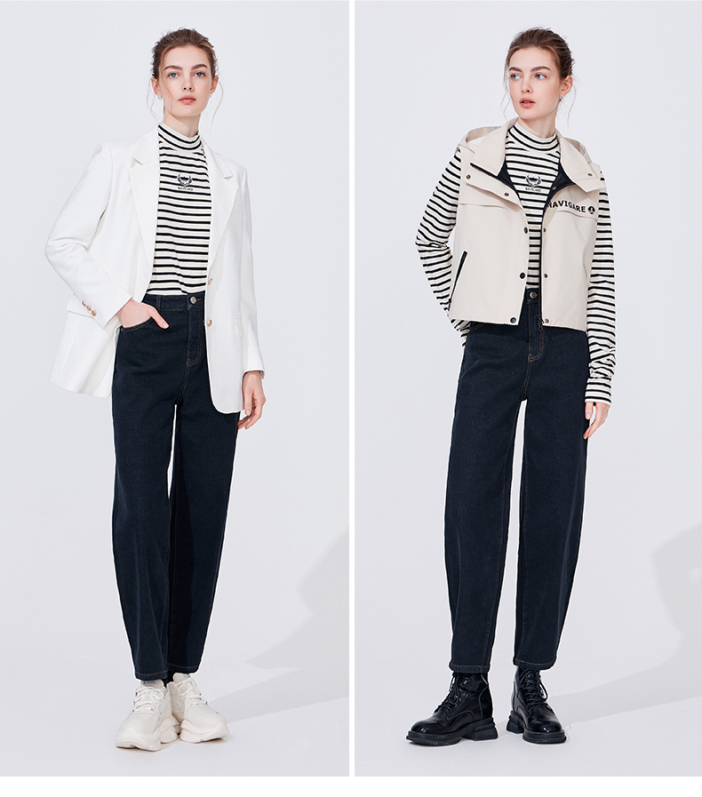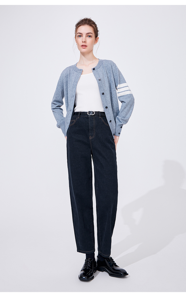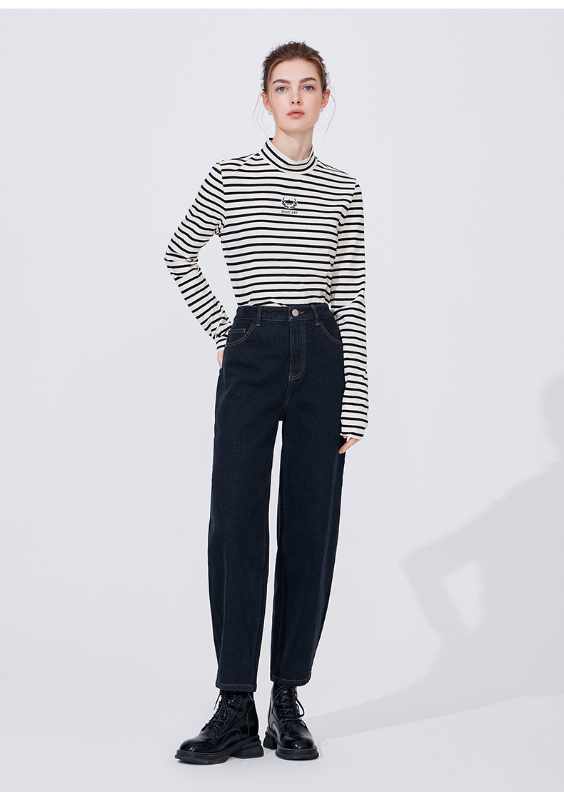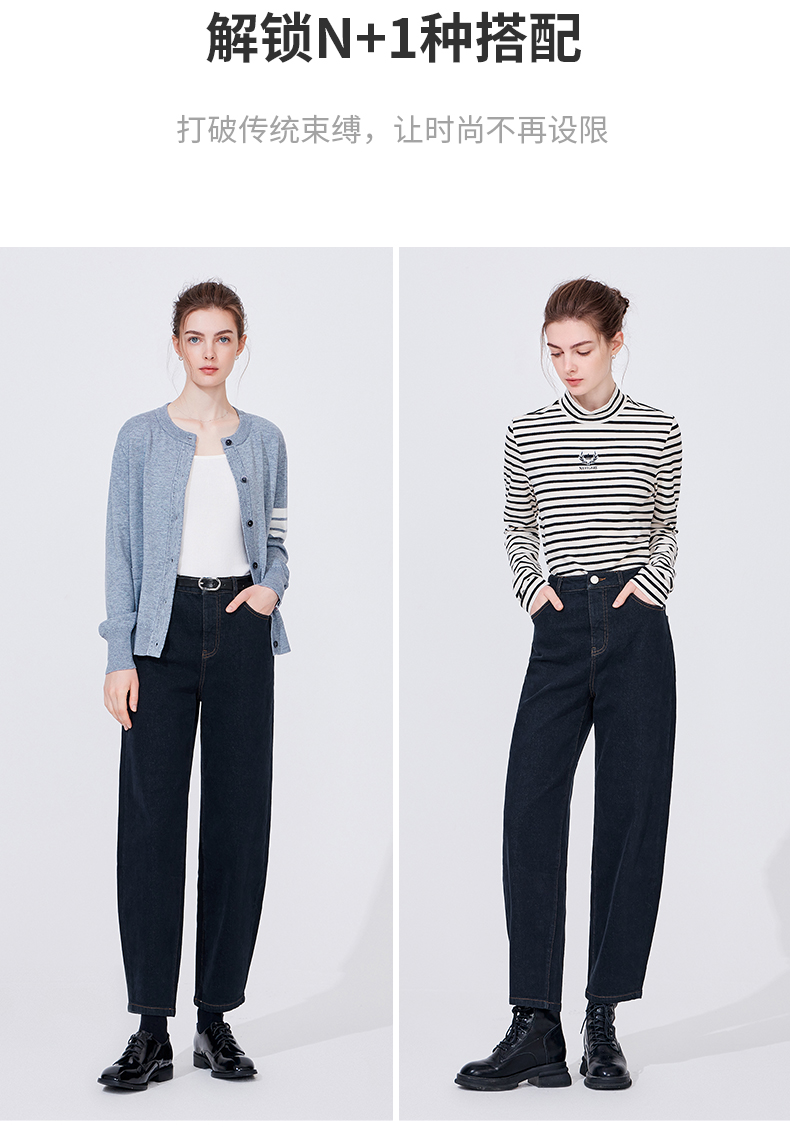 纳维凯尔Navigare意大利小帆船春季磨毛牛仔裤女显瘦九分裤子休闲香蕉裤 2332573533