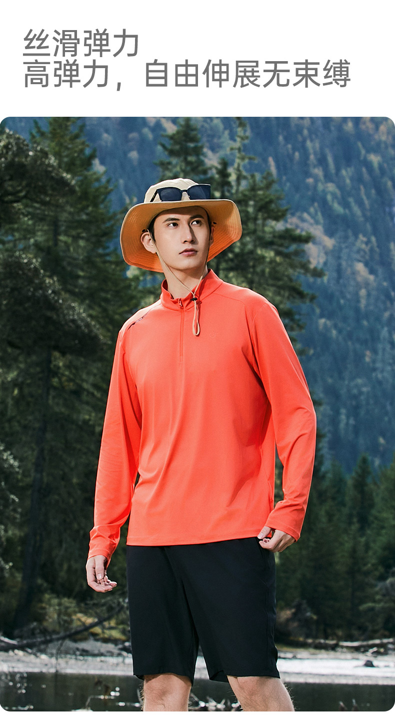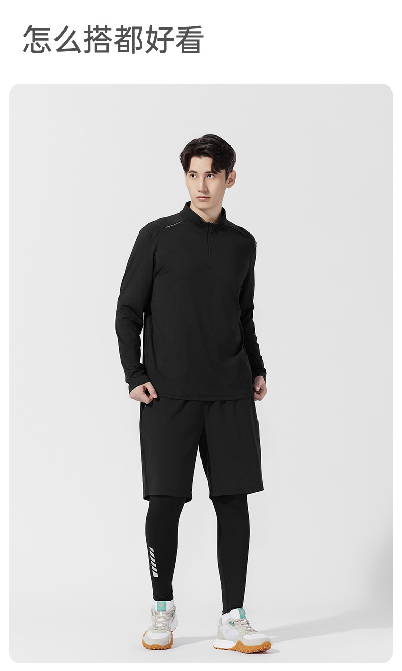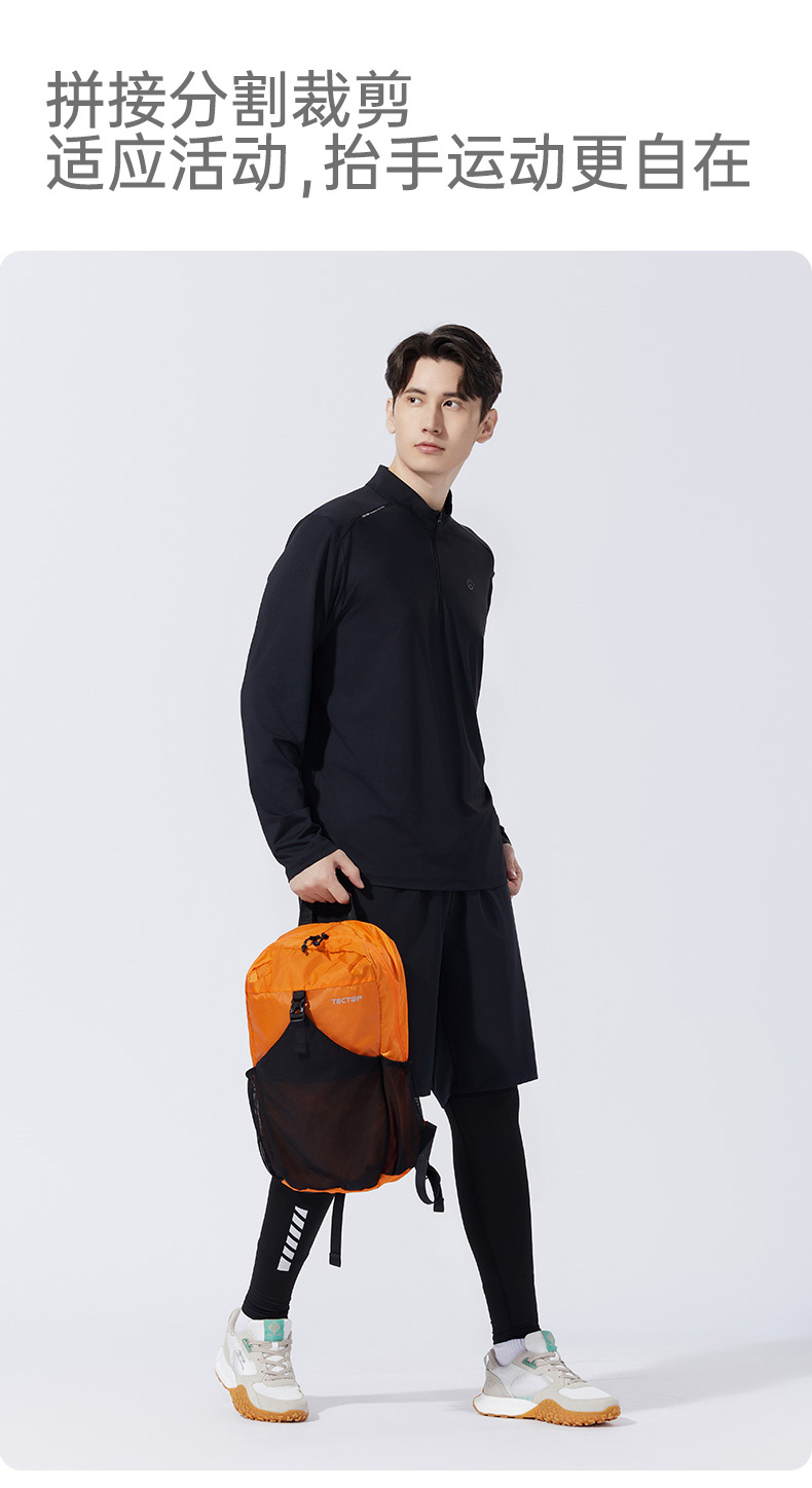 探拓户外半开衫男士快干长袖T恤春季跑步长袖健身上衣健身训练服