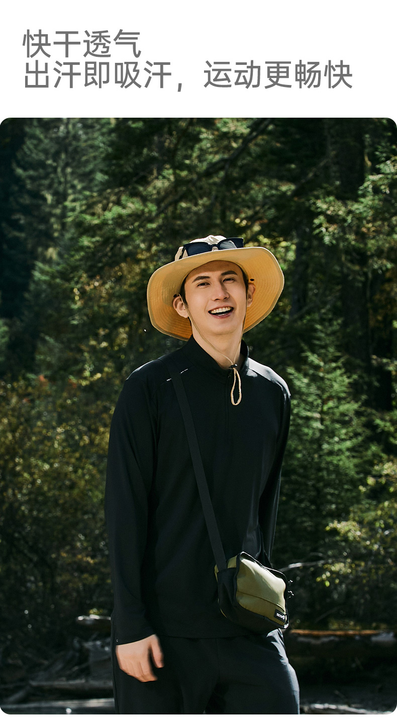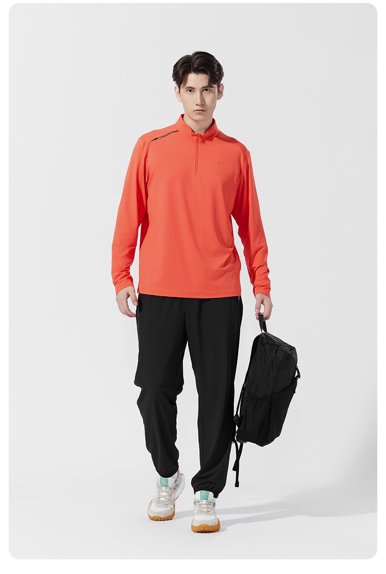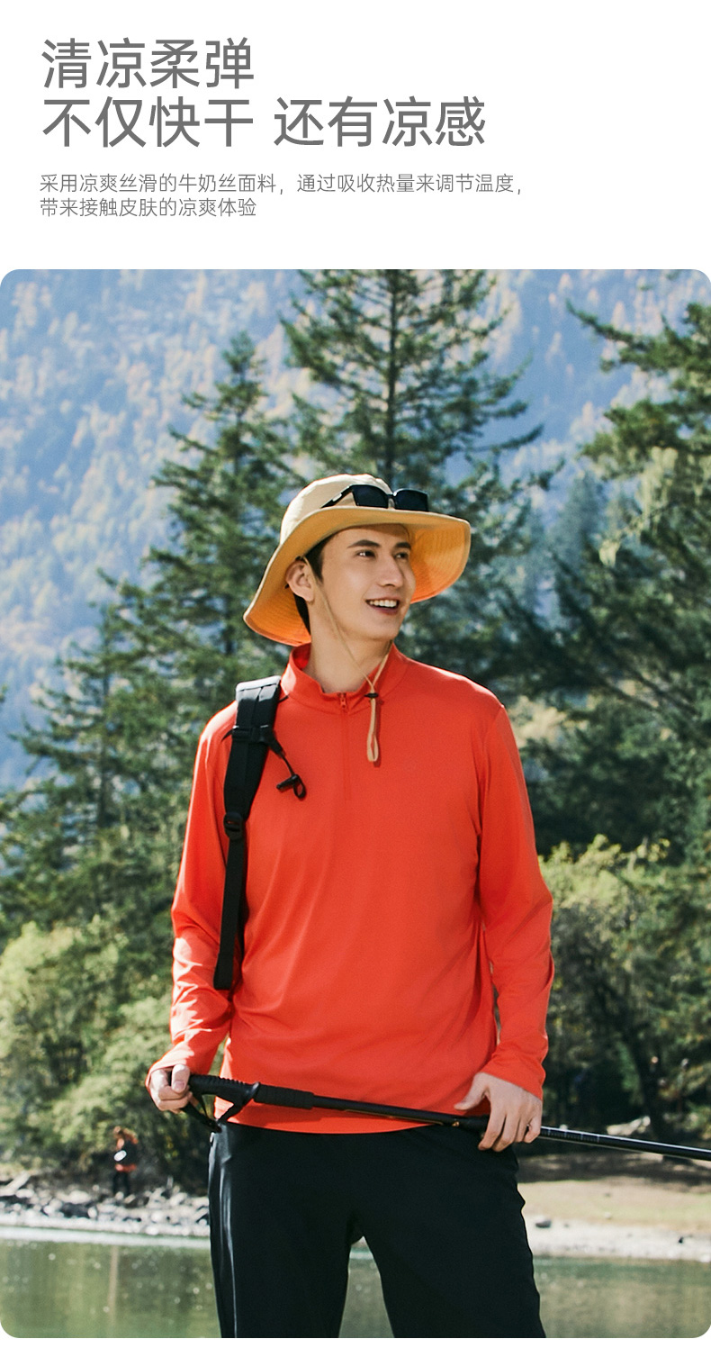 探拓户外半开衫男士快干长袖T恤春季跑步长袖健身上衣健身训练服