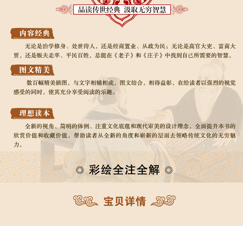 【正版】绘全注全译全解-老子·庄子(超值全彩珍藏版)老子庄子选庄子全书原文注释译文解析道德经国学经典 文白对照 中国古籍