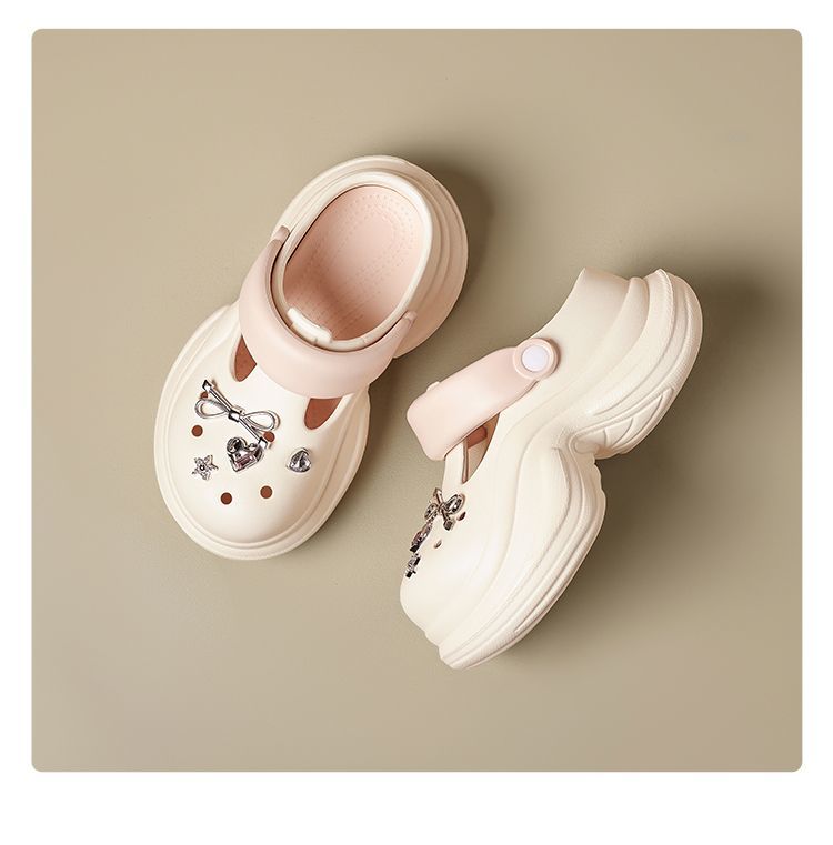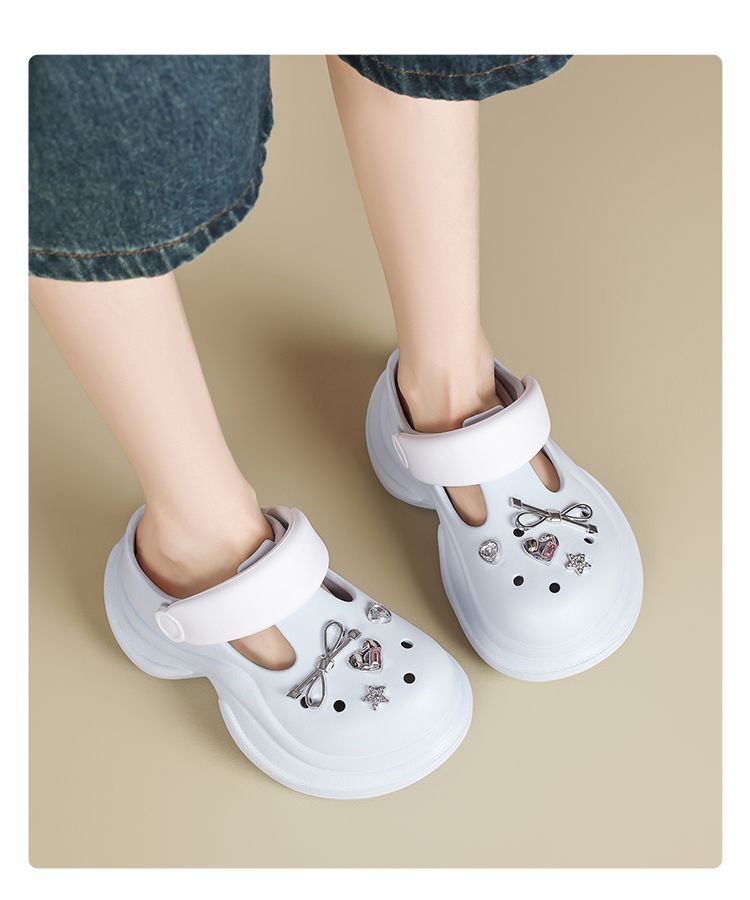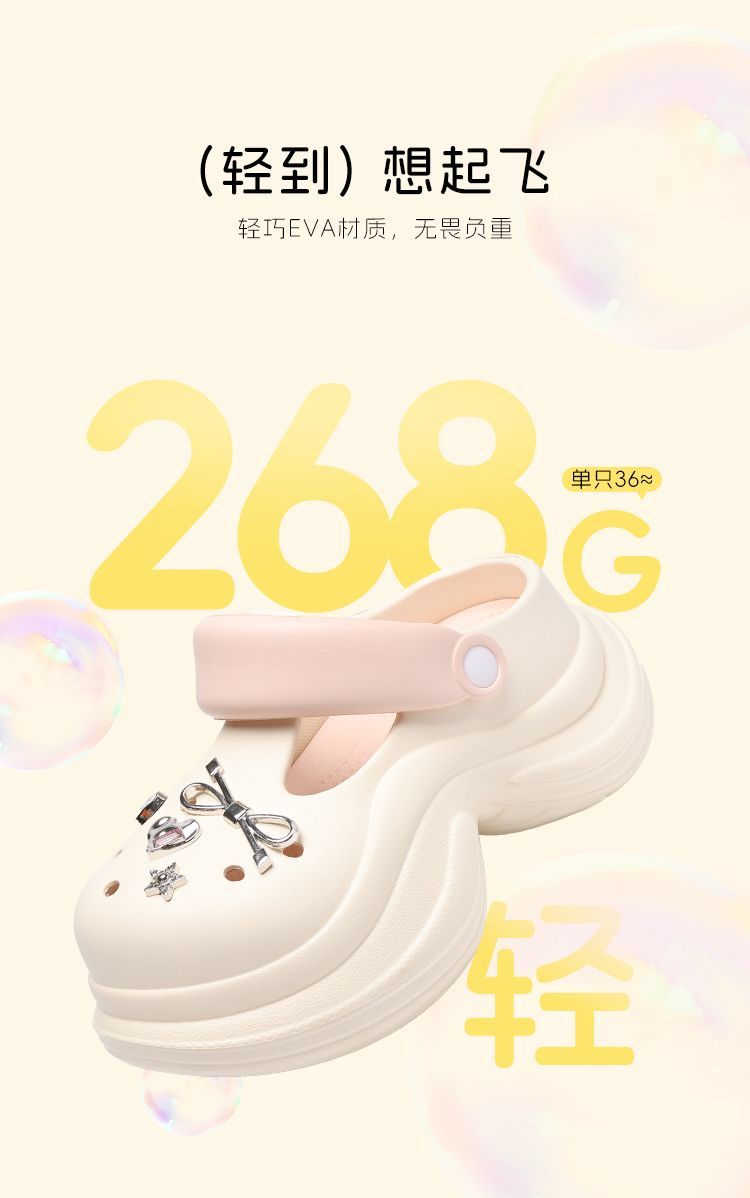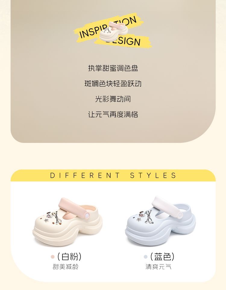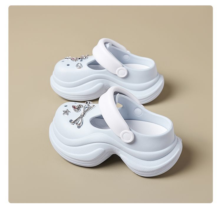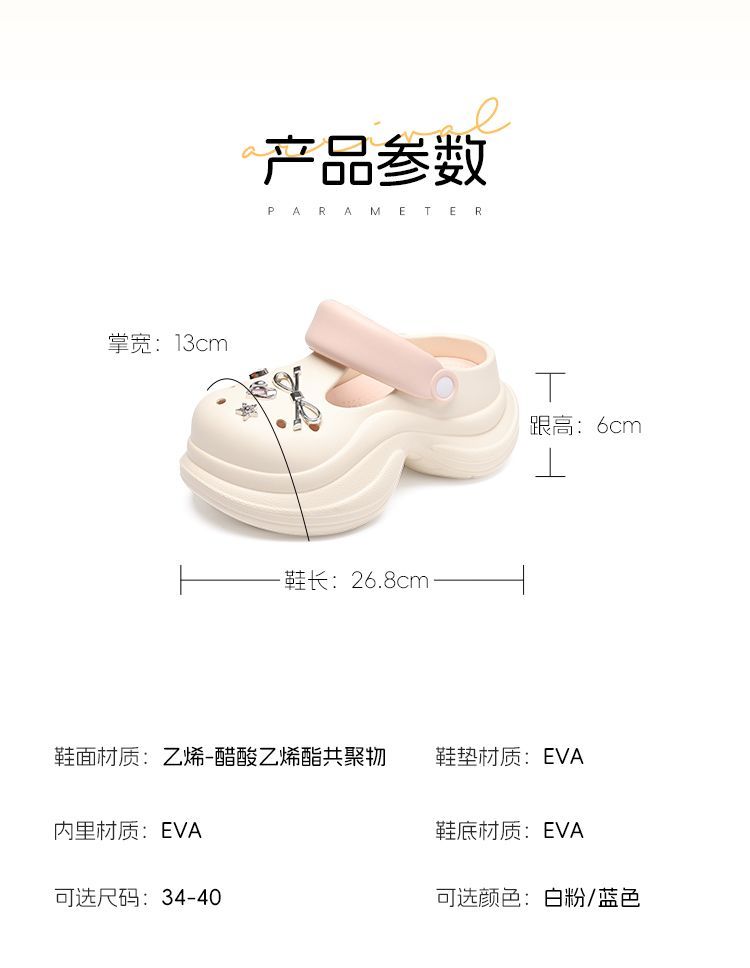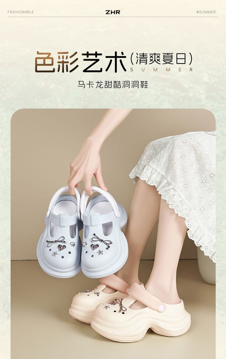 ZHR则则蓝色户外休闲拖鞋厚底增高6cm轻便舒适手工DIY百搭洞洞鞋