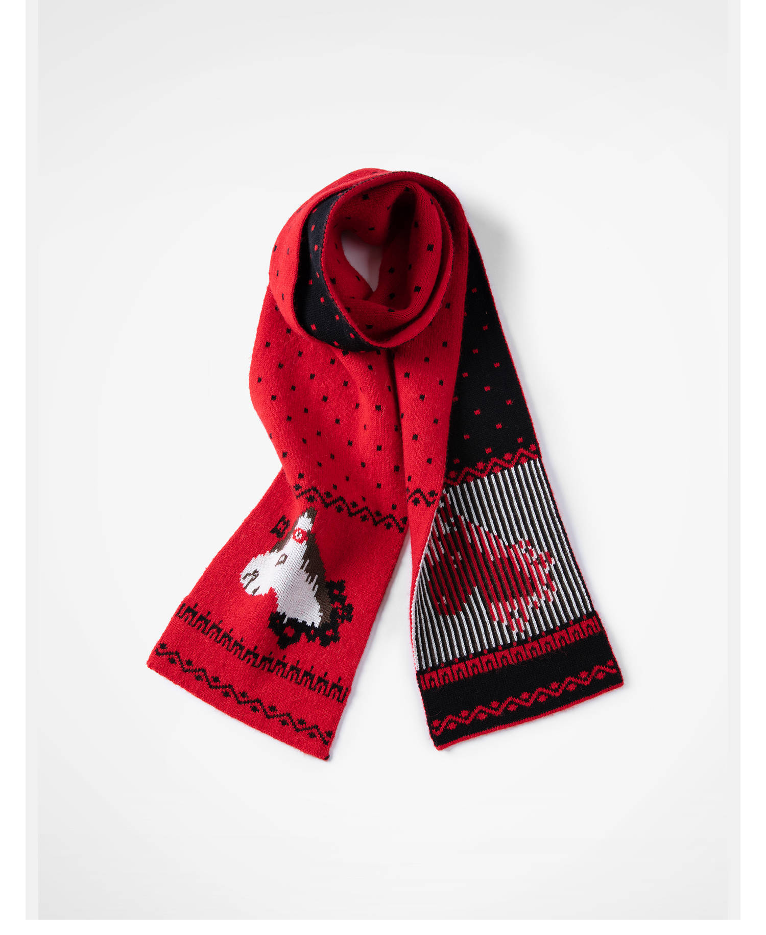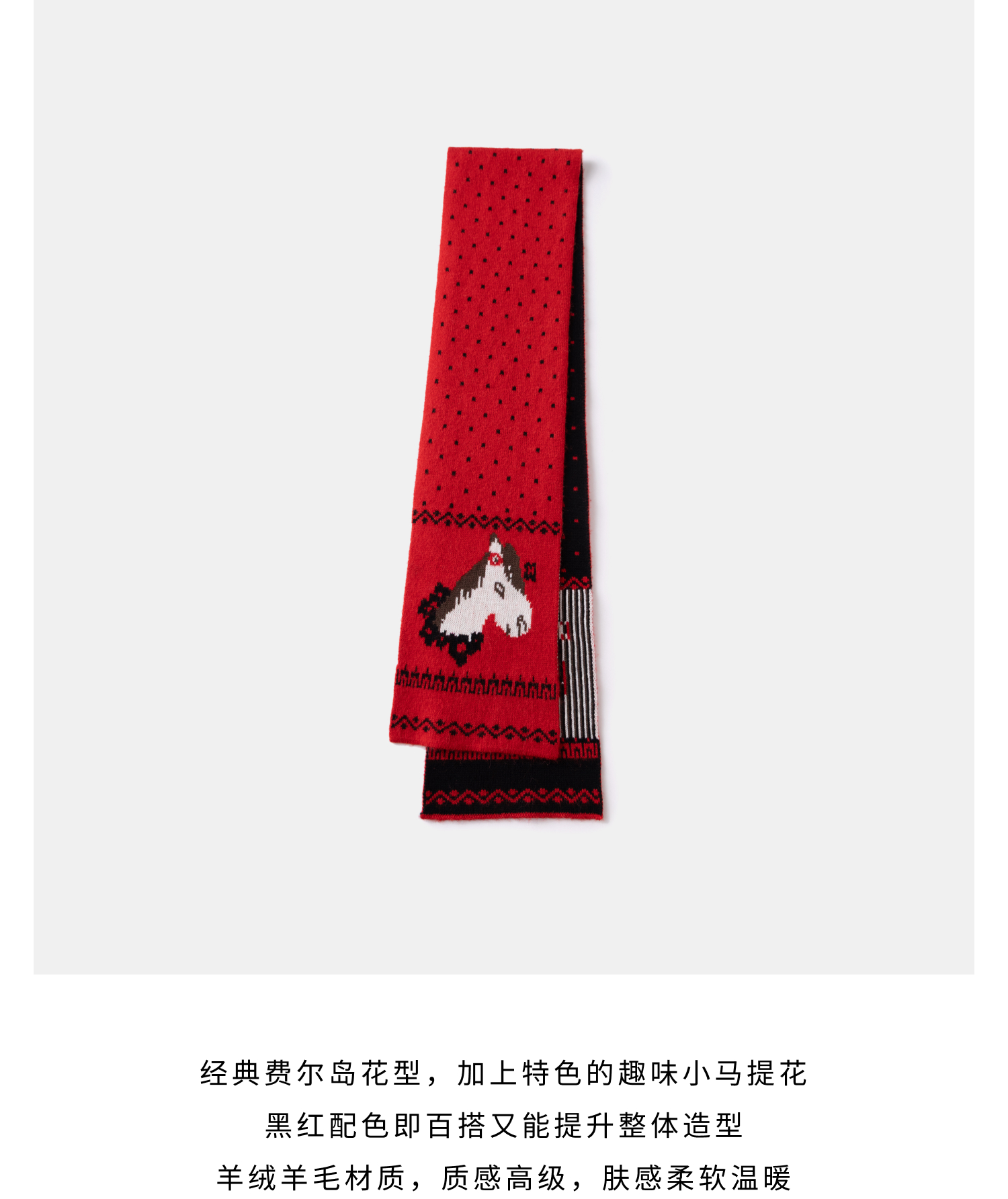 HERLIAN 2025冬季新款红色小马提花针织围巾