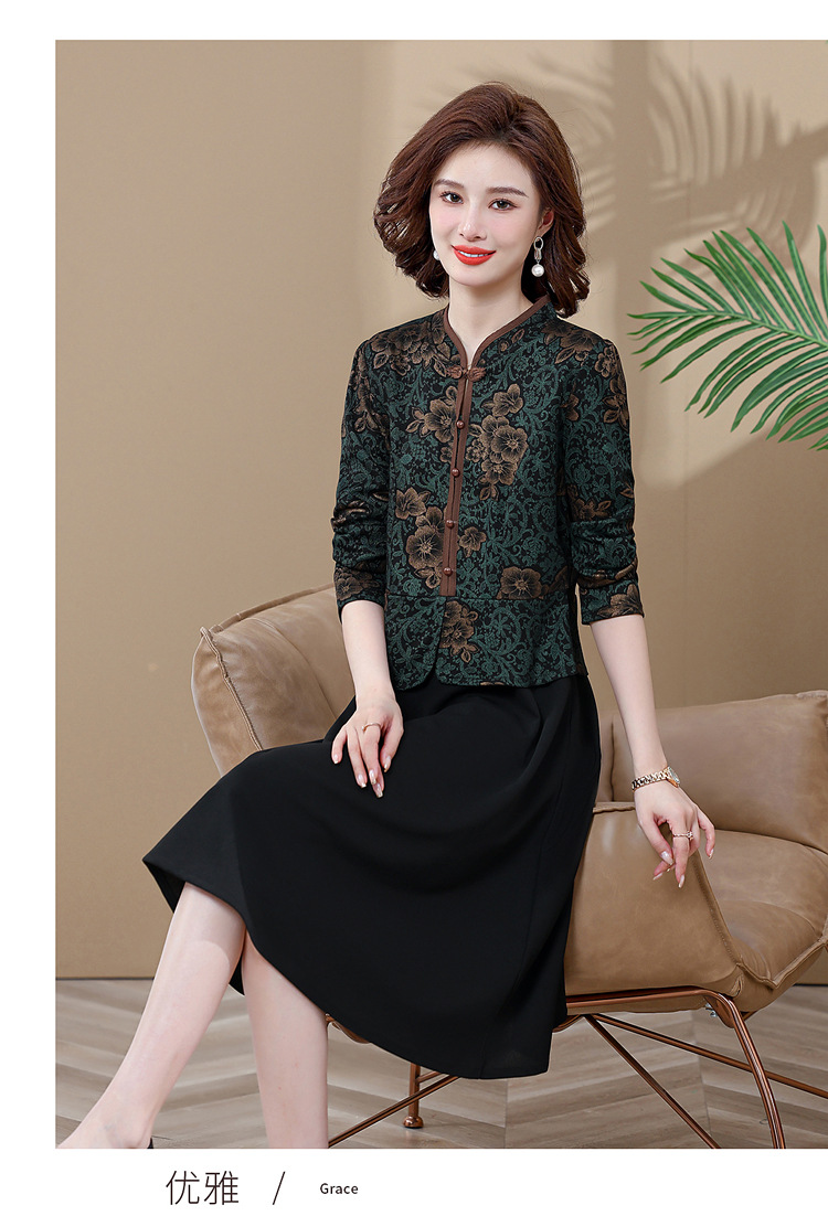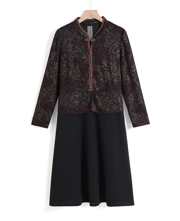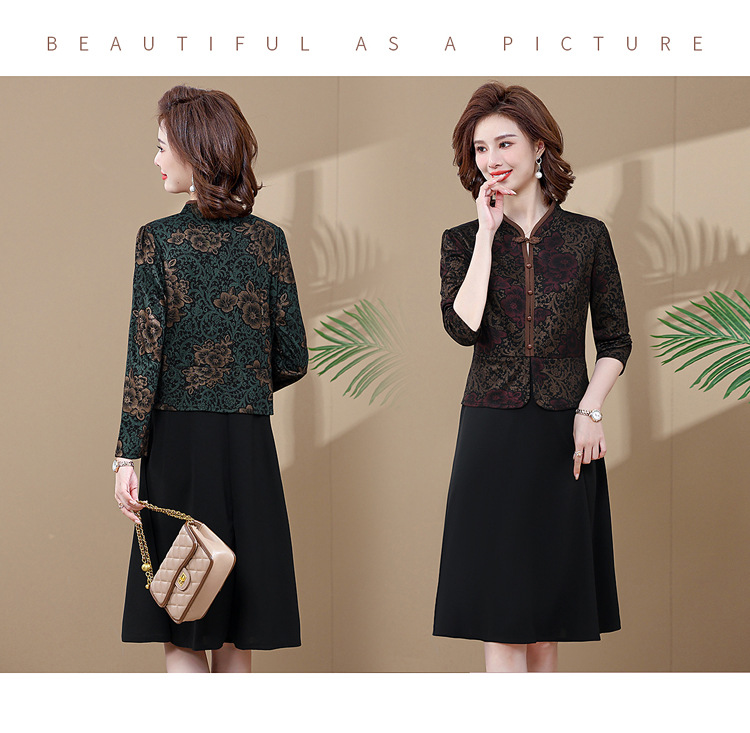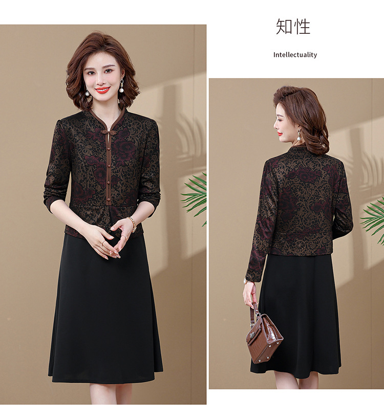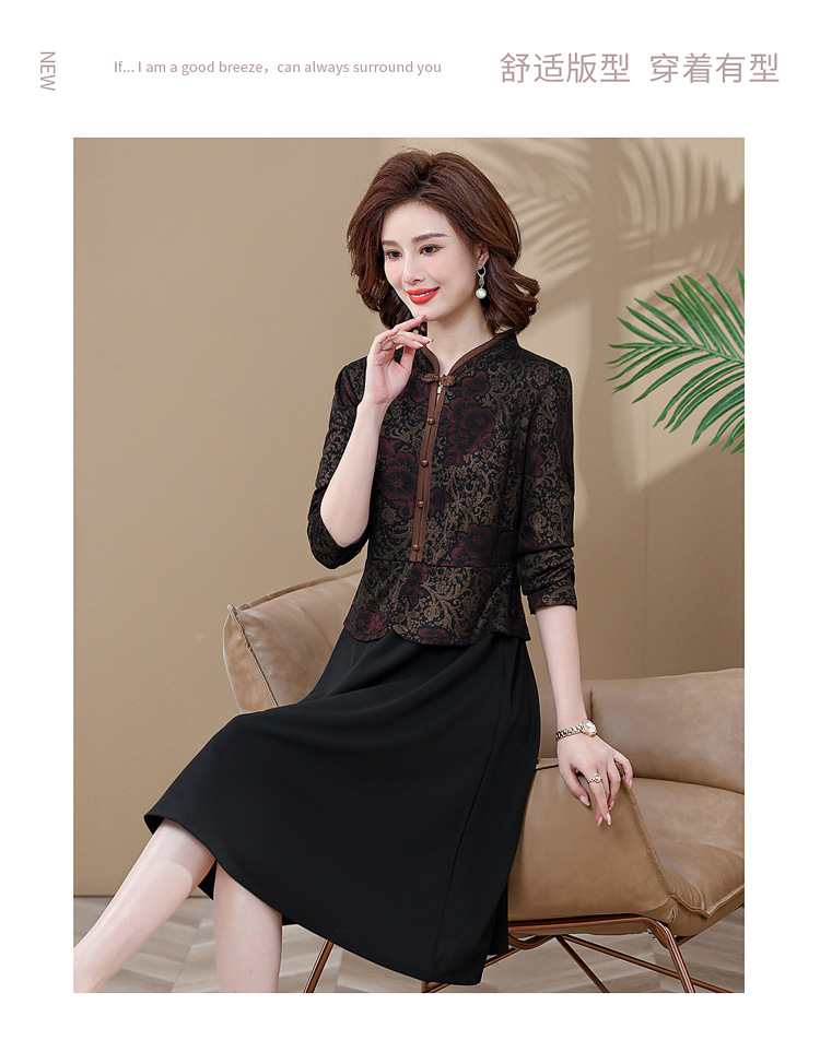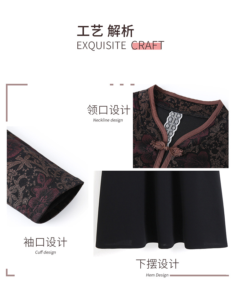 妈妈装新款时尚长袖连衣裙,中老年人女春秋装复古中国风假两件裙子TYWF-A091DBB2361