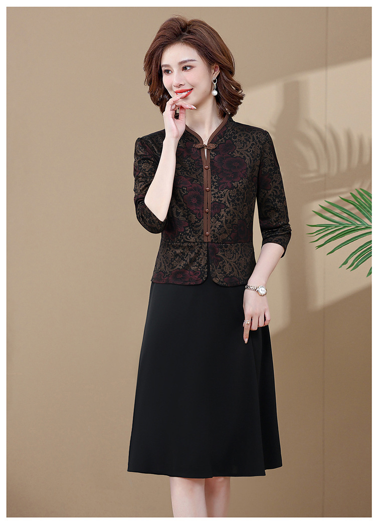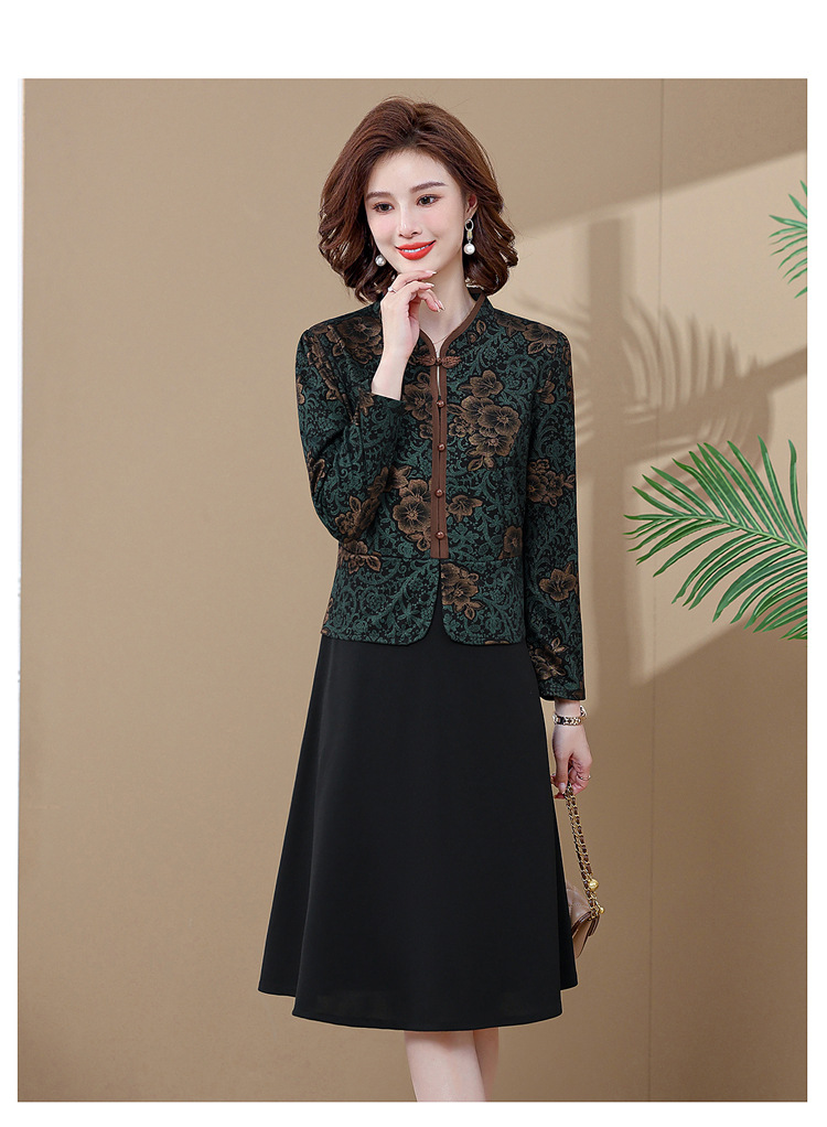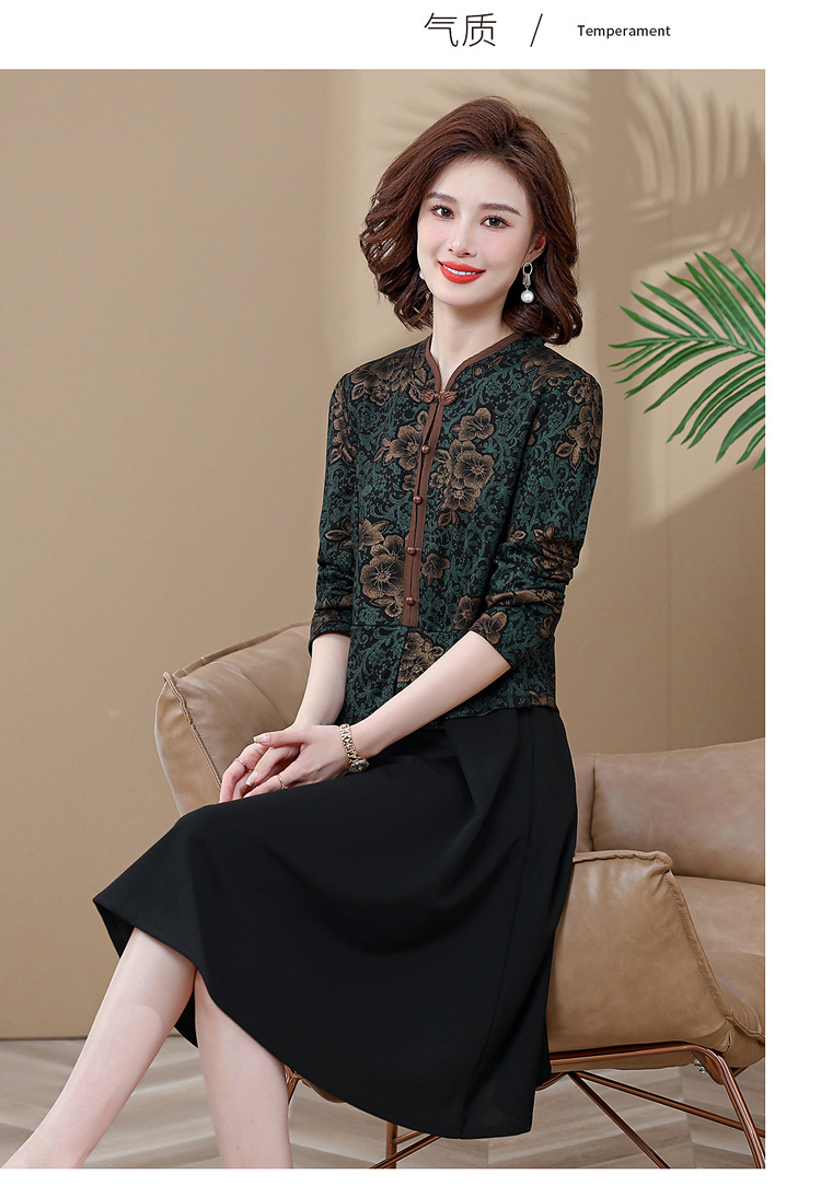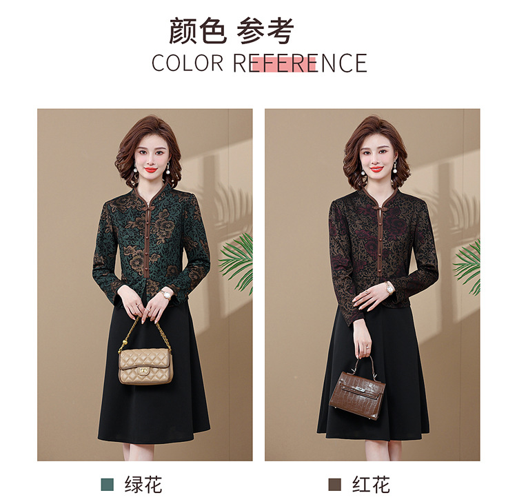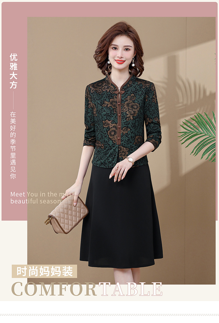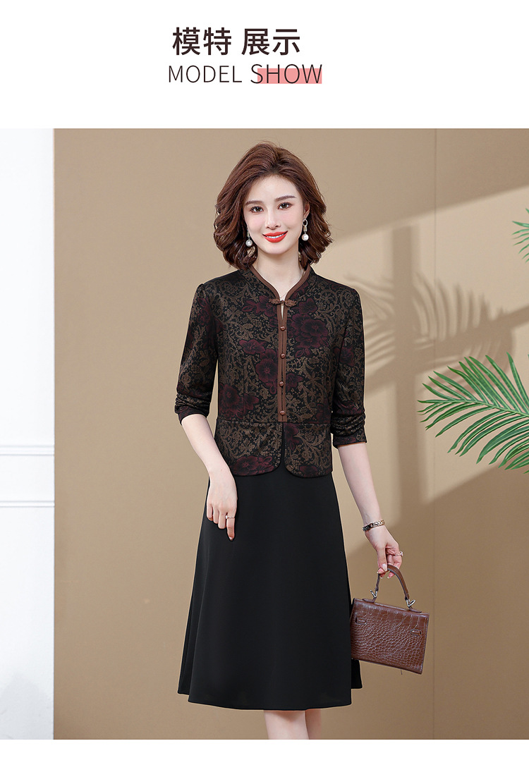 妈妈装新款时尚长袖连衣裙,中老年人女春秋装复古中国风假两件裙子TYWF-A091DBB2361