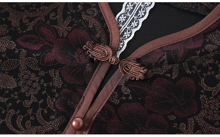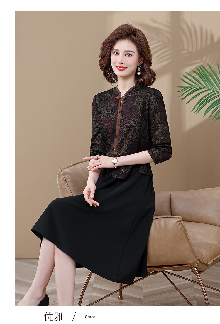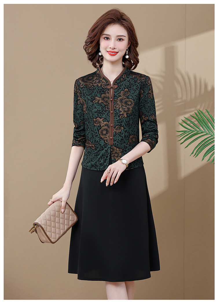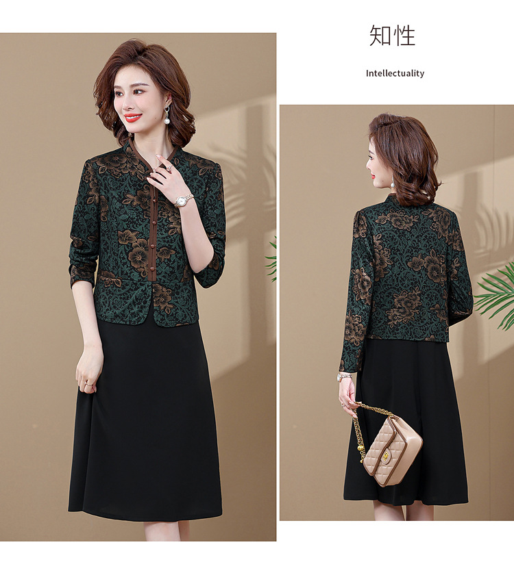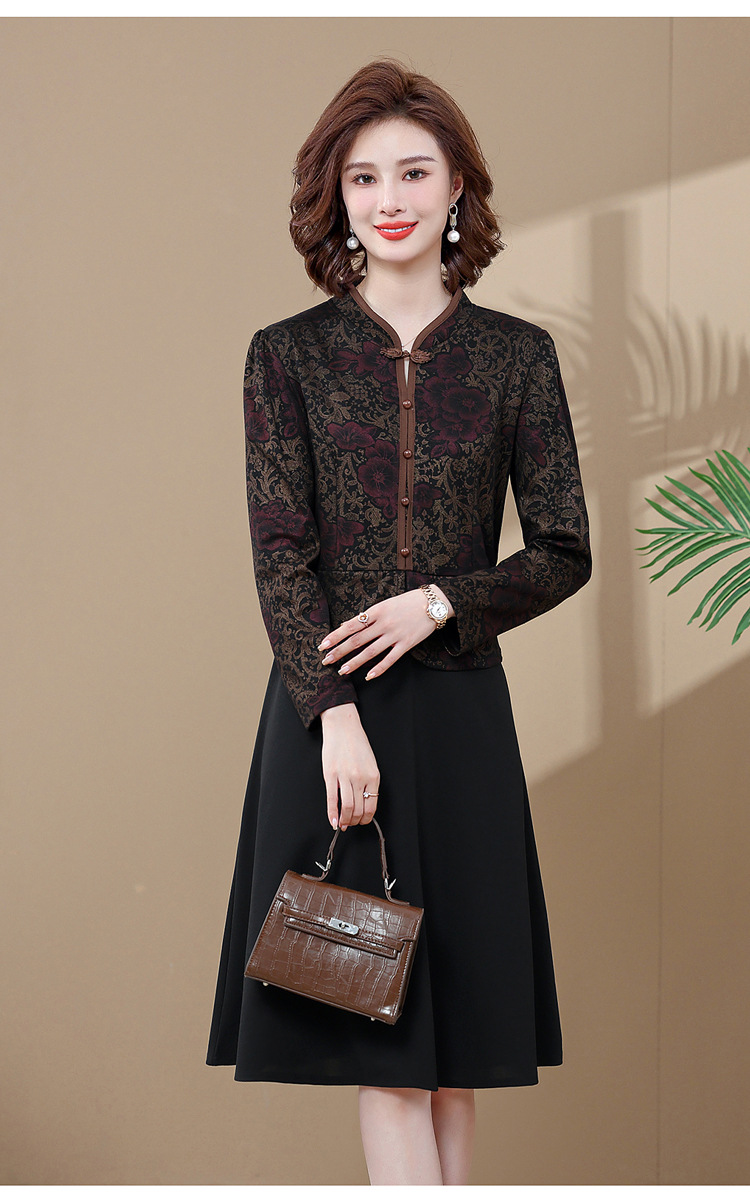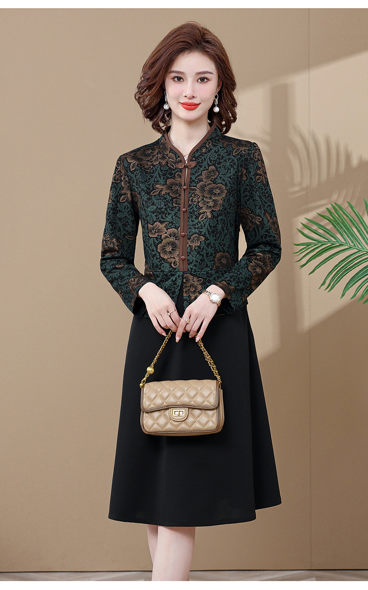 妈妈装新款时尚长袖连衣裙,中老年人女春秋装复古中国风假两件裙子TYWF-A091DBB2361