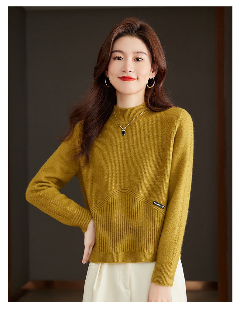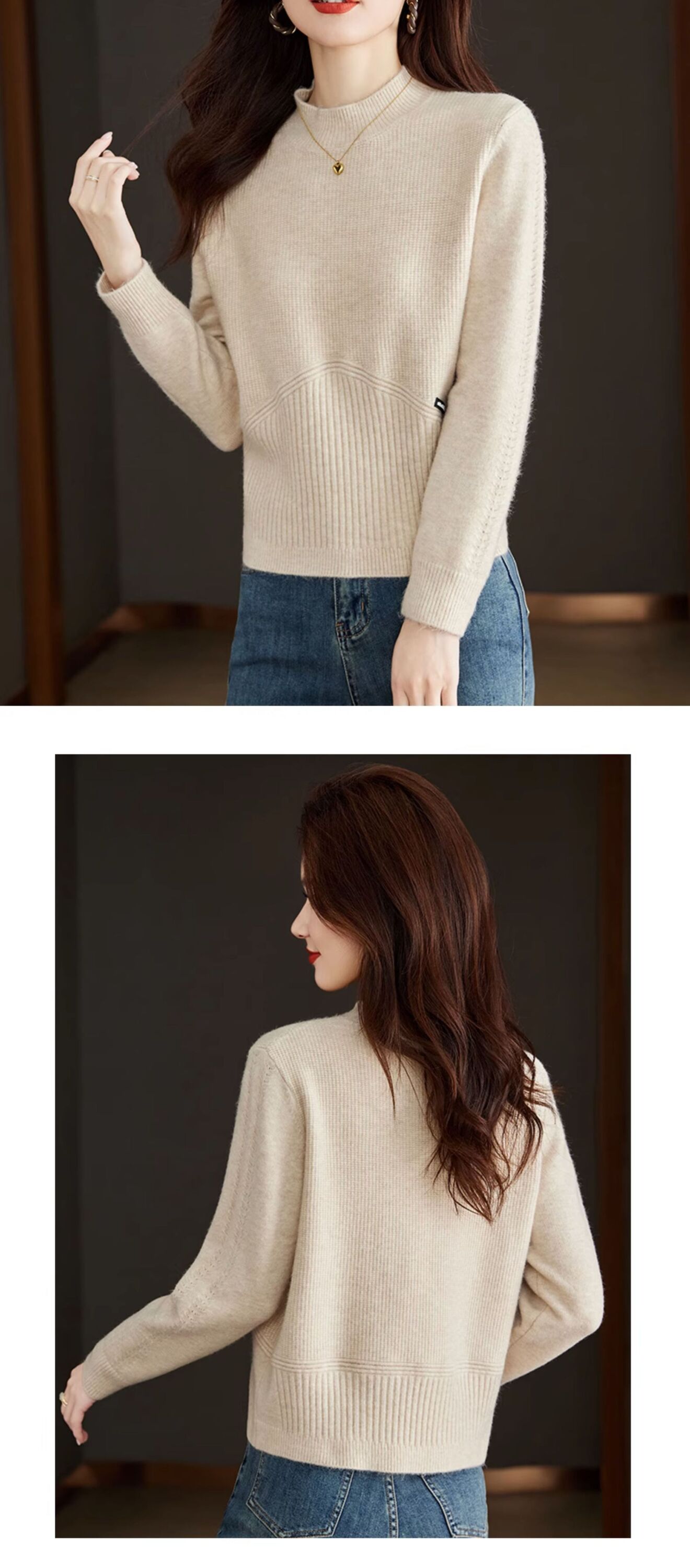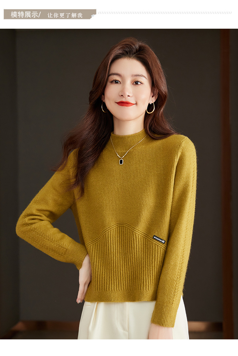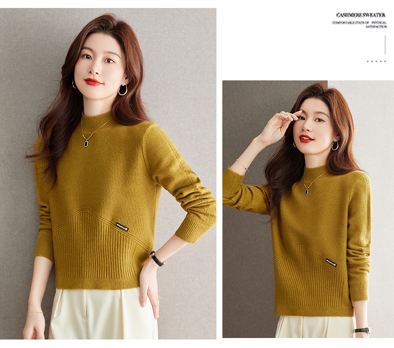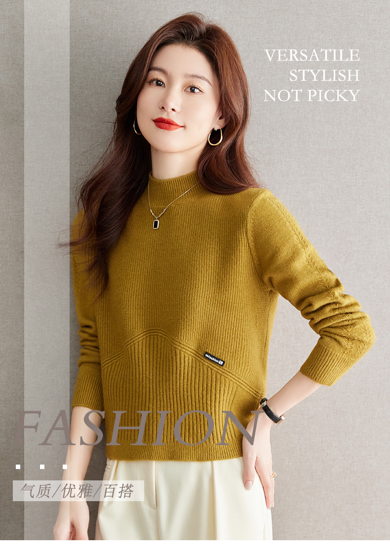 秋冬新款,半高领高腰毛衣女短款宽松小个子针织衫上衣套头衫CC-J259