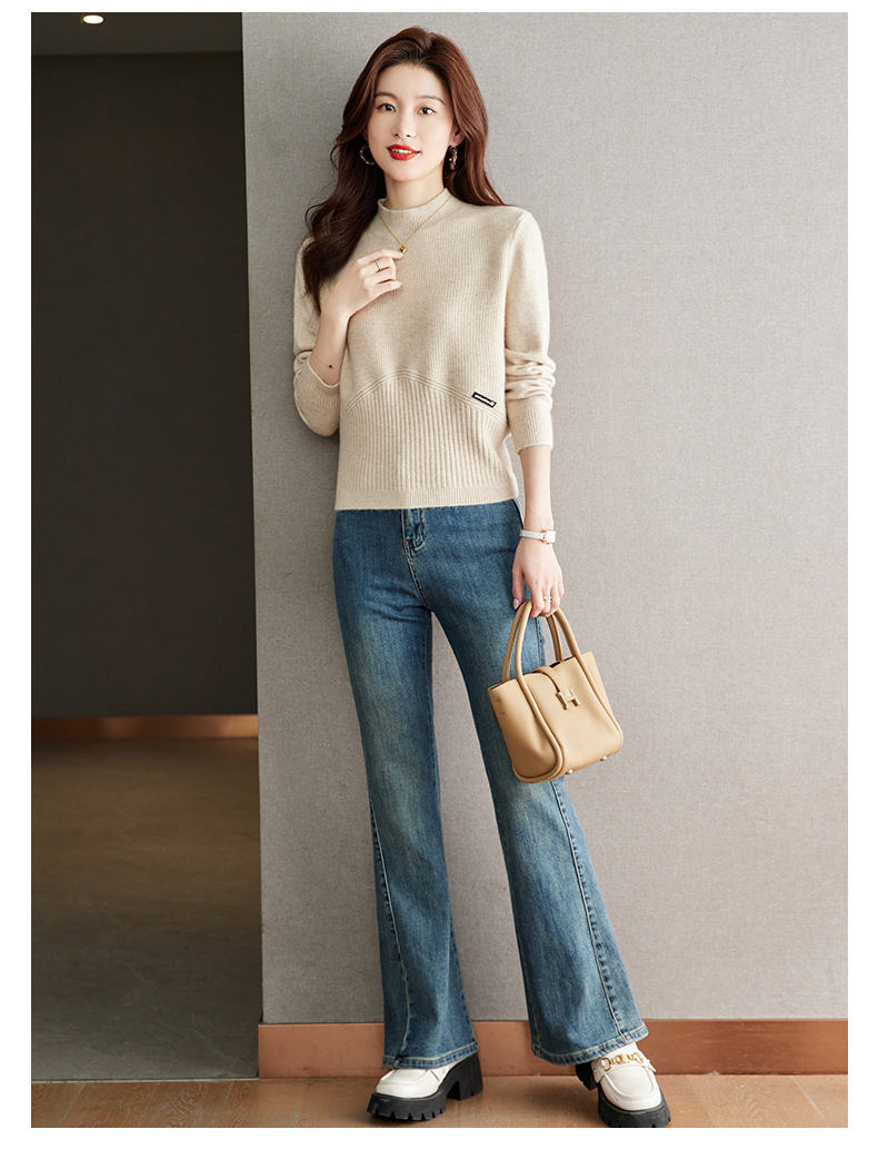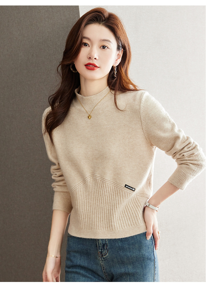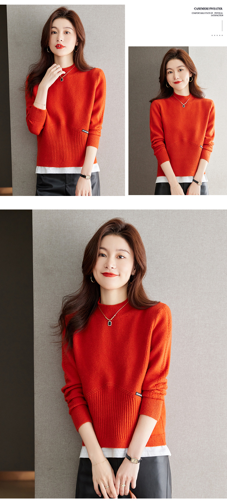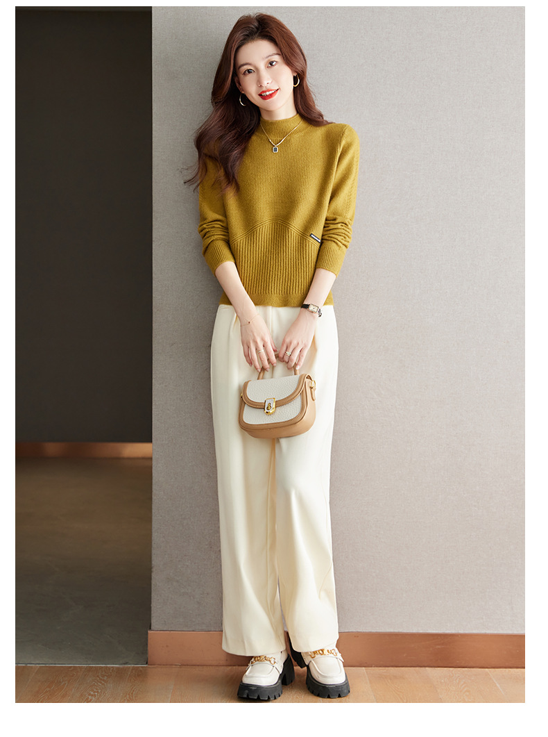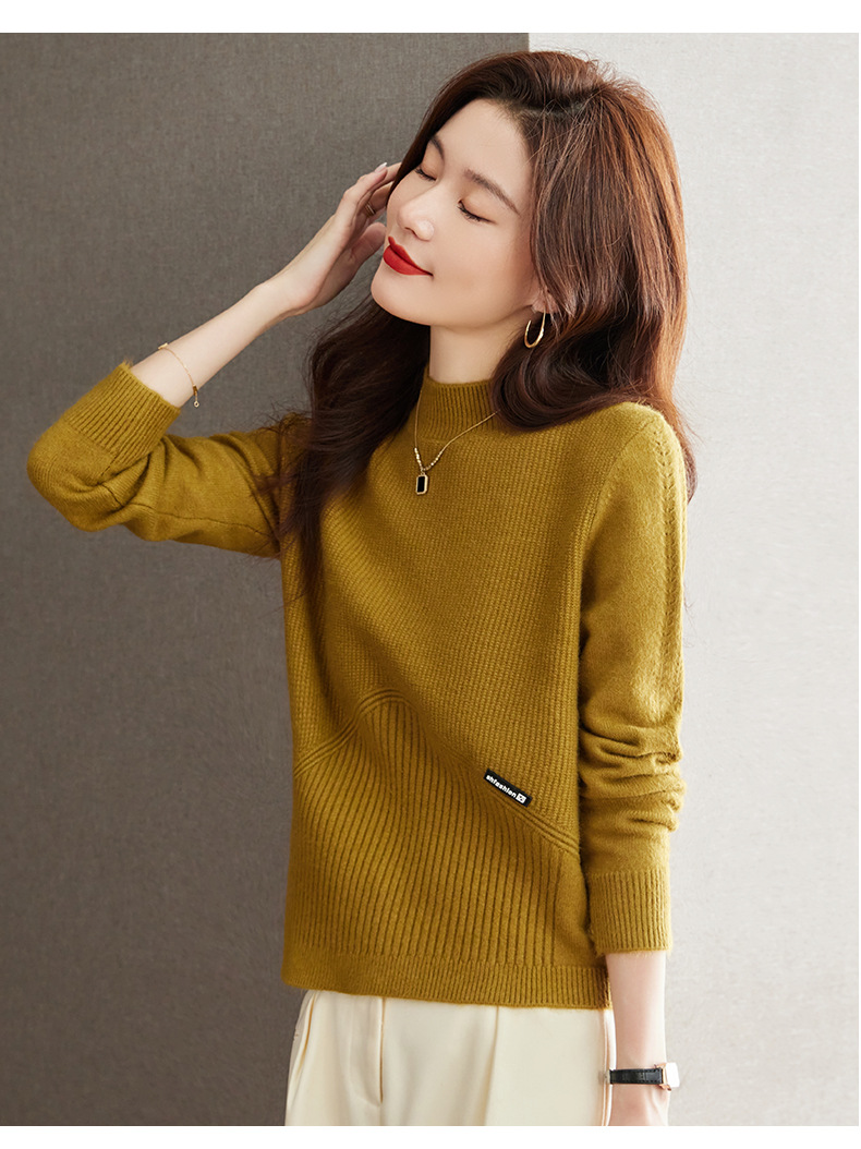秋冬新款,半高领高腰毛衣女短款宽松小个子针织衫上衣套头衫CC-J259