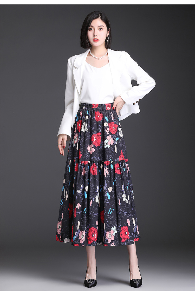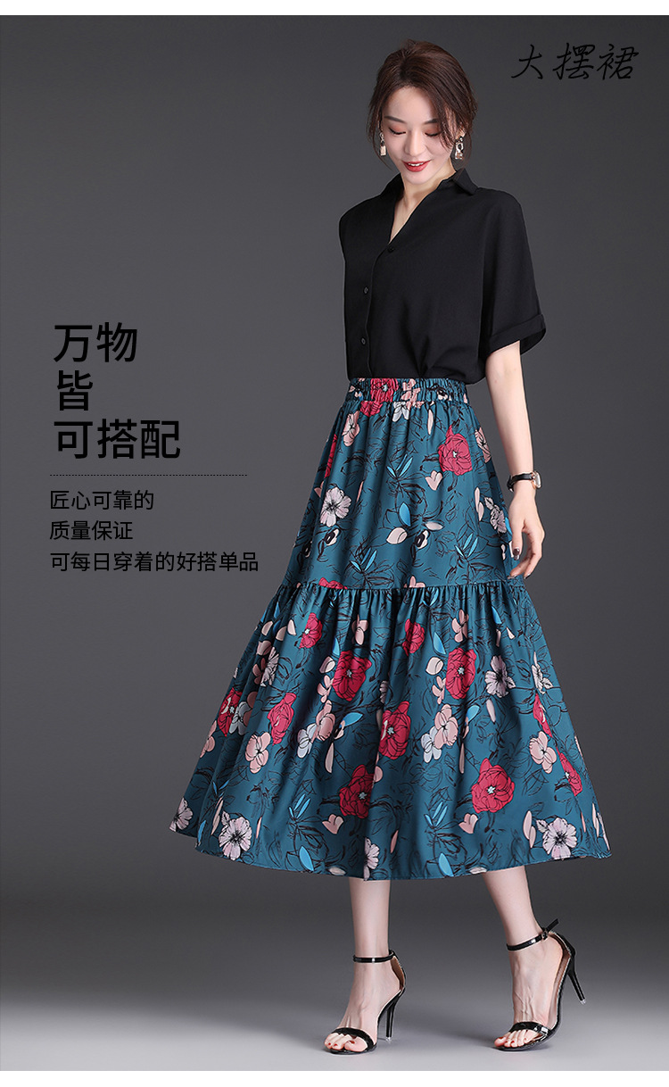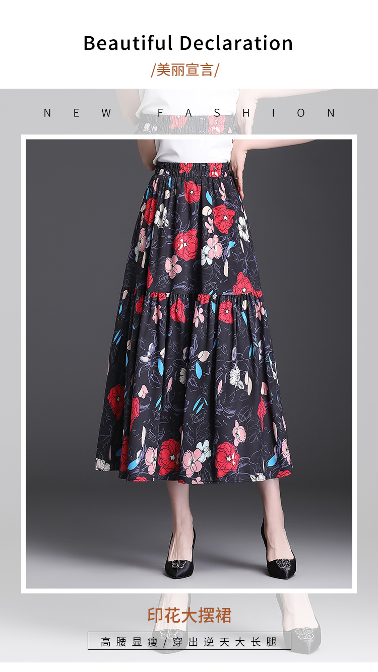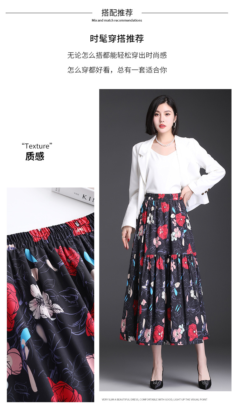 2022春季女装半身裙高腰褶皱大摆裙时尚新款长款一片式A字裙 TY90732