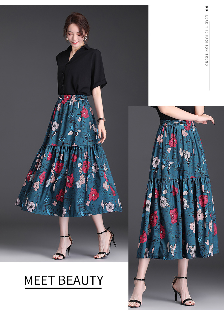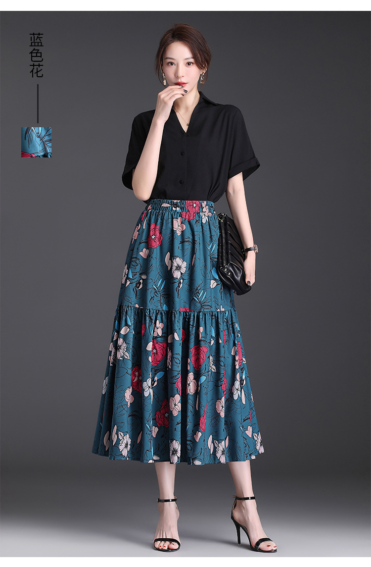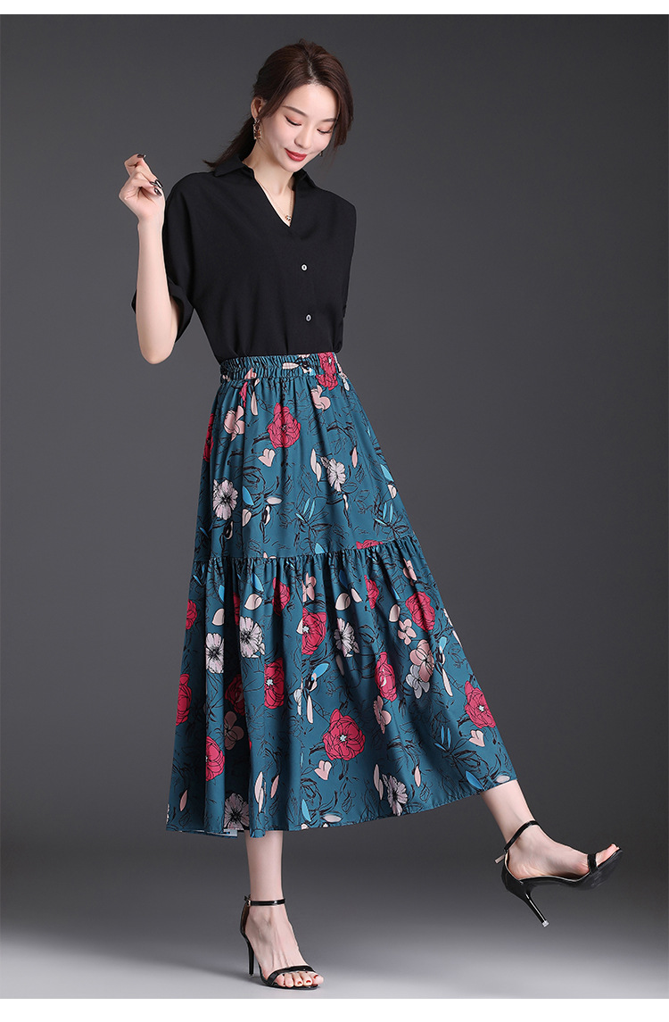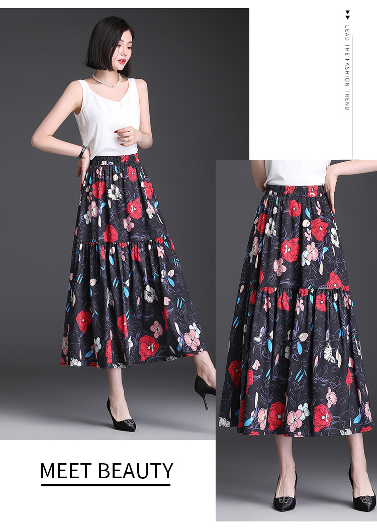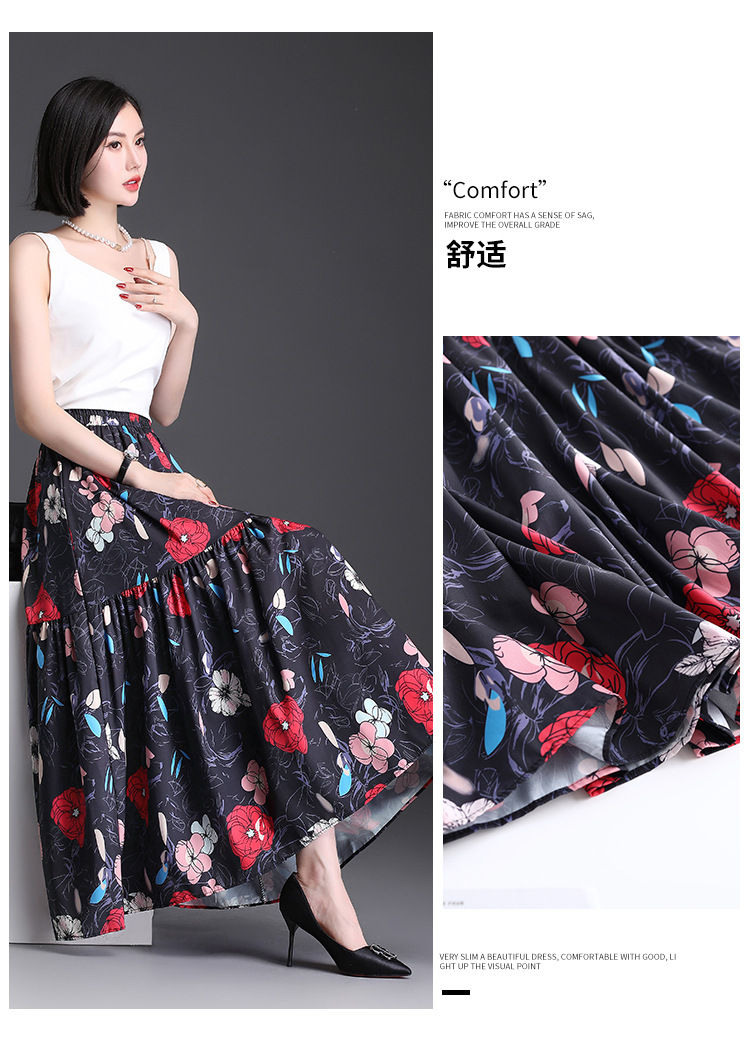 2022春季女装半身裙高腰褶皱大摆裙时尚新款长款一片式A字裙 TY90732