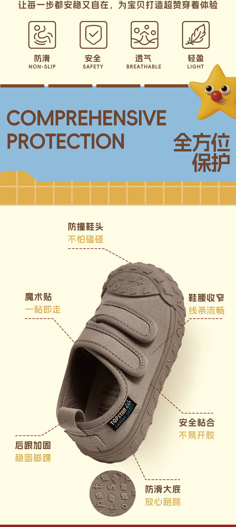 【25秋上新】TOPSTAR儿童帆布鞋女童男童幼儿园室内鞋小白鞋宝宝儿童鞋软底鞋2065