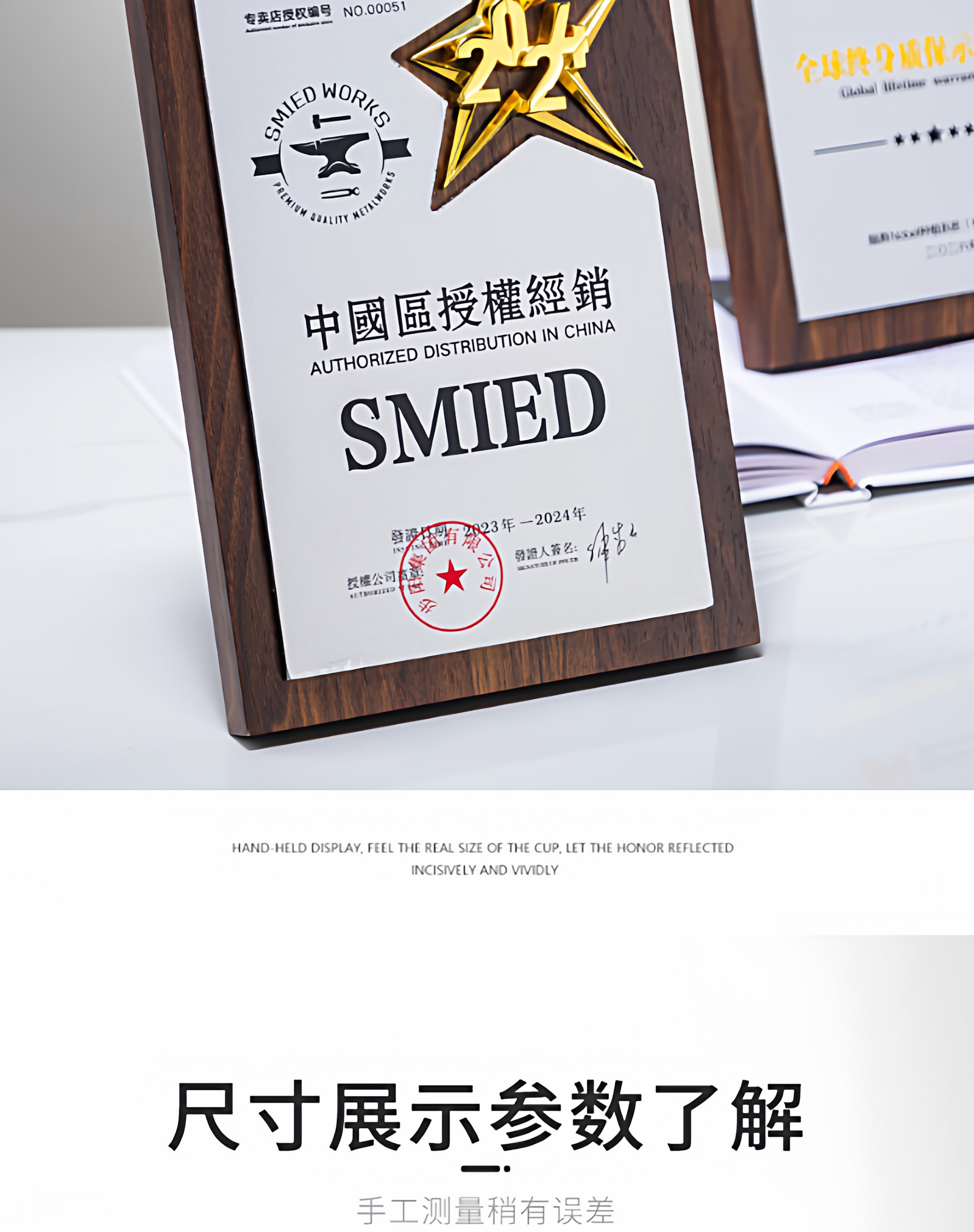 授权牌奖牌匾五角星铝板五角星大拇指合作商会加盟代理经销商证书
