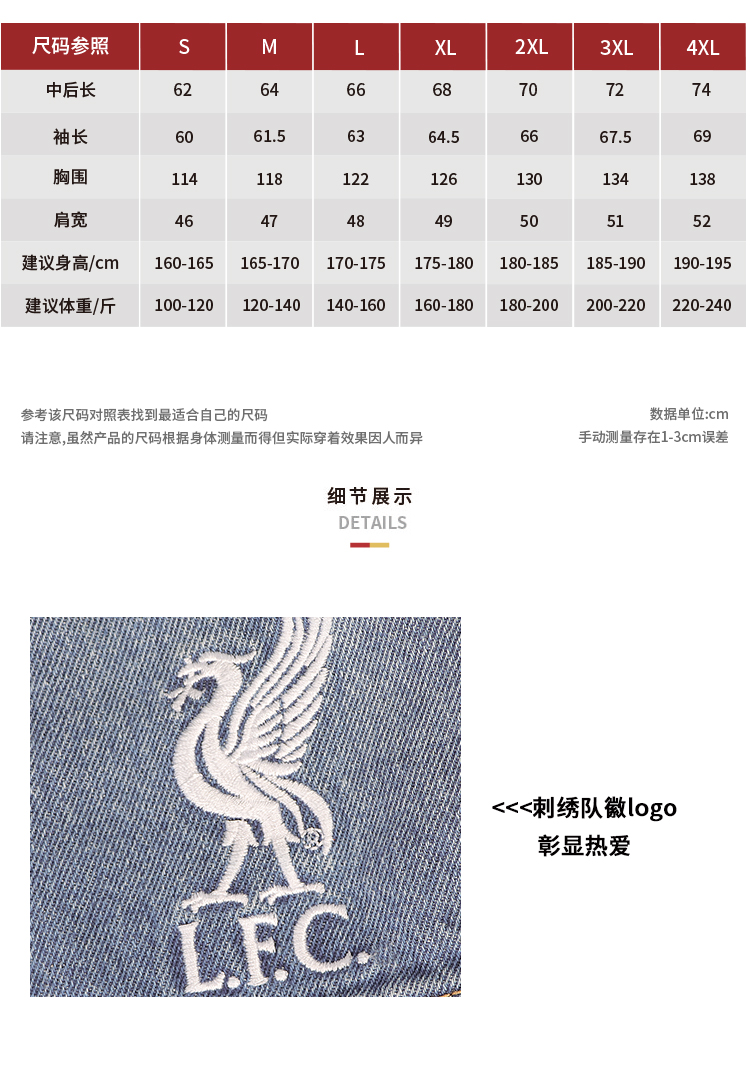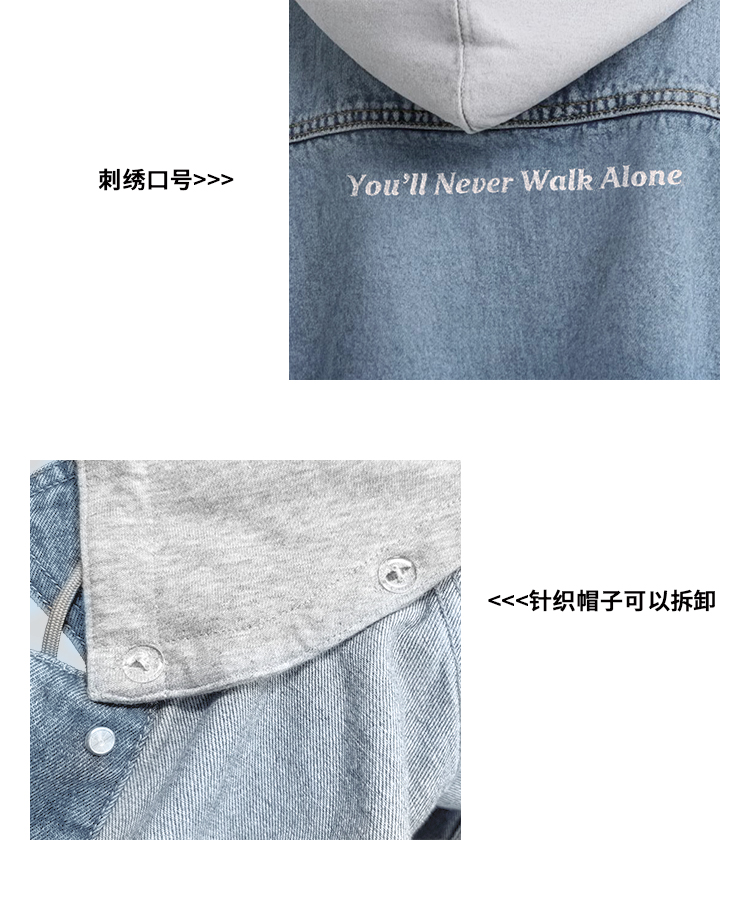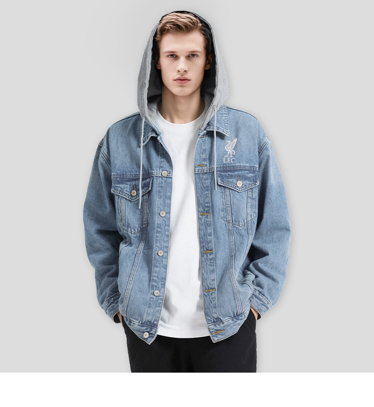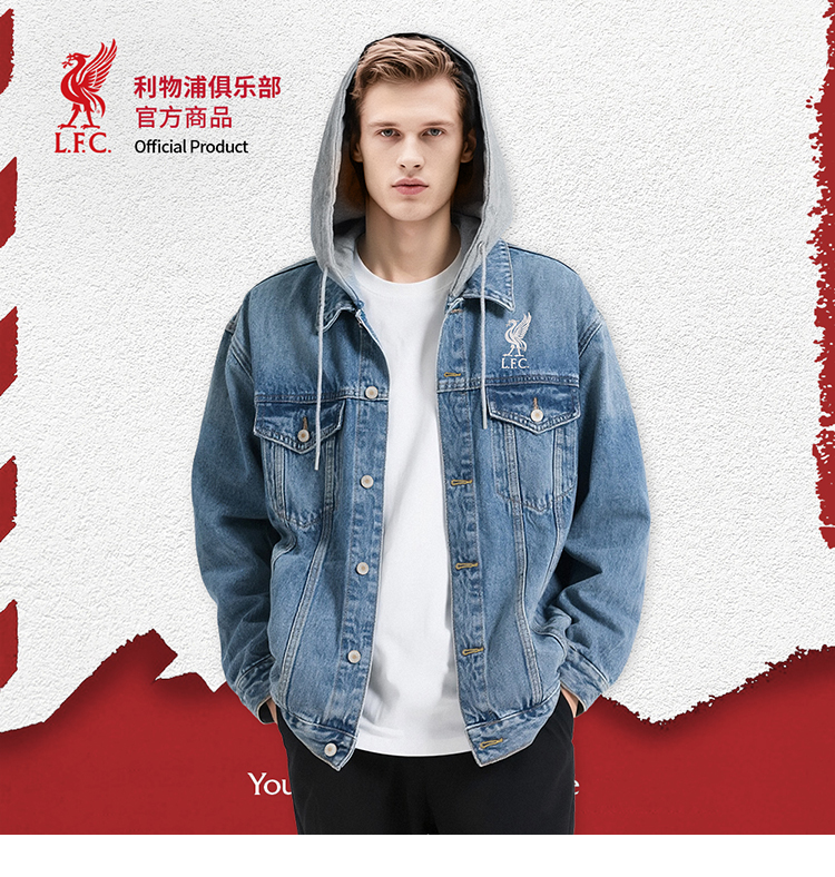 【官方正版】利物浦俱乐部 | 连帽牛仔服长袖拼接款休闲秋季外套